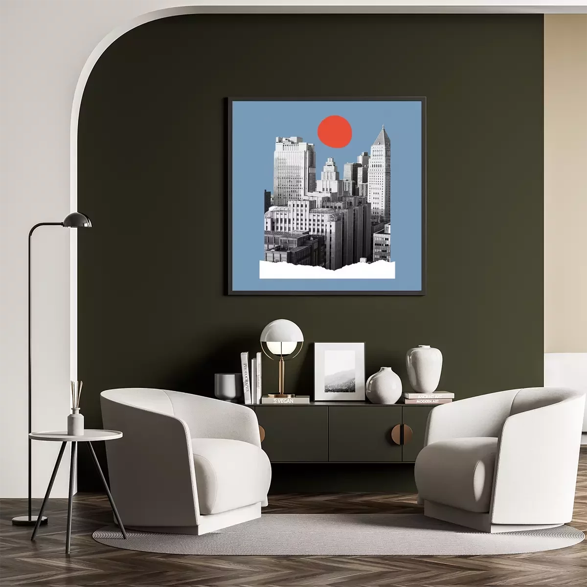 Poster : Bâtiments et collage pop art lunaire