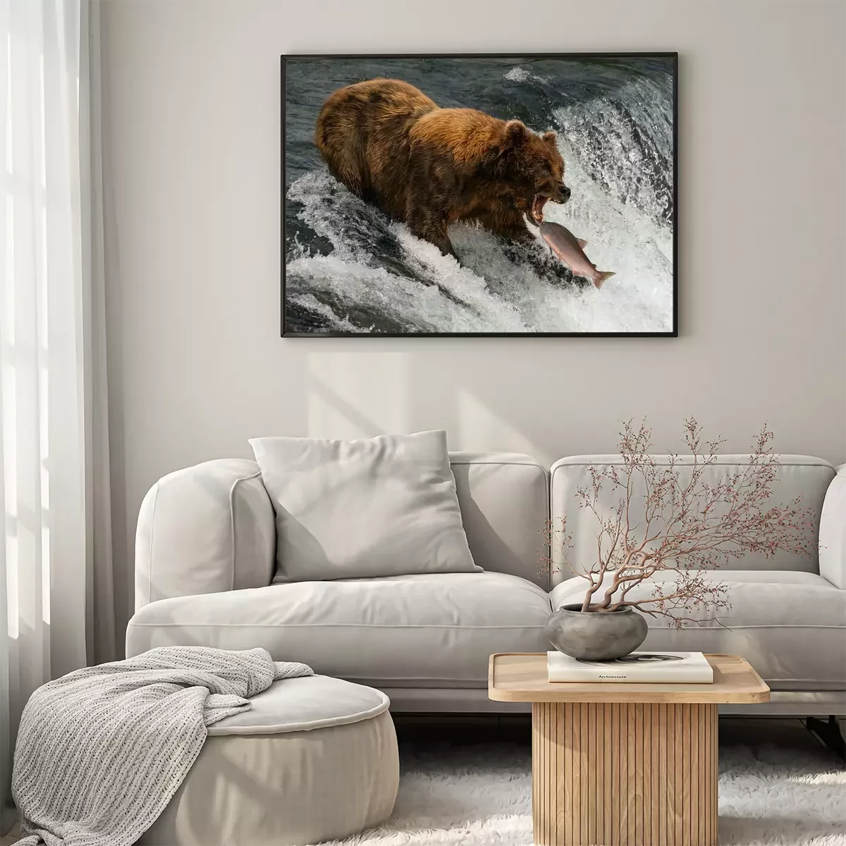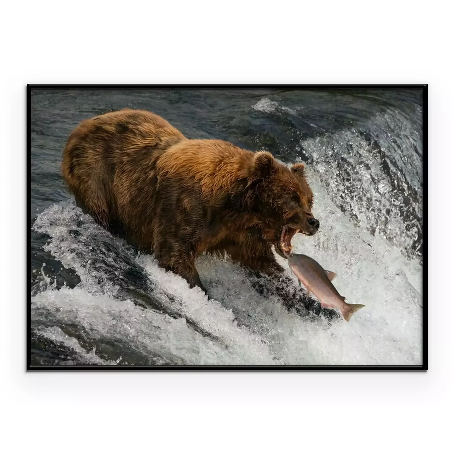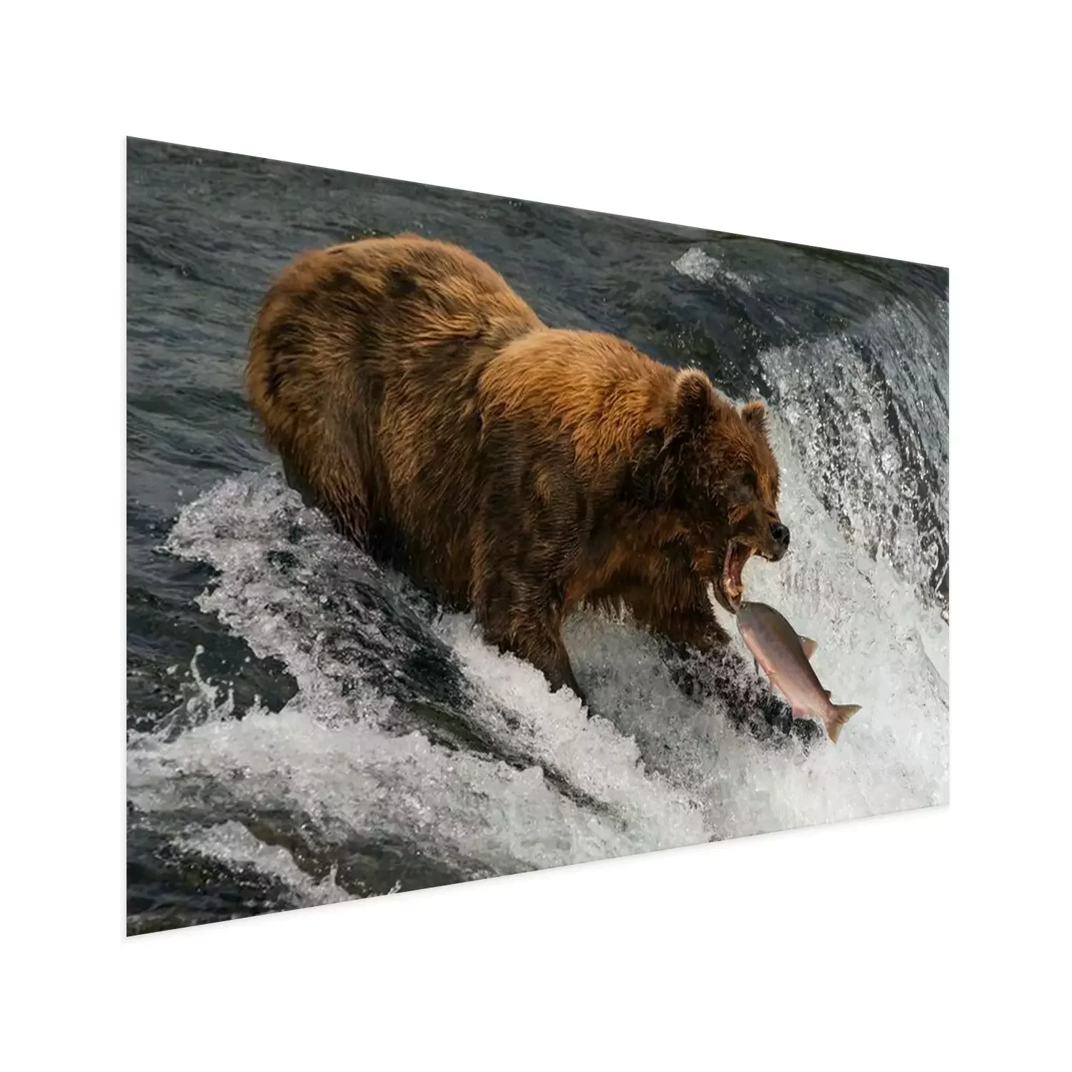Poster : Bear about to catch salmon in mouth