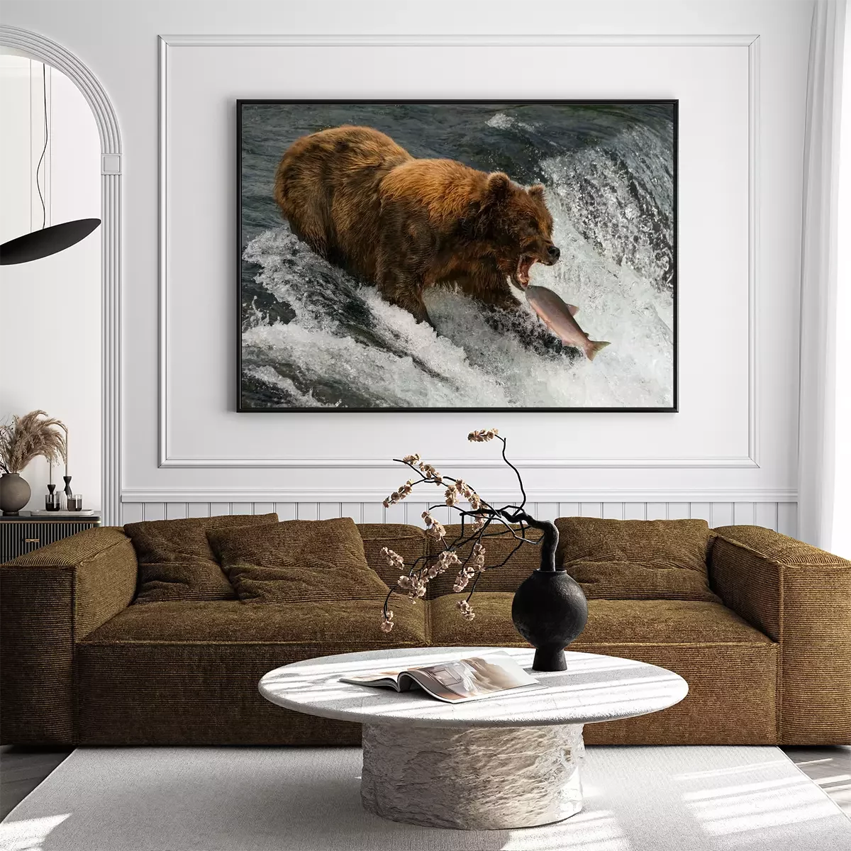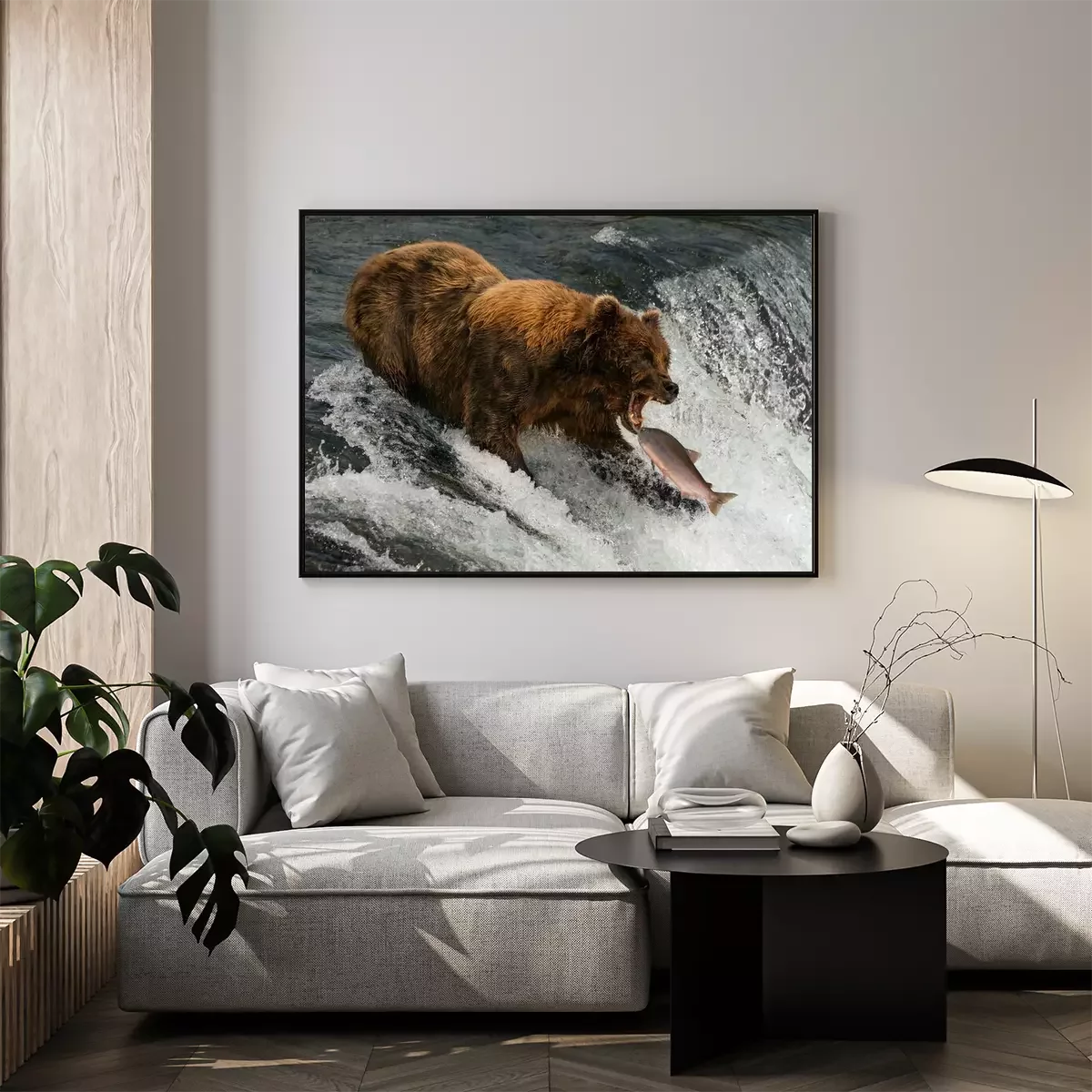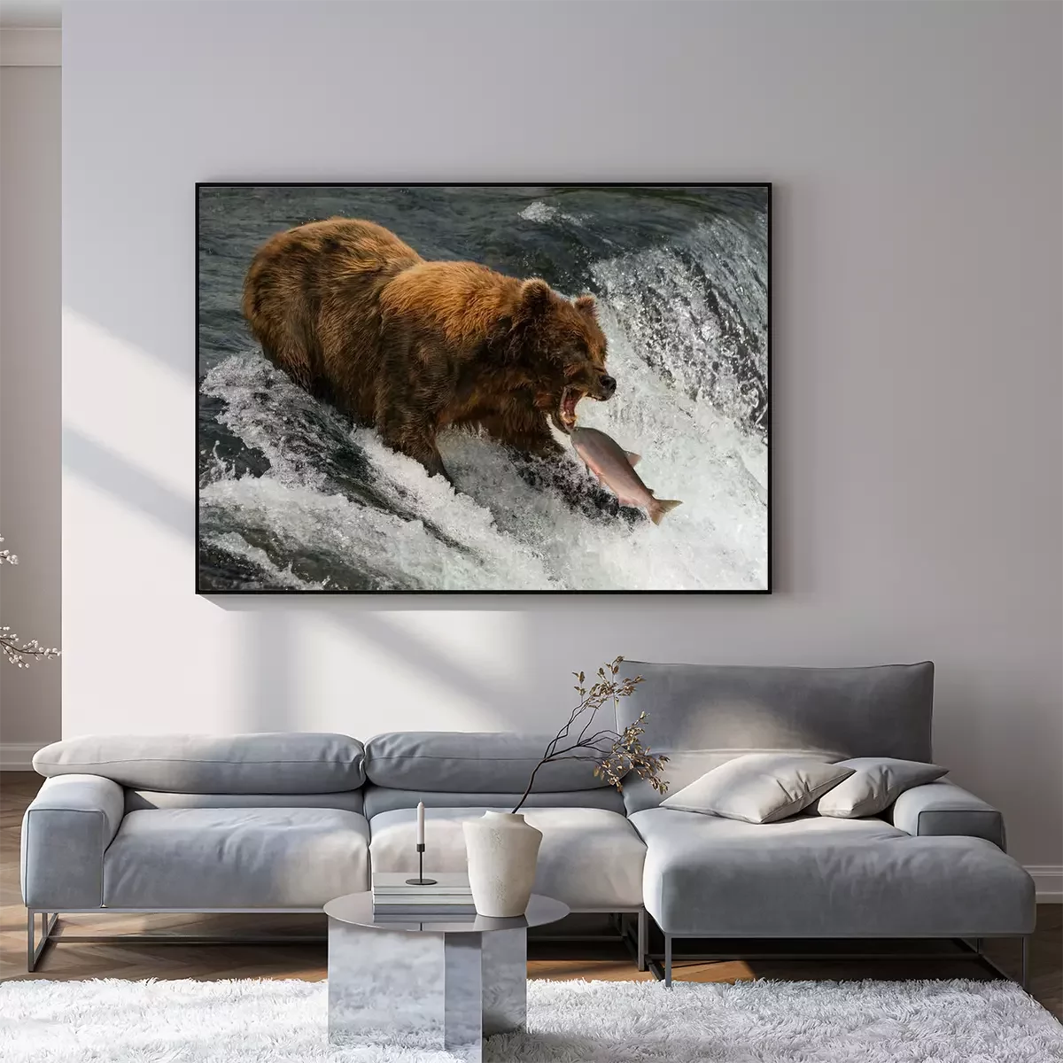 Poster : Bear about to catch salmon in mouth