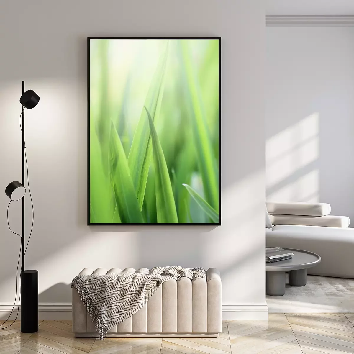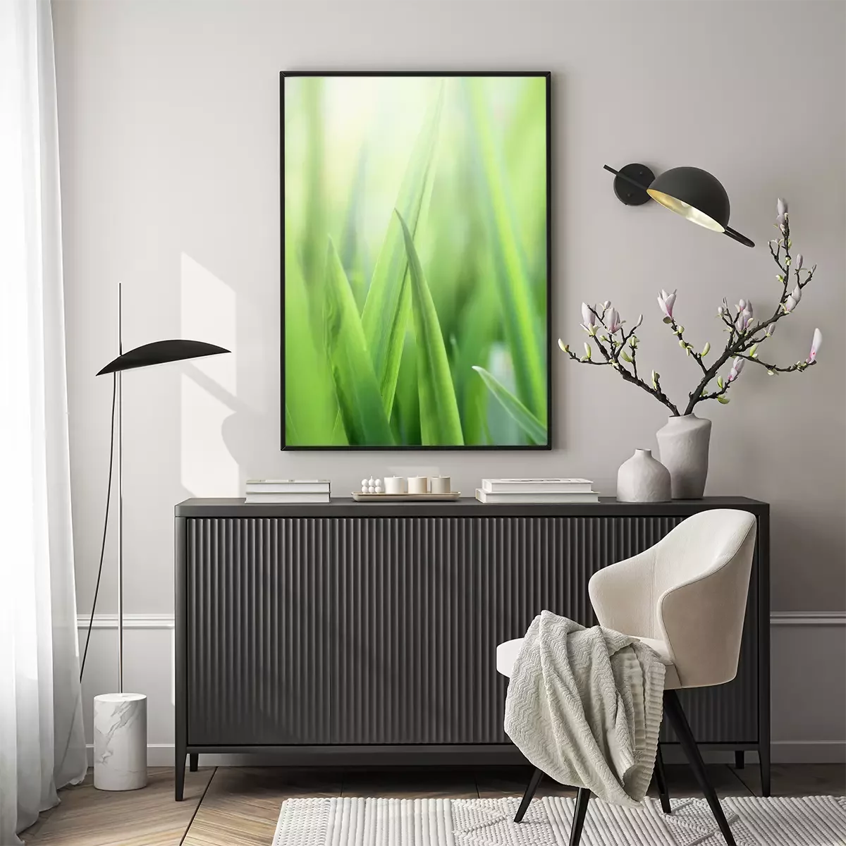 Poster : Beautiful nature background with close up green grass in summer or spring.