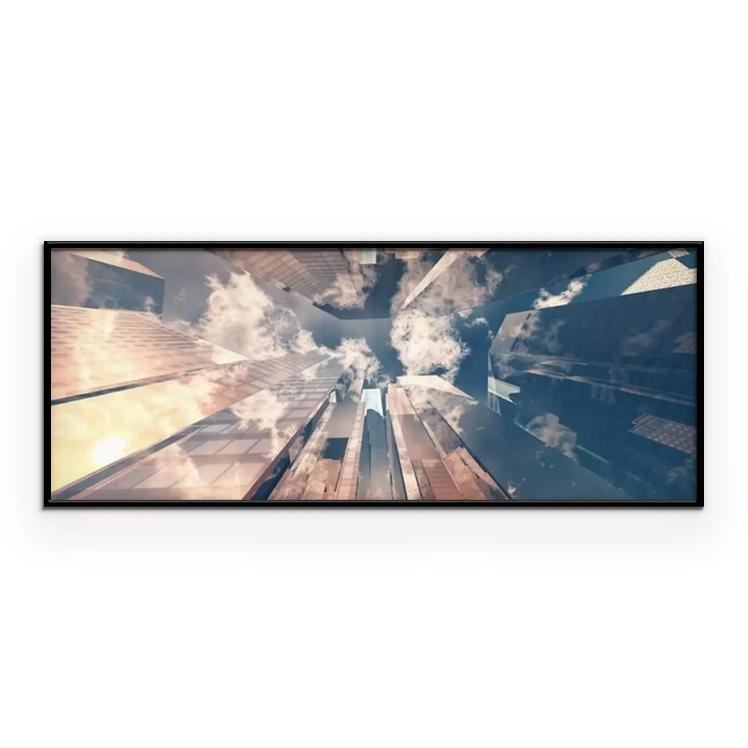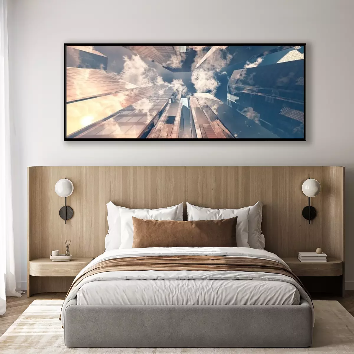 Poster  Beautiful skyscrapers against the sky, modern high-rise buildings bottom view, 3D rendering