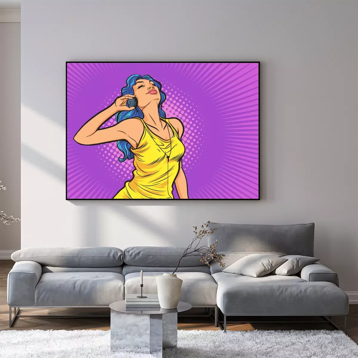 Poster  beautiful woman in lifestyle listening to music