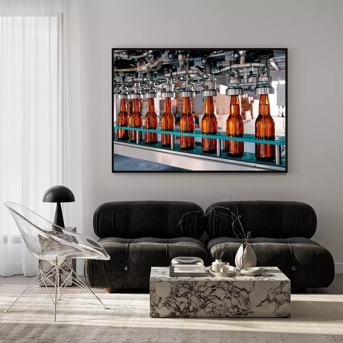 Poster : Beer bottles filling on the conveyor belt in the brewery factory