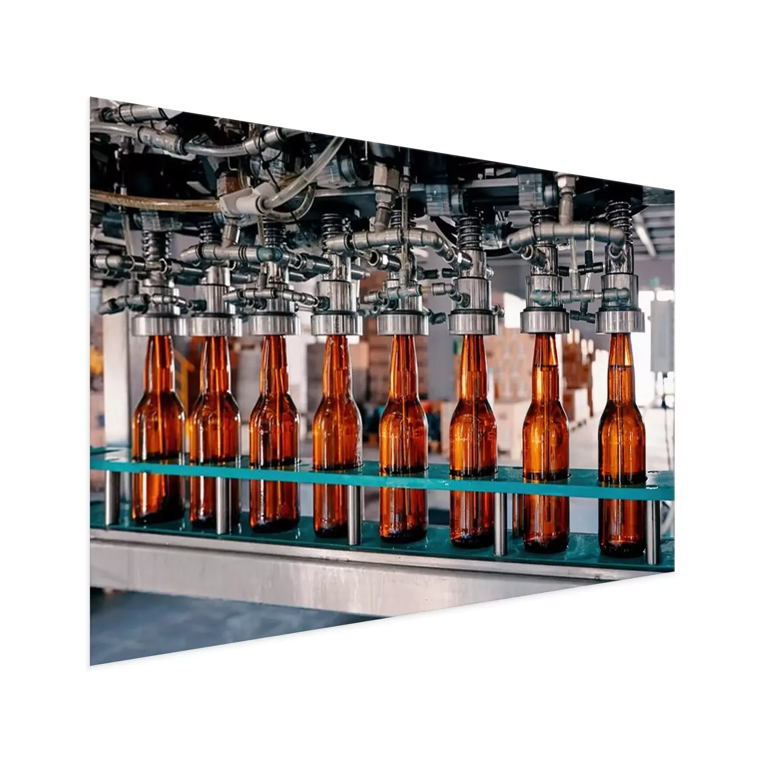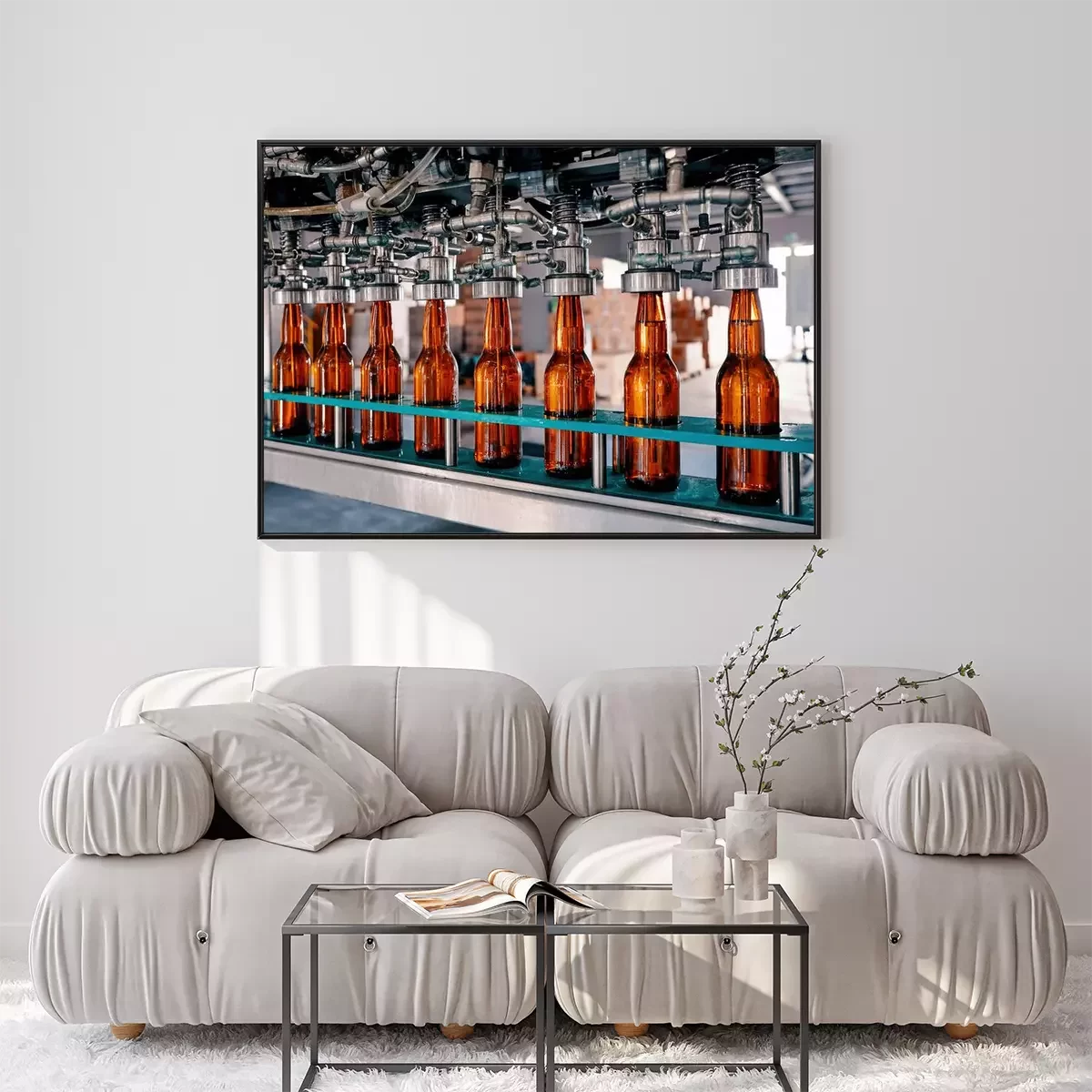 Poster  Beer bottles filling on the conveyor belt in the brewery factory