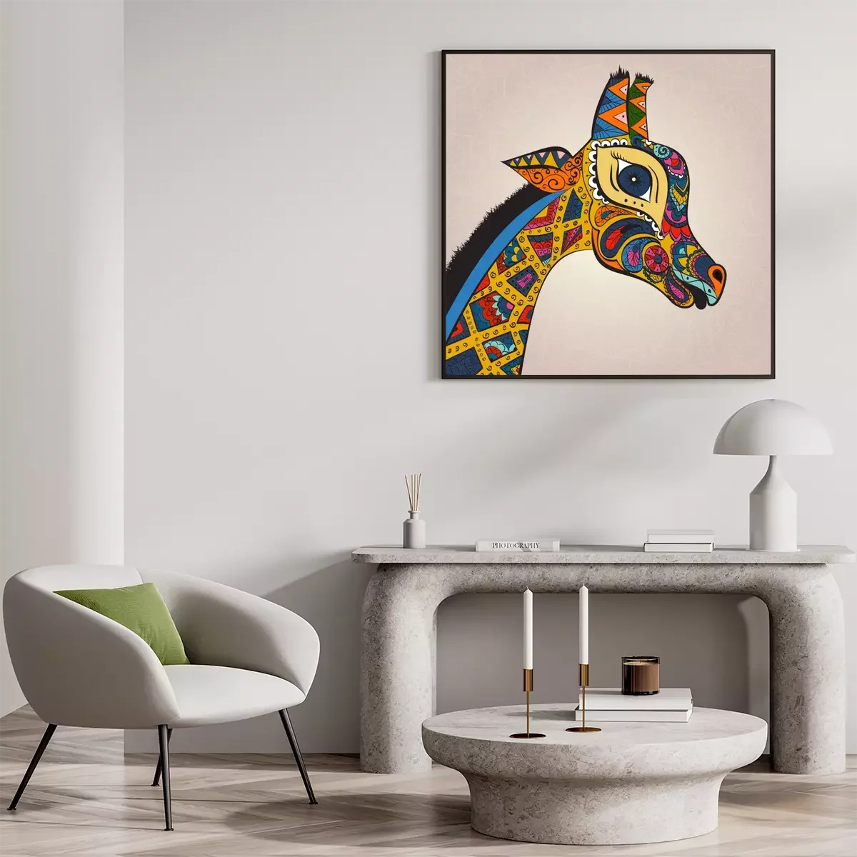 Poster  Belle girafe adulte. Illustration dessinée à la main de girafe ornementale. Coloré, girafe, décoratif, fond