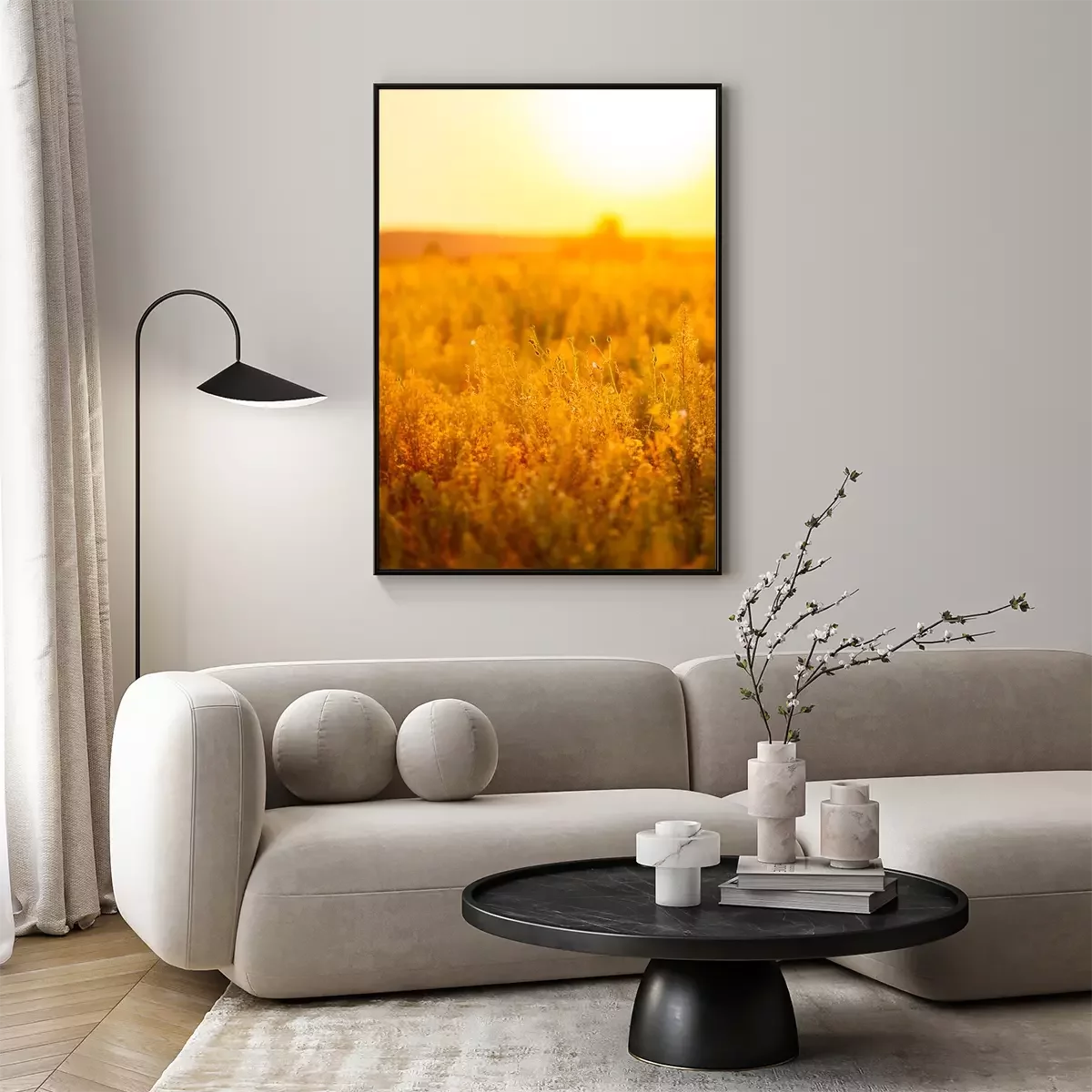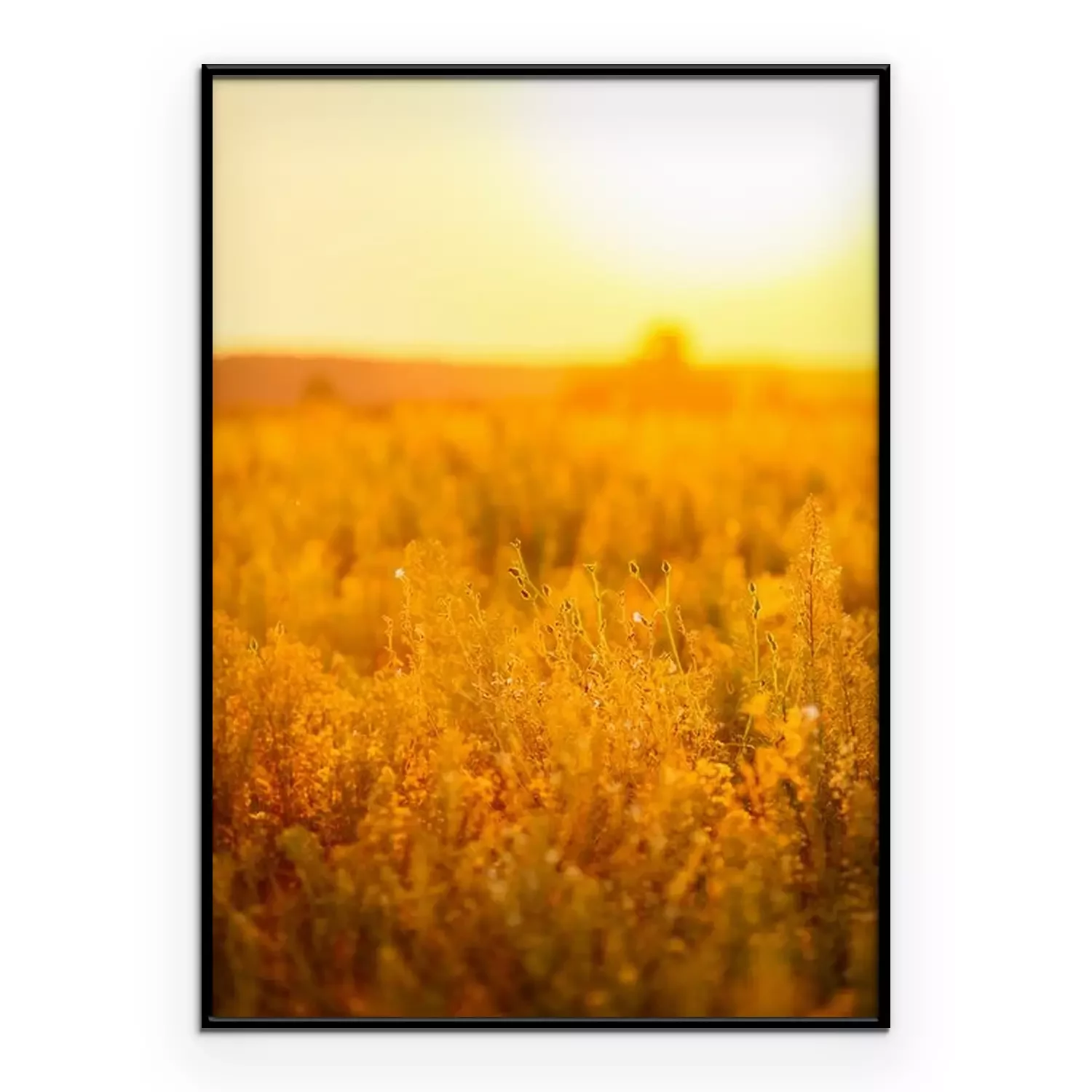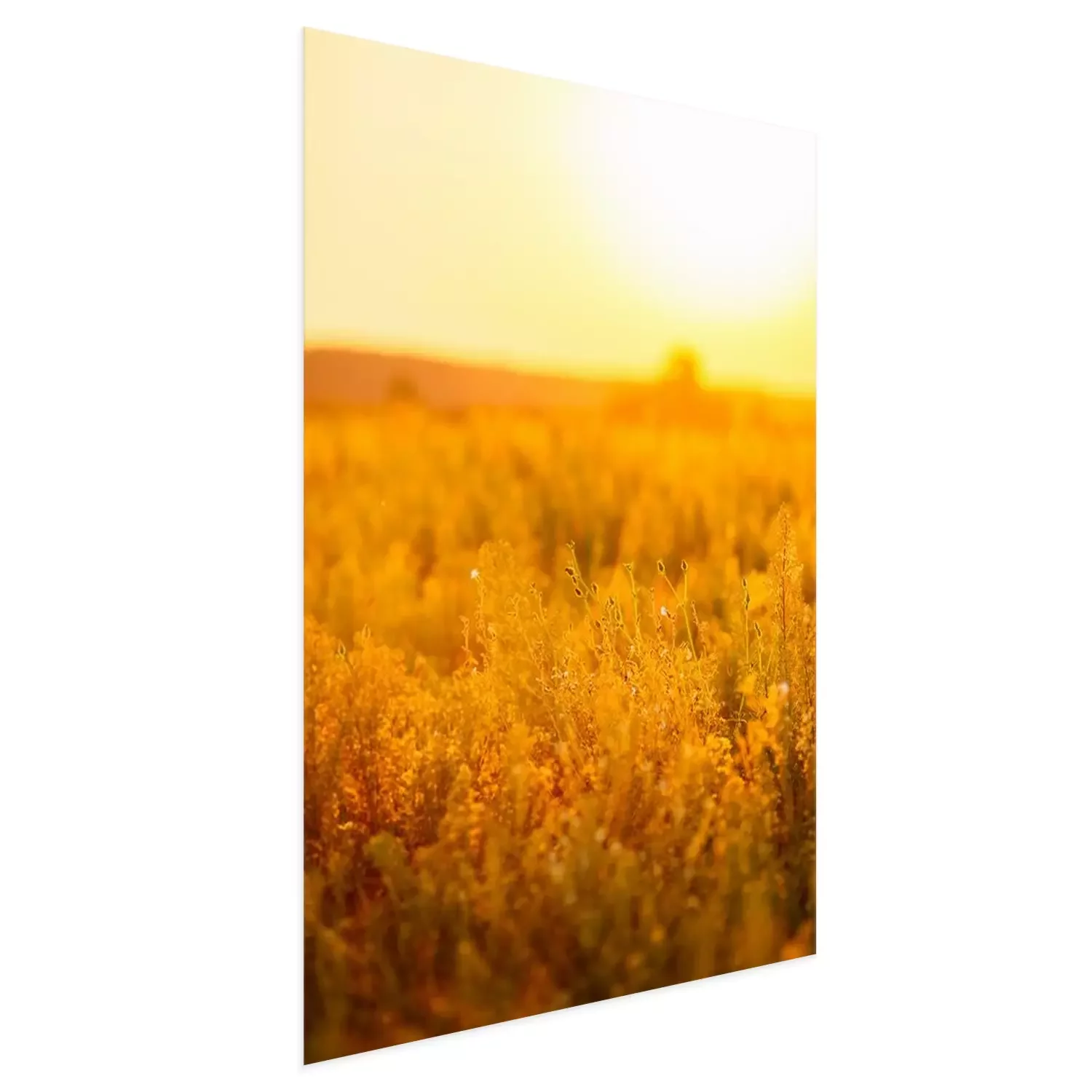 Poster  Belle scène avec agitant l'herbe sauvage sur un coucher de soleil.
