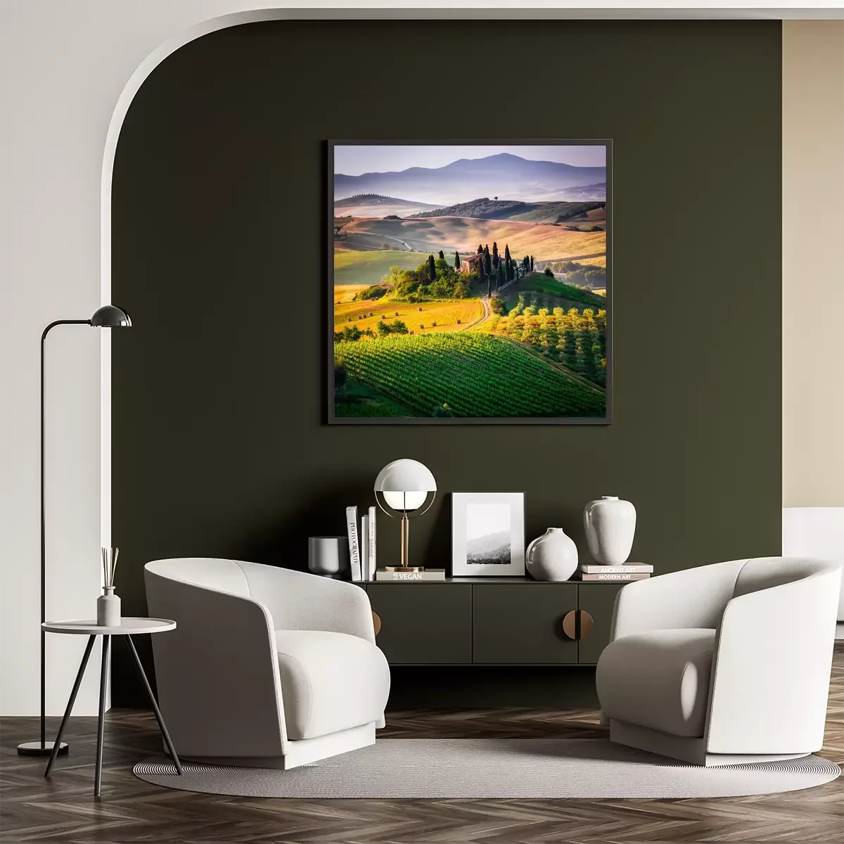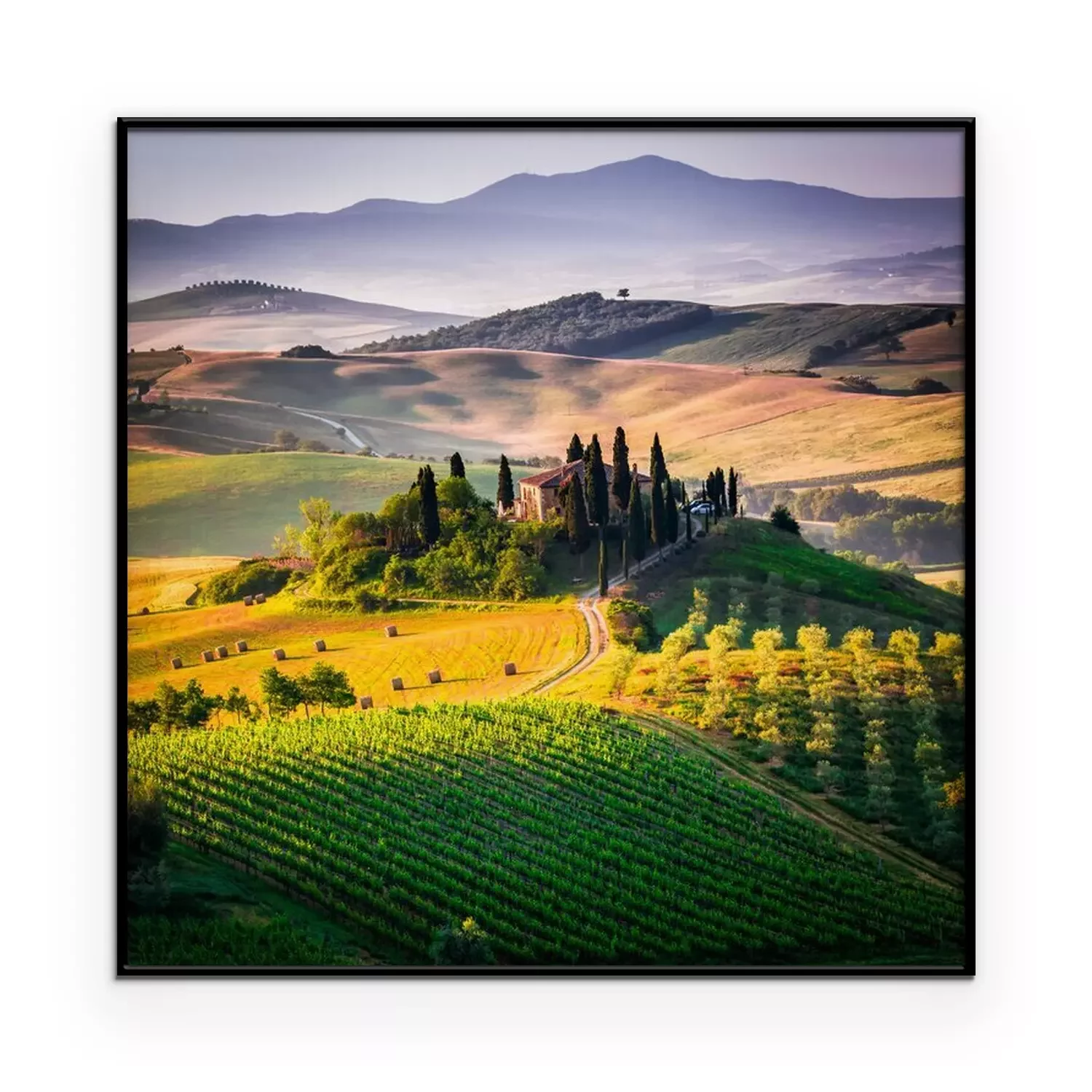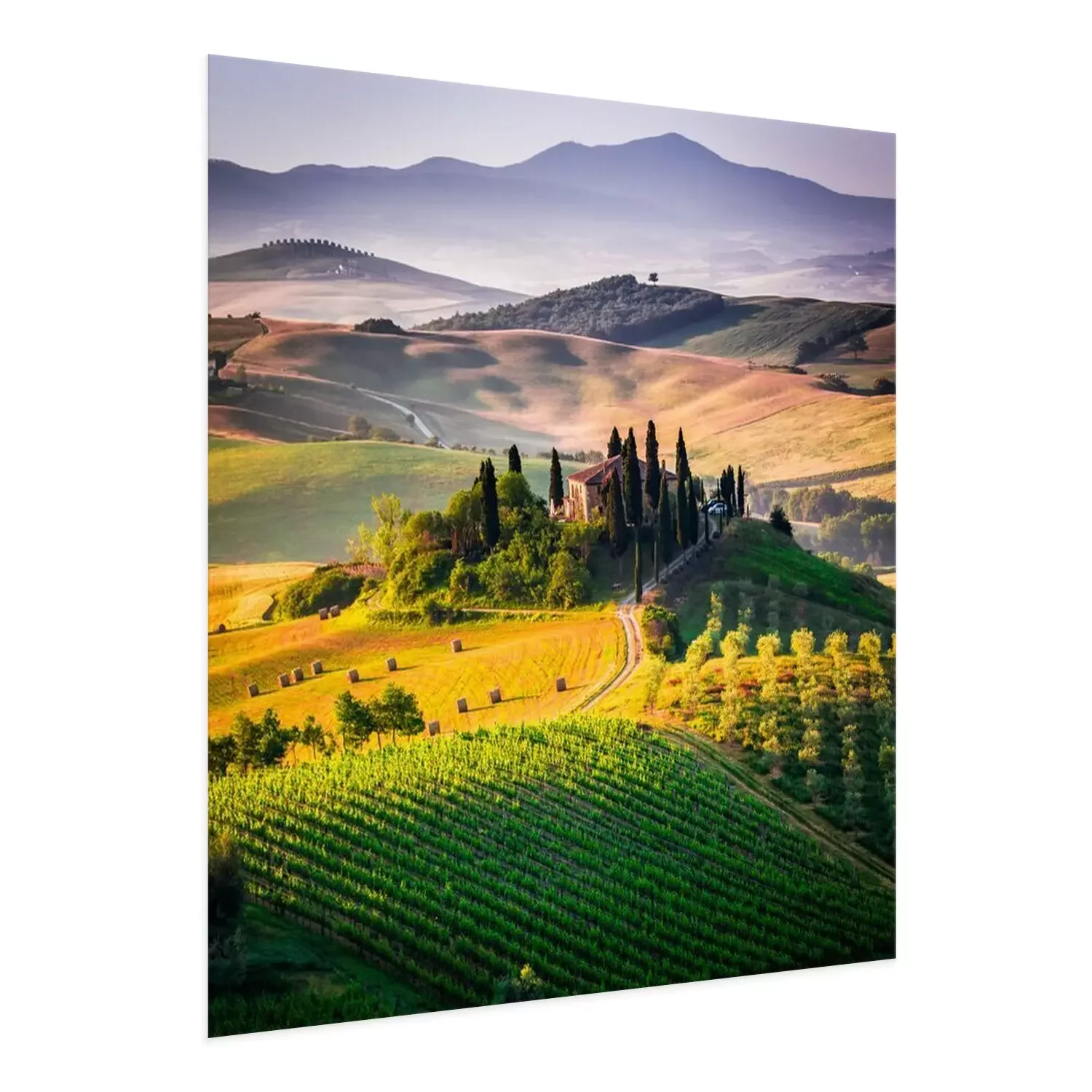 Toscane, Paysage et ferme dans les collines du Val d'Orcia