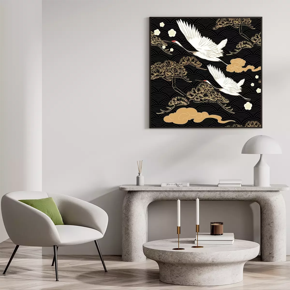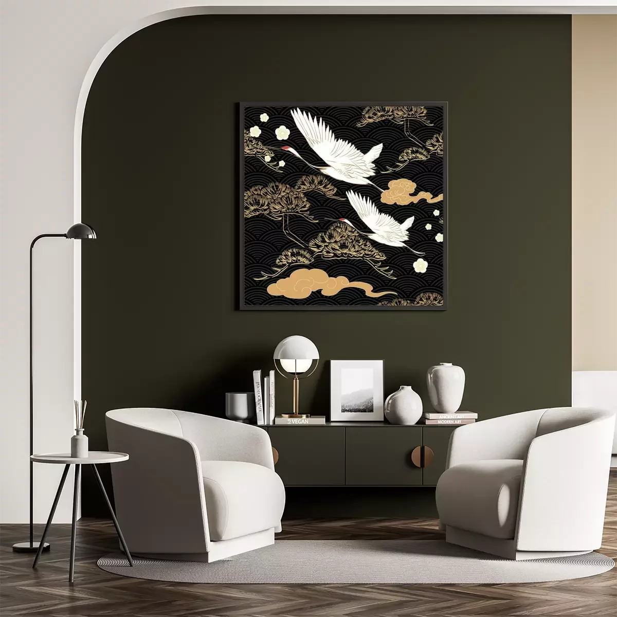 Poster : Belles grues sur fond oriental