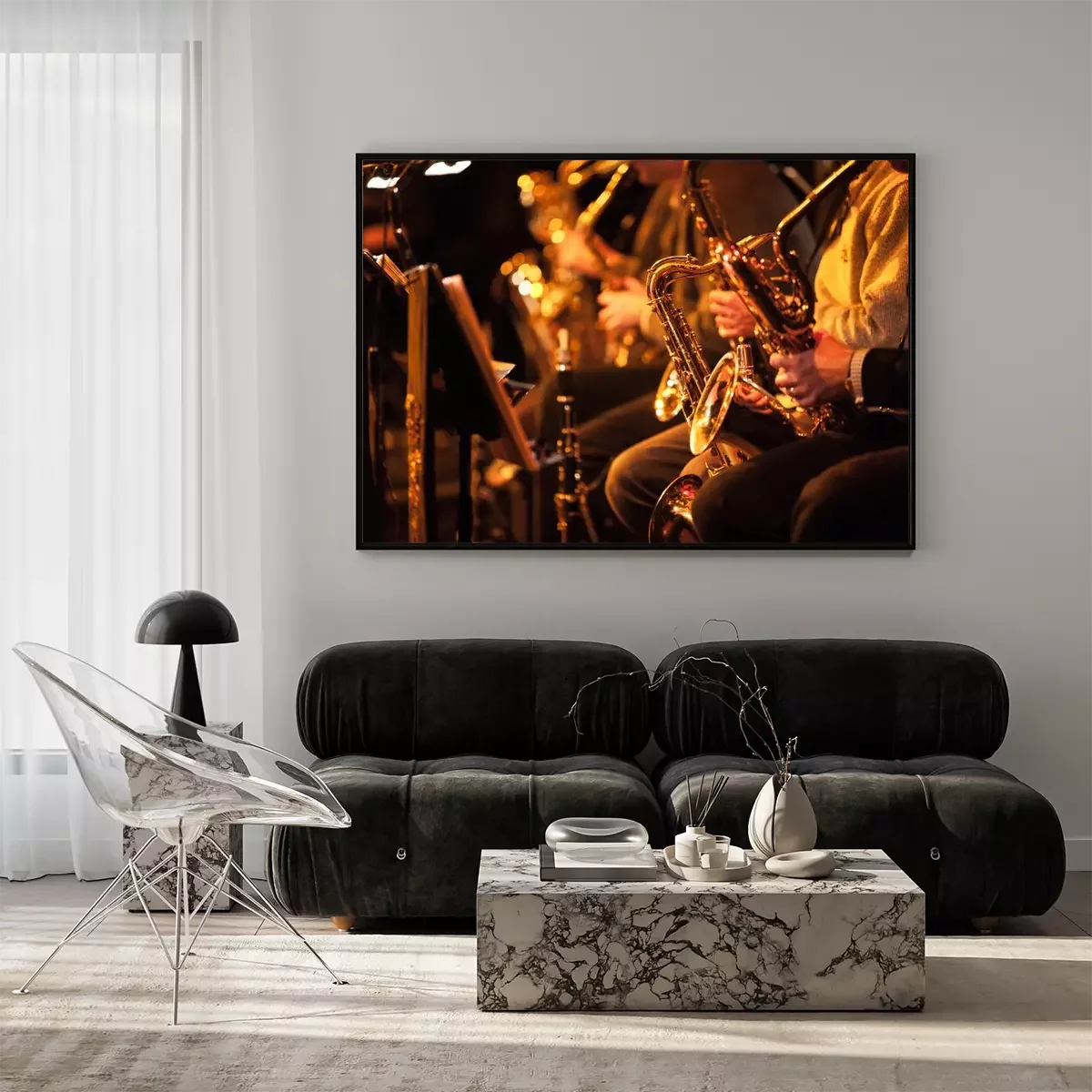 Poster  Big Band section de saxophone. Une vue candide long de la section de saxophones d'un big band en concert.