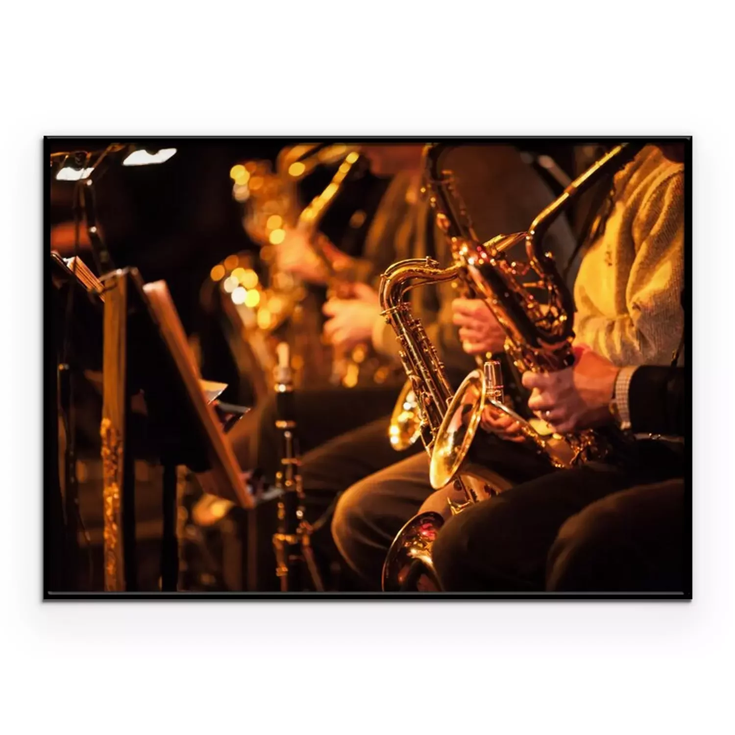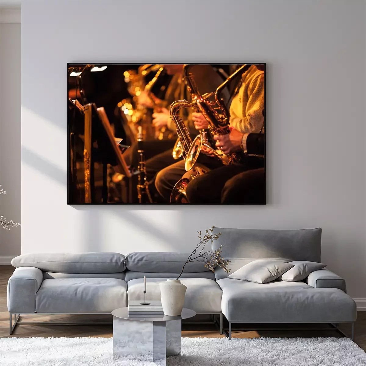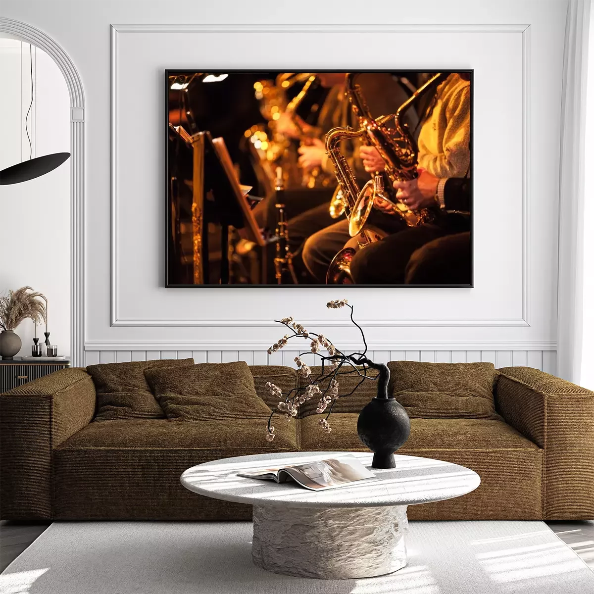 Poster : Big Band section de saxophone. Une vue candide long de la section de saxophones d'un big band en concert.