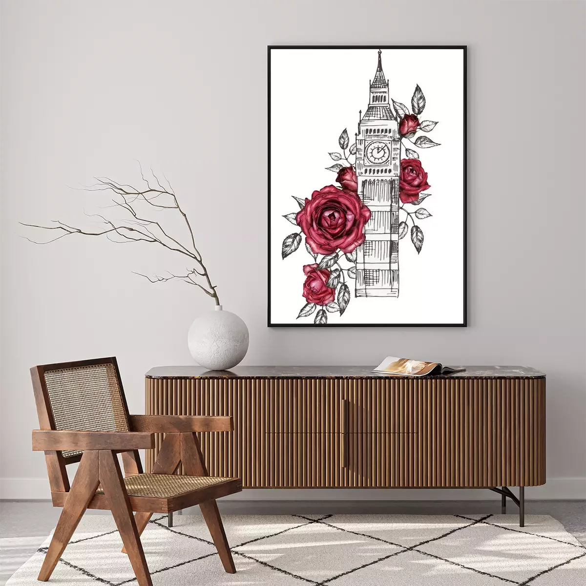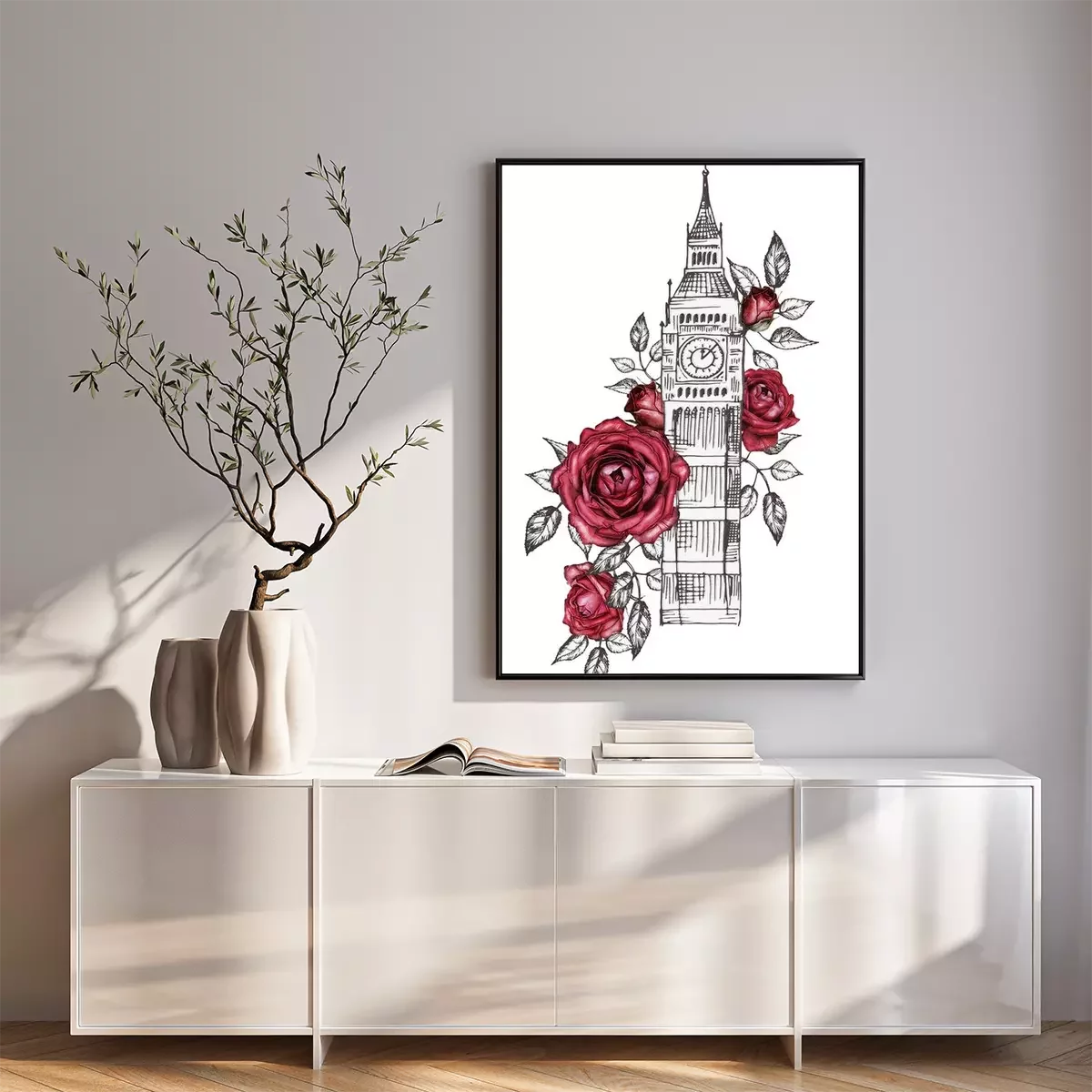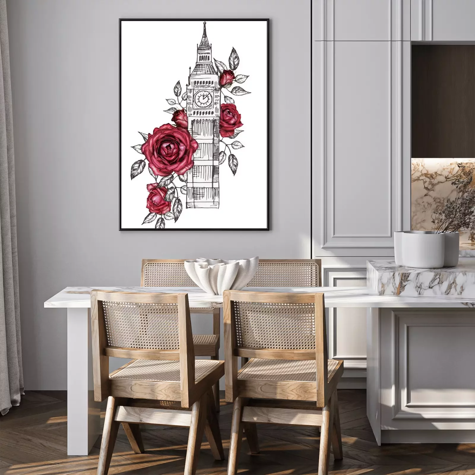 Poster  Big Ben enveloppé de roses