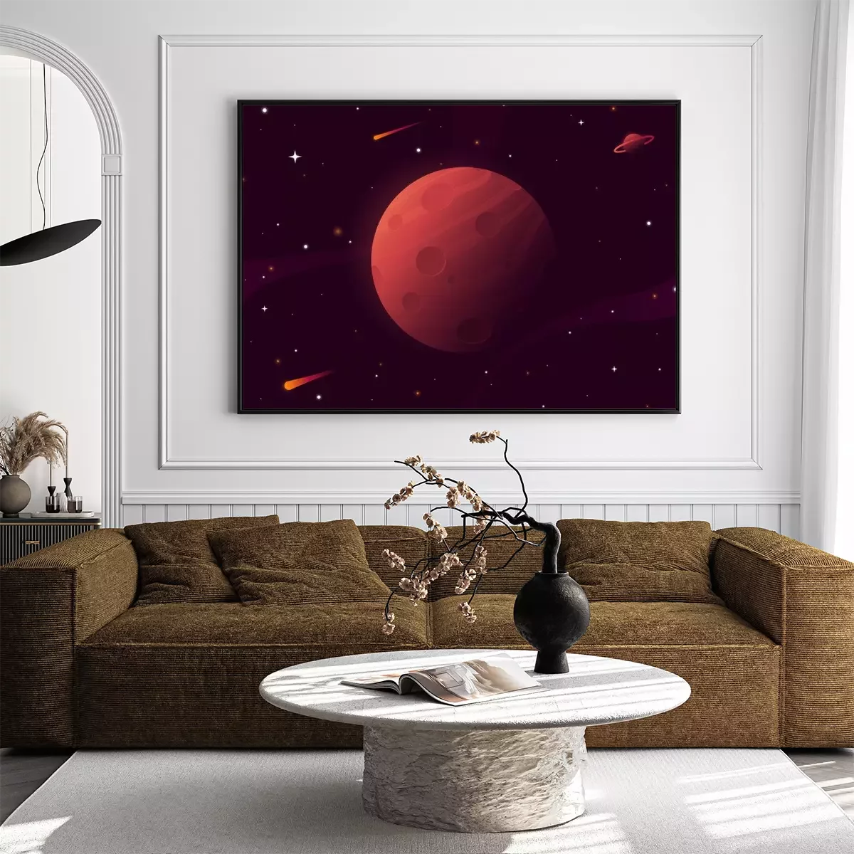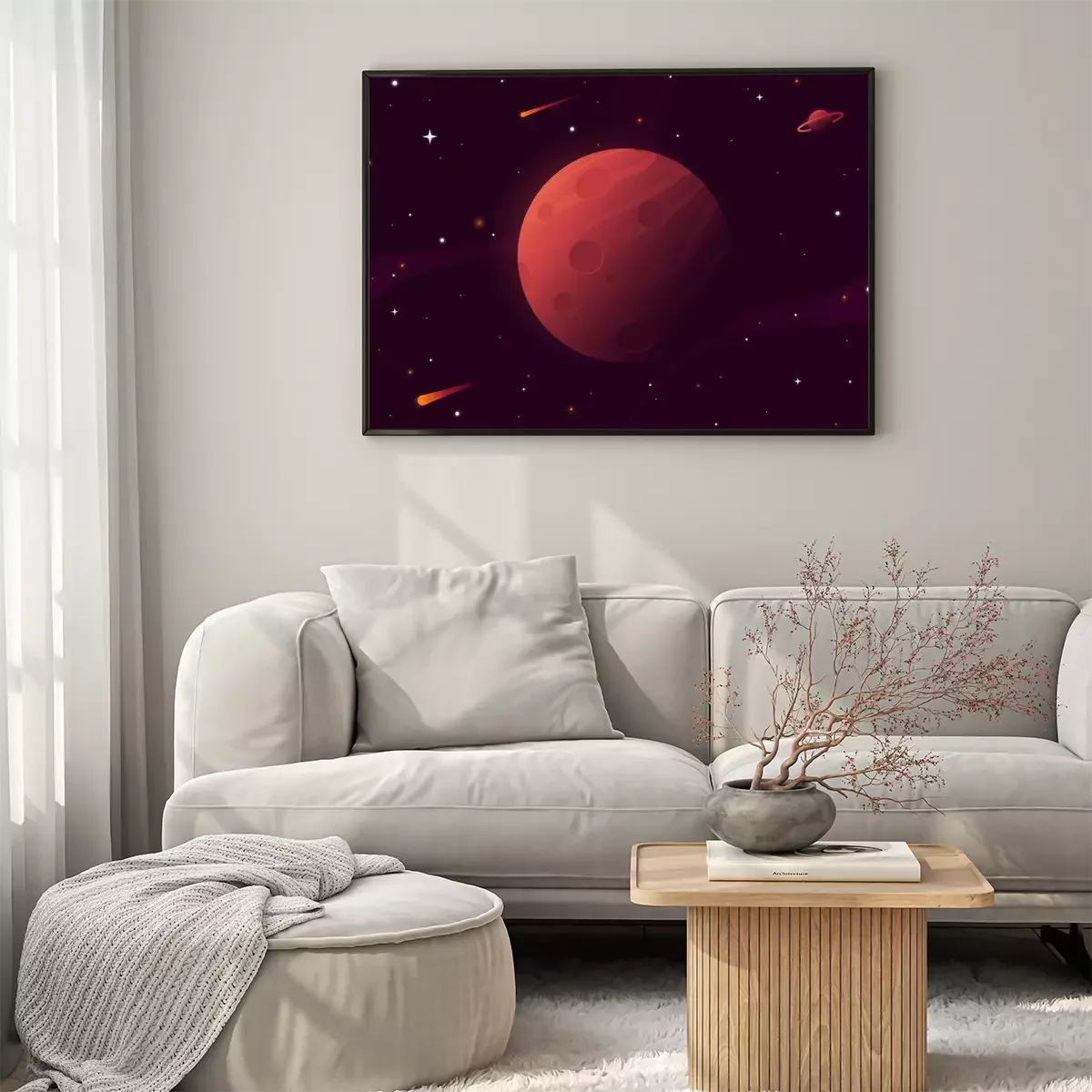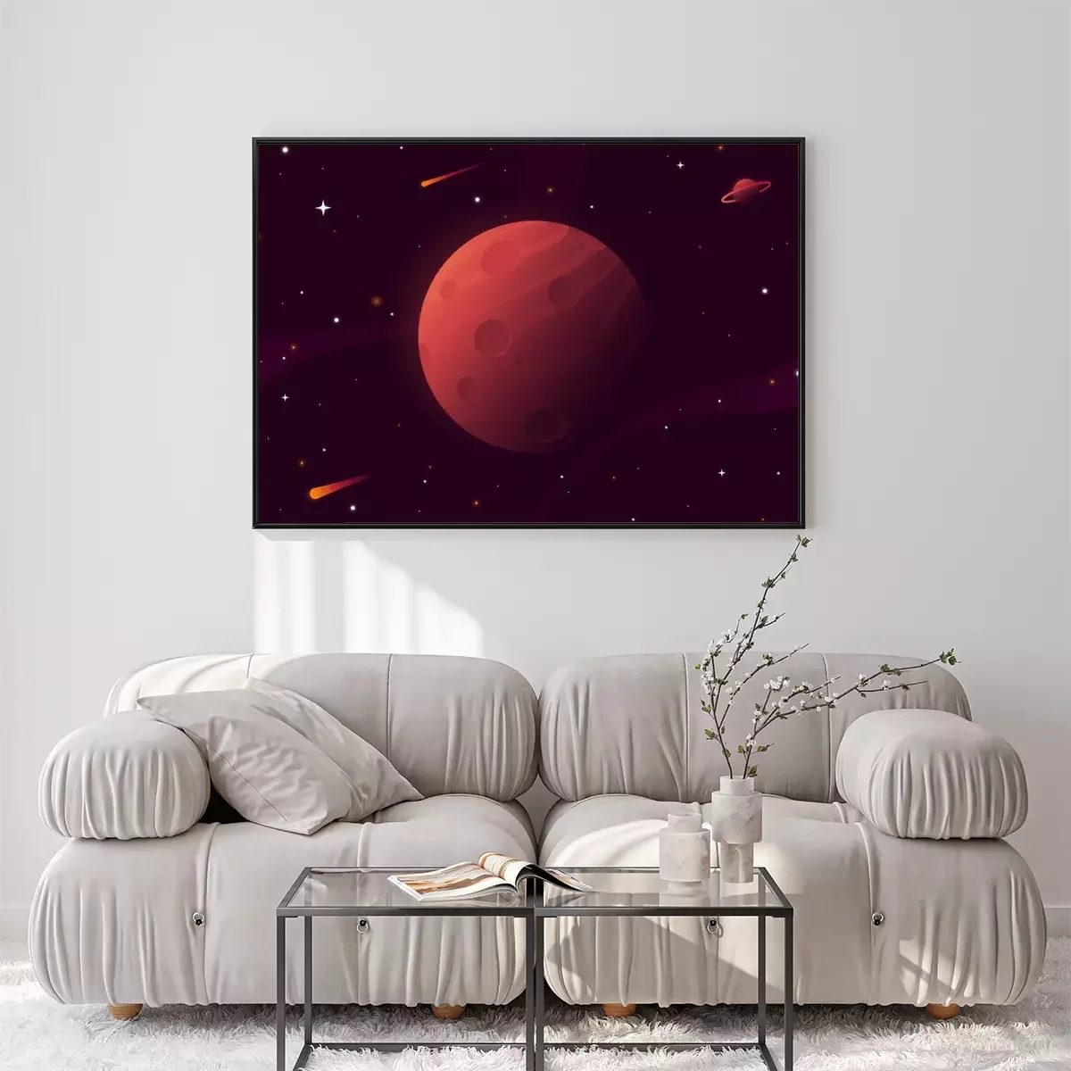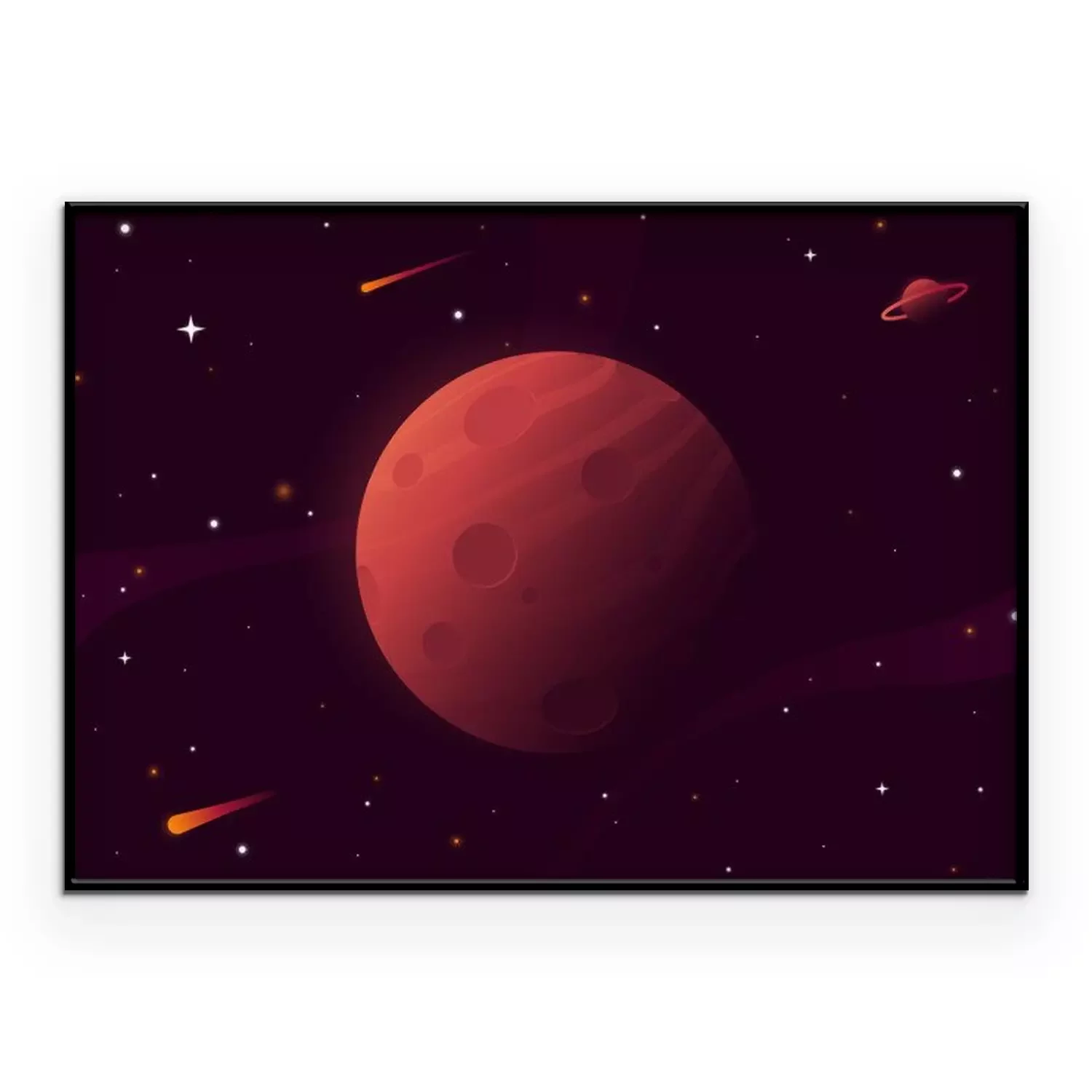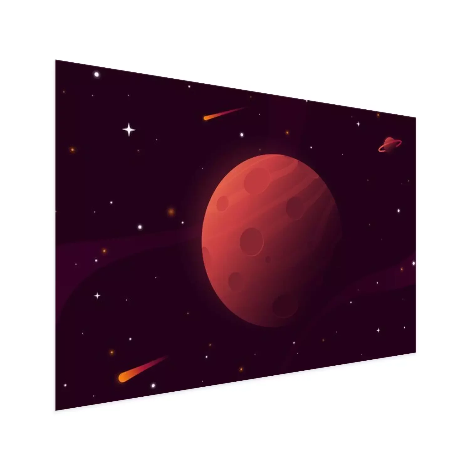Poster : Big red planet with craters. Mars vector illustration. Space background with stars, planet and comets. Decoration for your design. Eps 10.