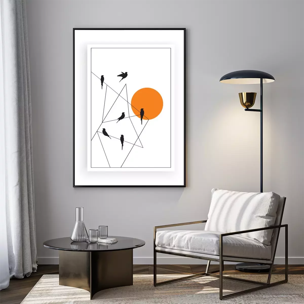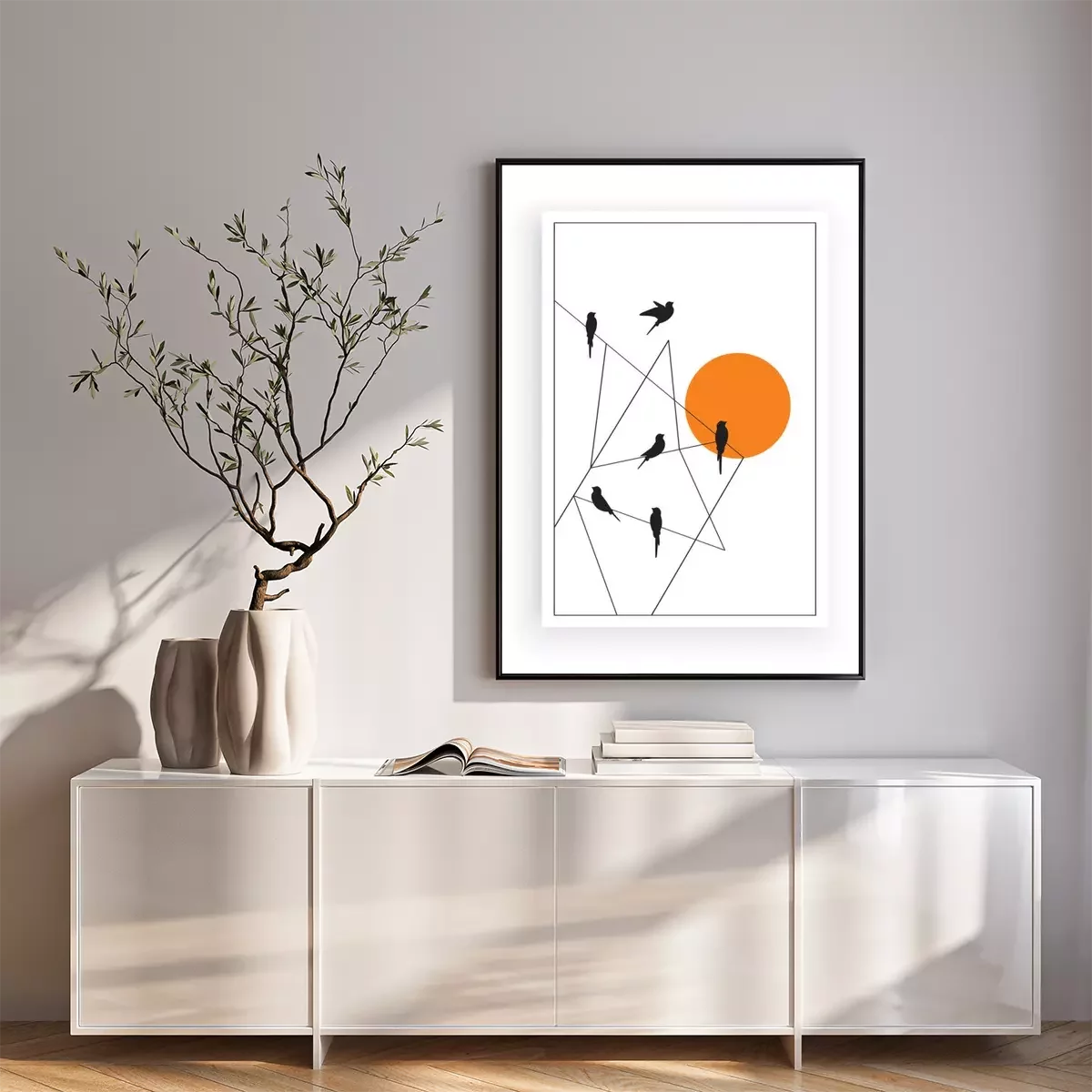 Poster : Birds silhouette on wire, vector. Scandinavian minimalist art design. Modern art design. Wall art, artwork, poster design