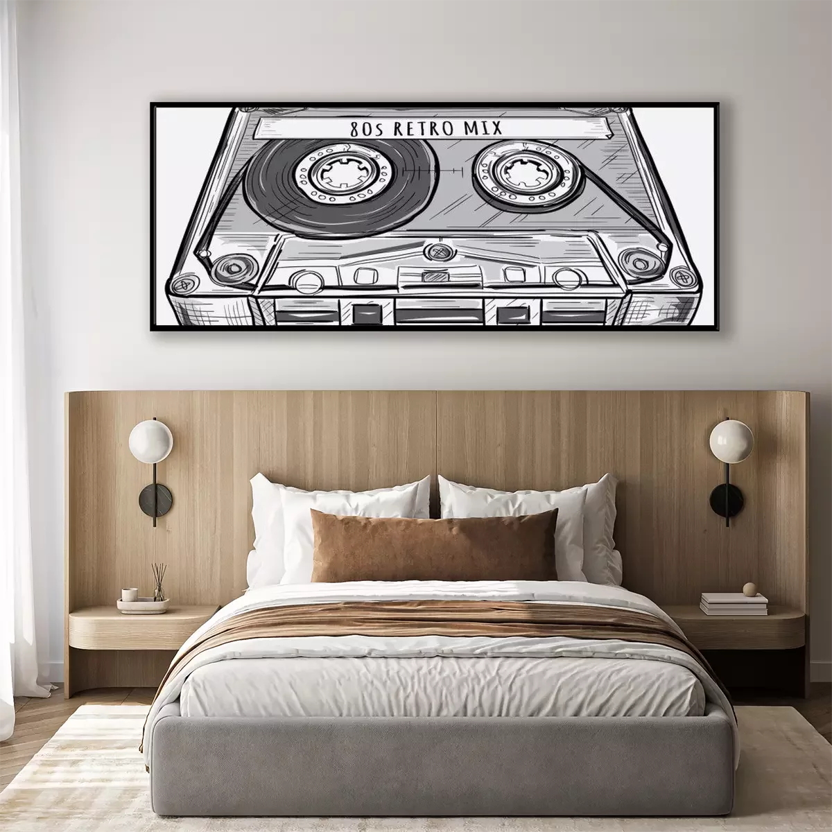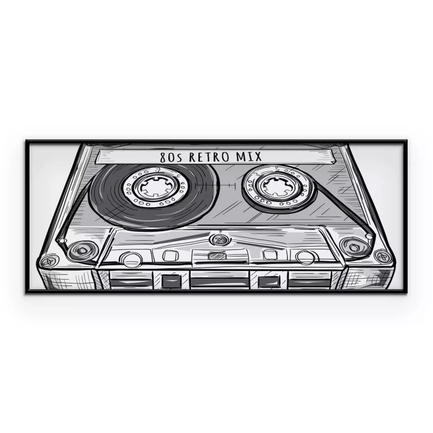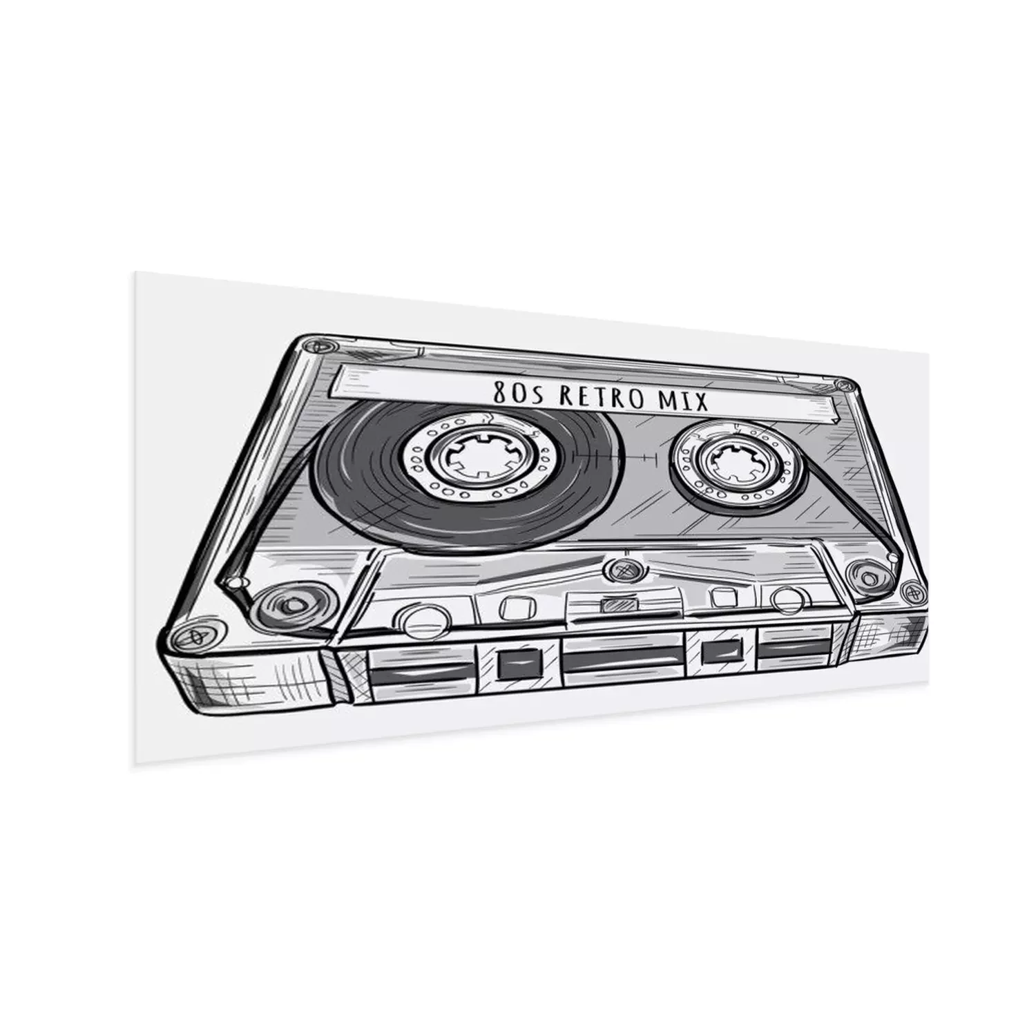 Poster : Black and white drawn retro audio cassette