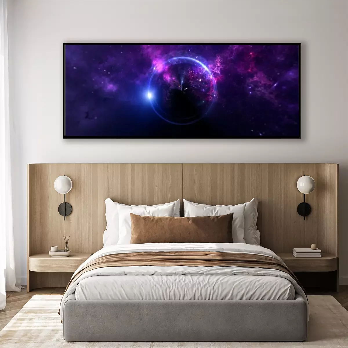 Poster  black hole, planets and galaxy. Science fiction wallpaper. Astronomy is the scientific study of the universe stars, planets, galaxies