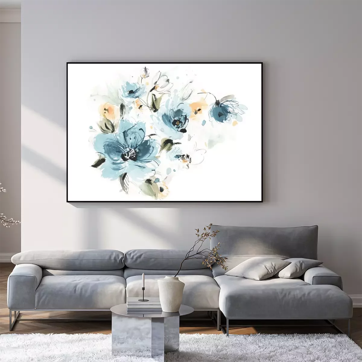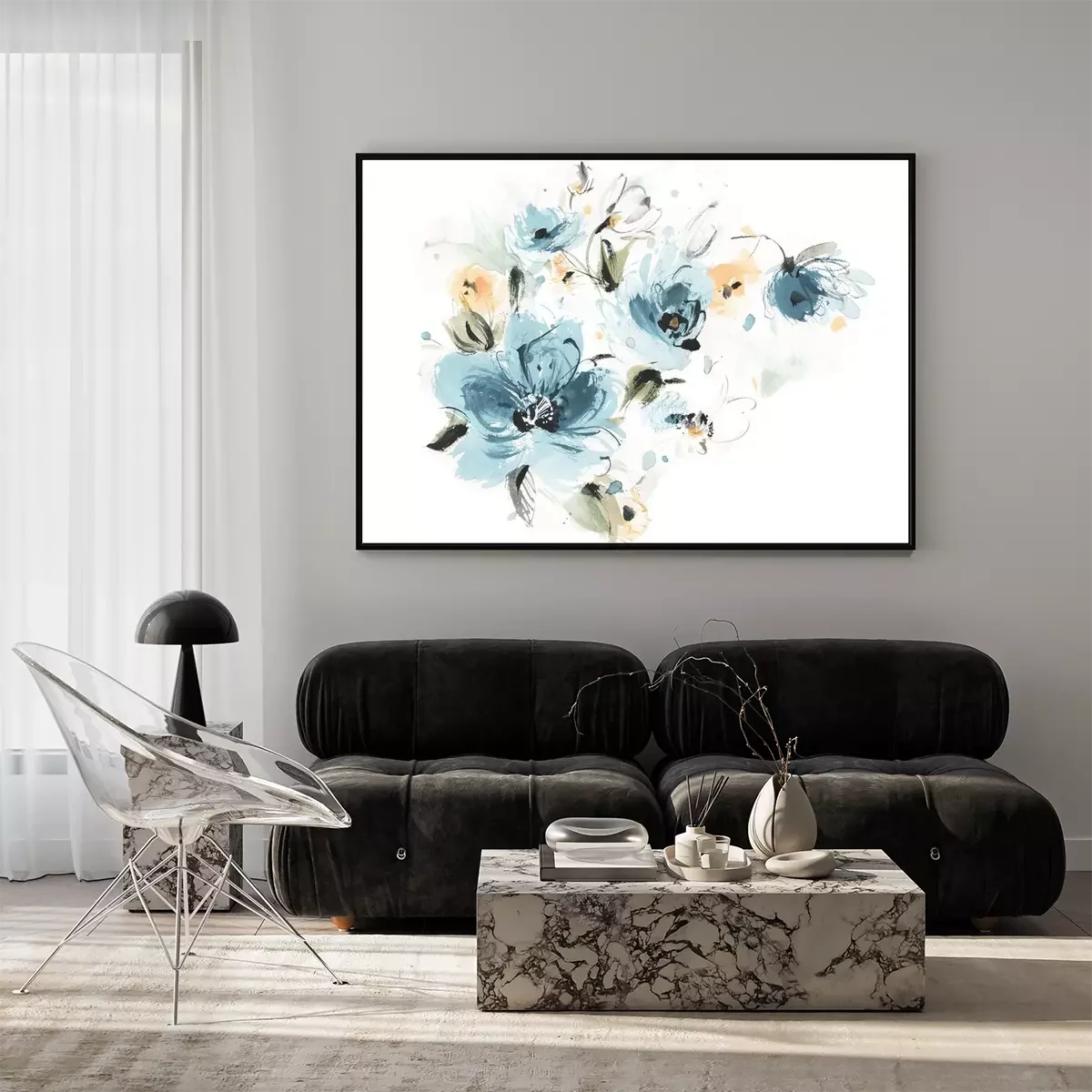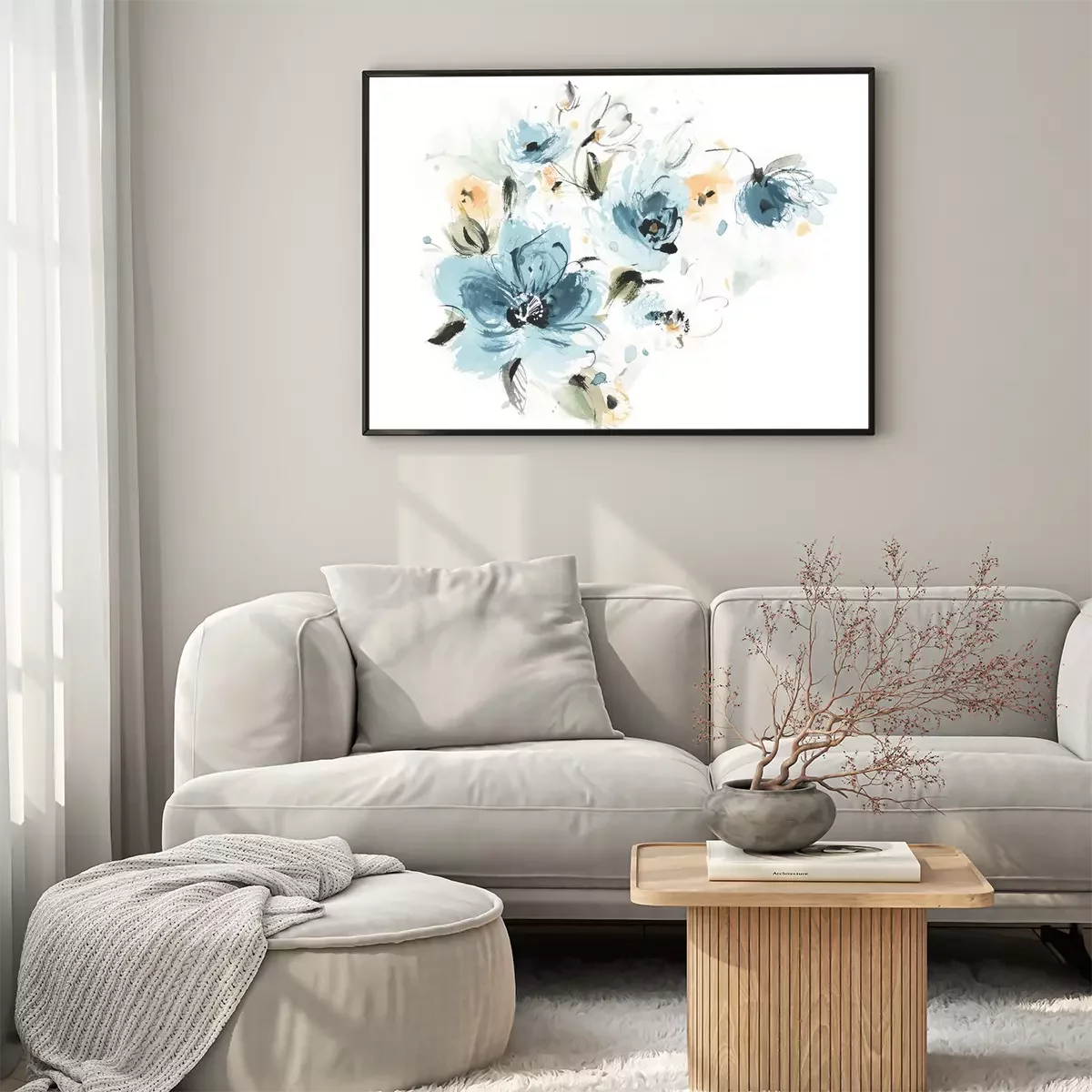 Poster  Blauwe orchideebloemen met vervaagde randen