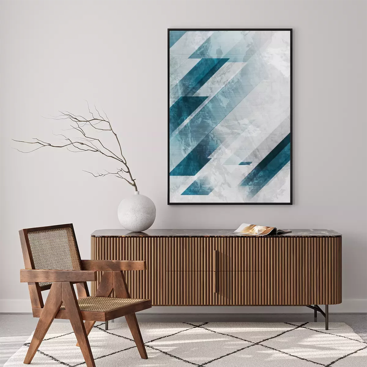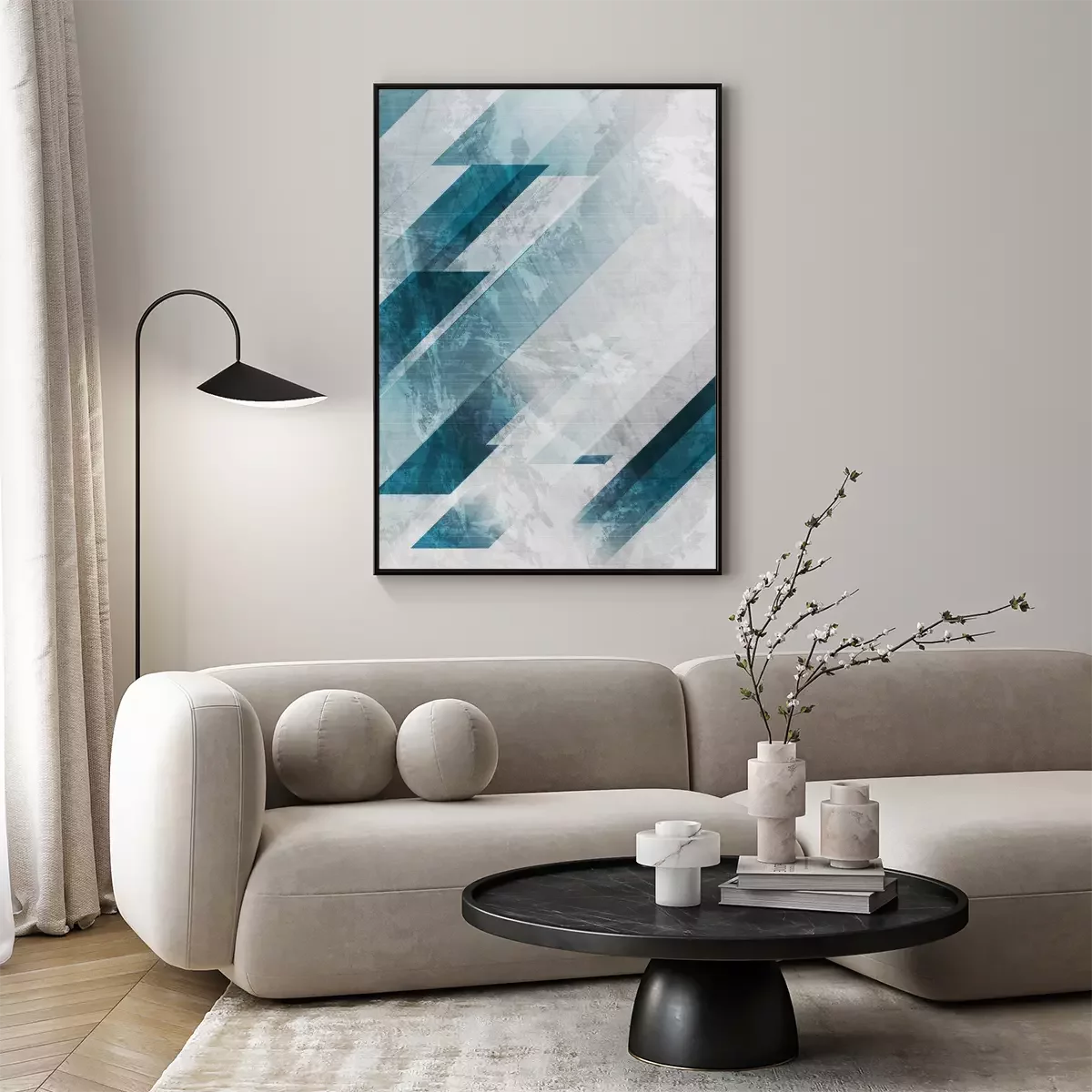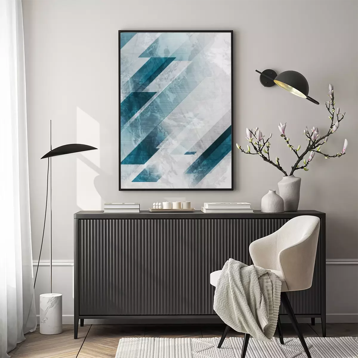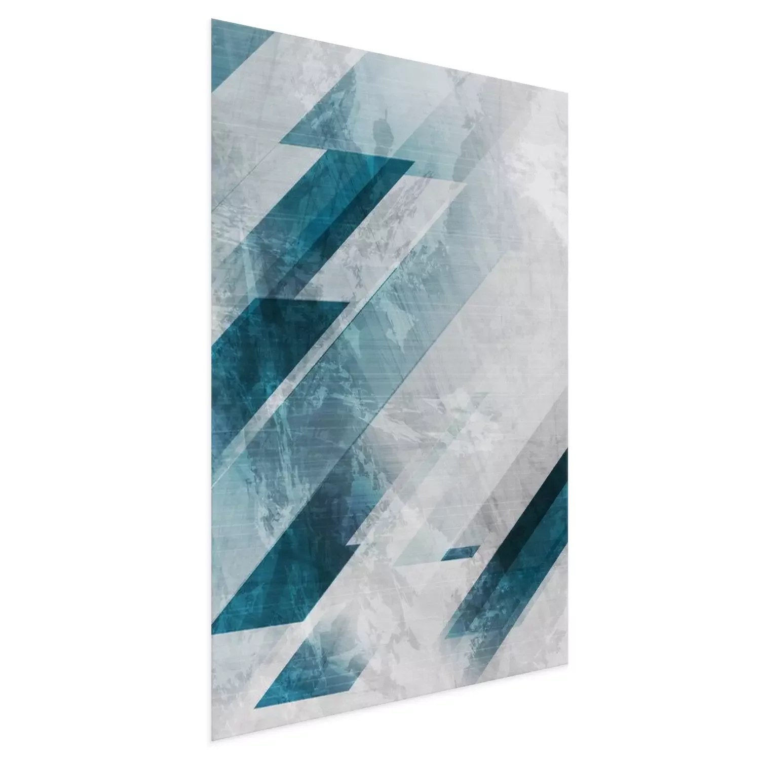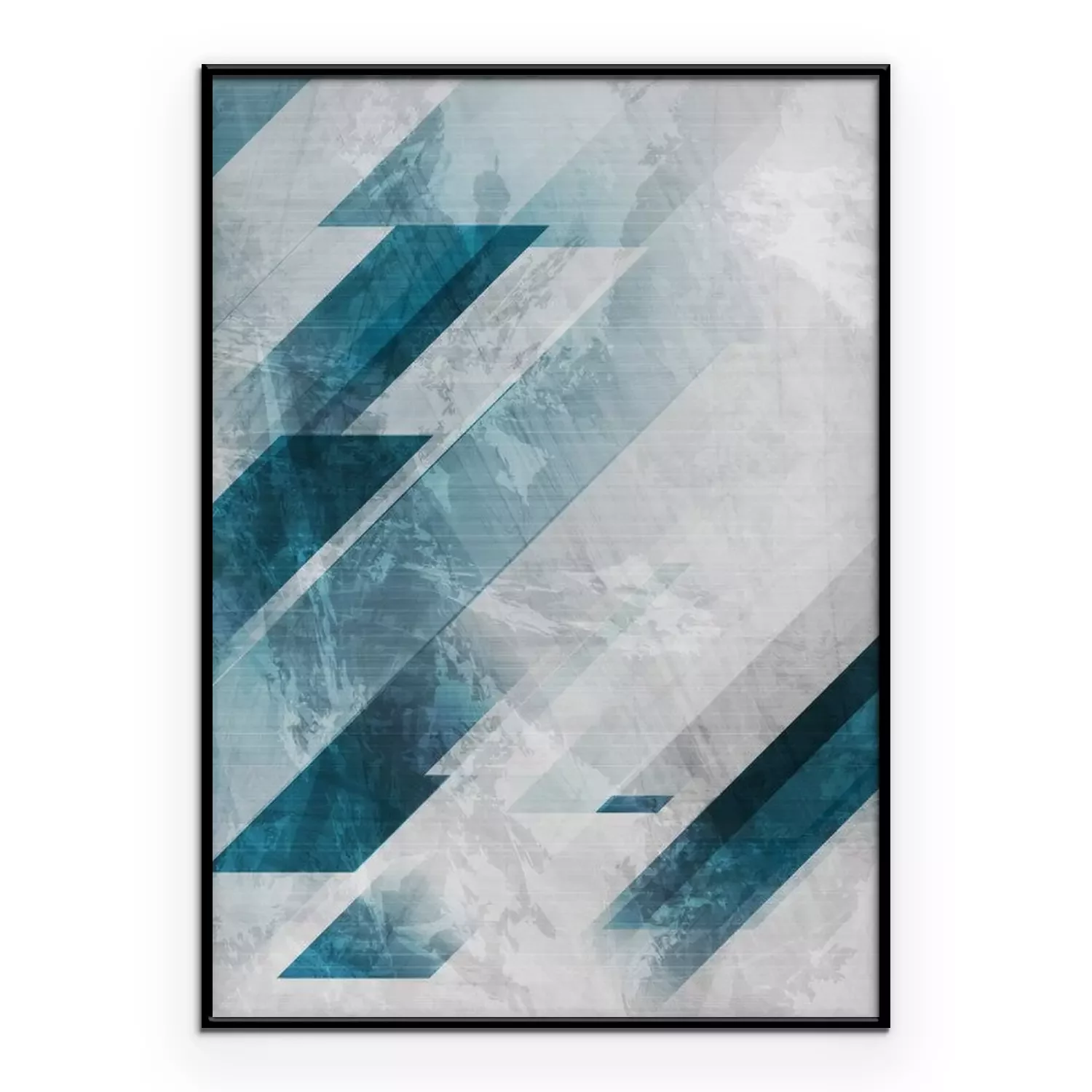 Poster : Blue and grey grunge stripes abstract flyer design. Geometric tech background. Vector illustration