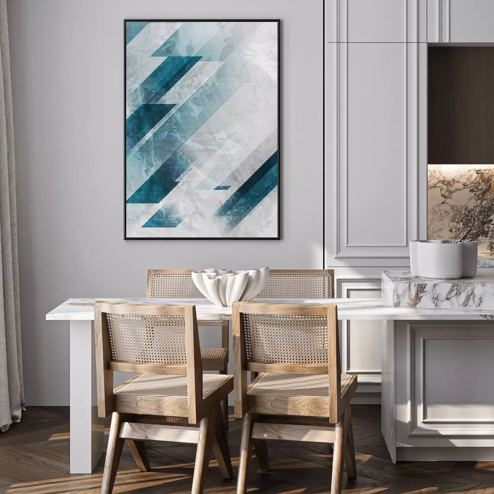 Poster  Blue and grey grunge stripes abstract flyer design. Geometric tech background. Vector illustration