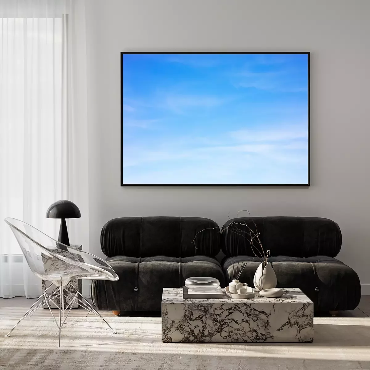 Poster  Blue sky background and white clouds soft focus, and copy space