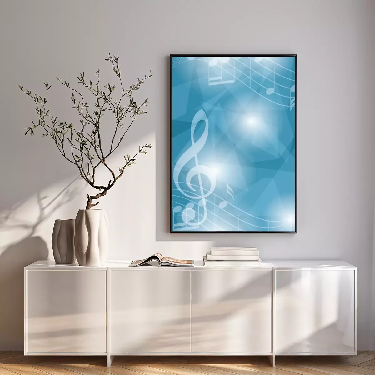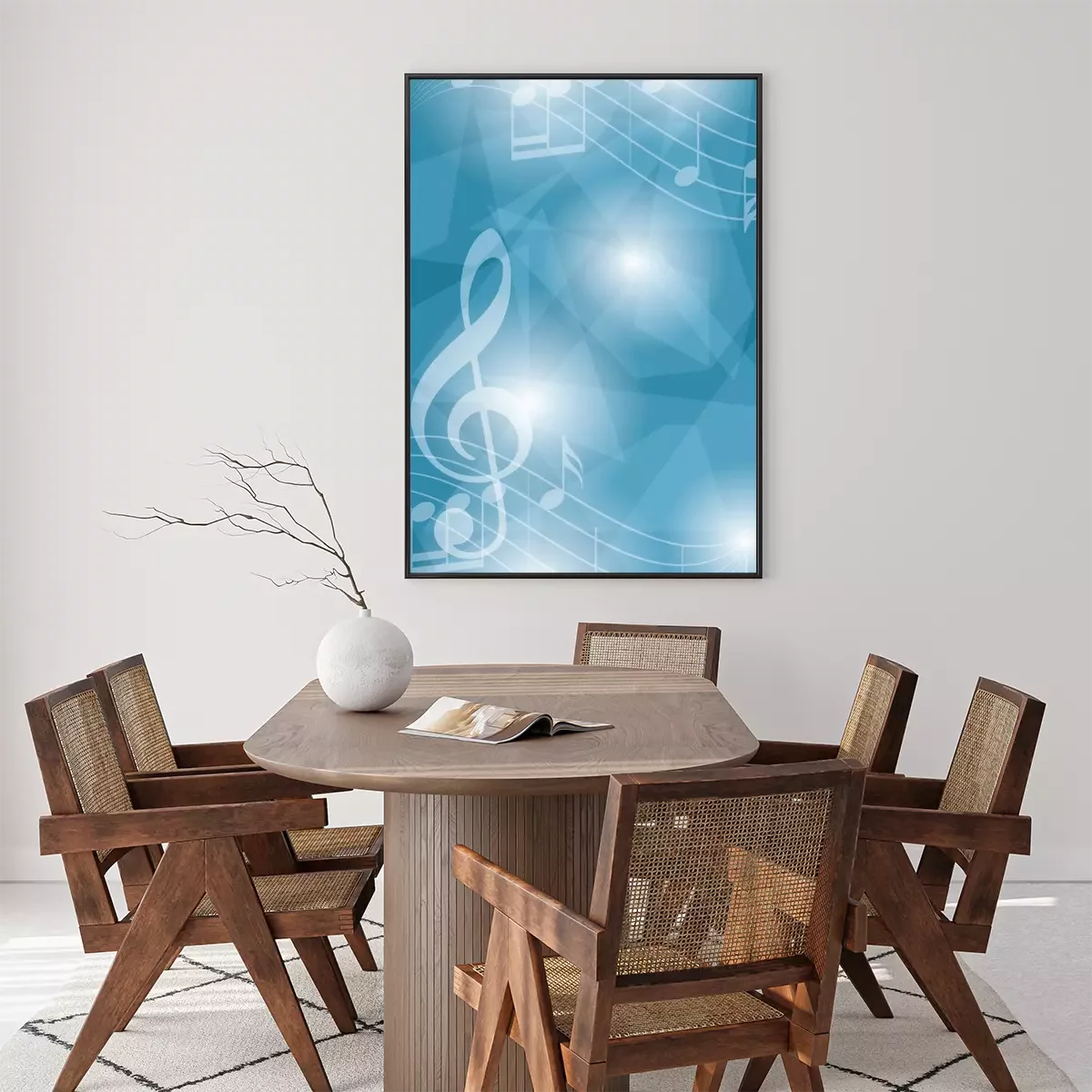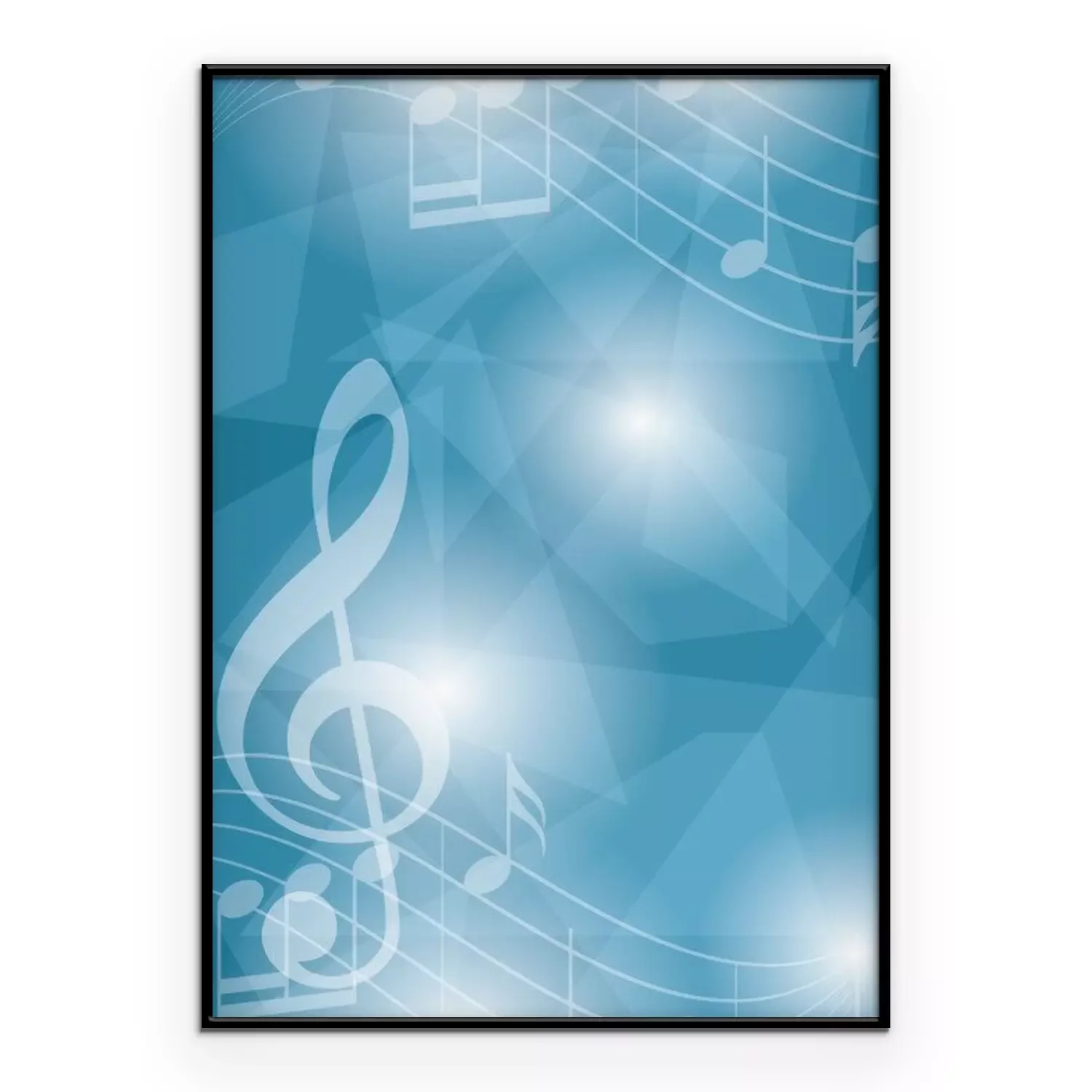 Poster  blue vector flyer with music notes and geometric shapes - abstract background