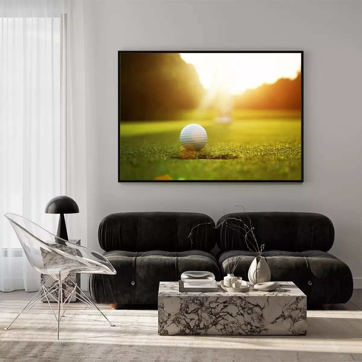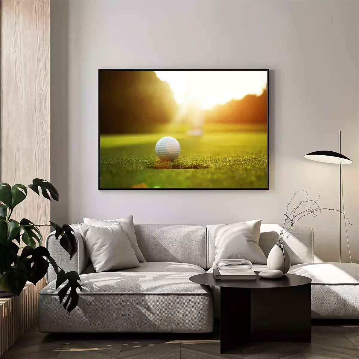 Poster  Blurred golfers are putting golf in the evening golf course golf backglound in Thailand