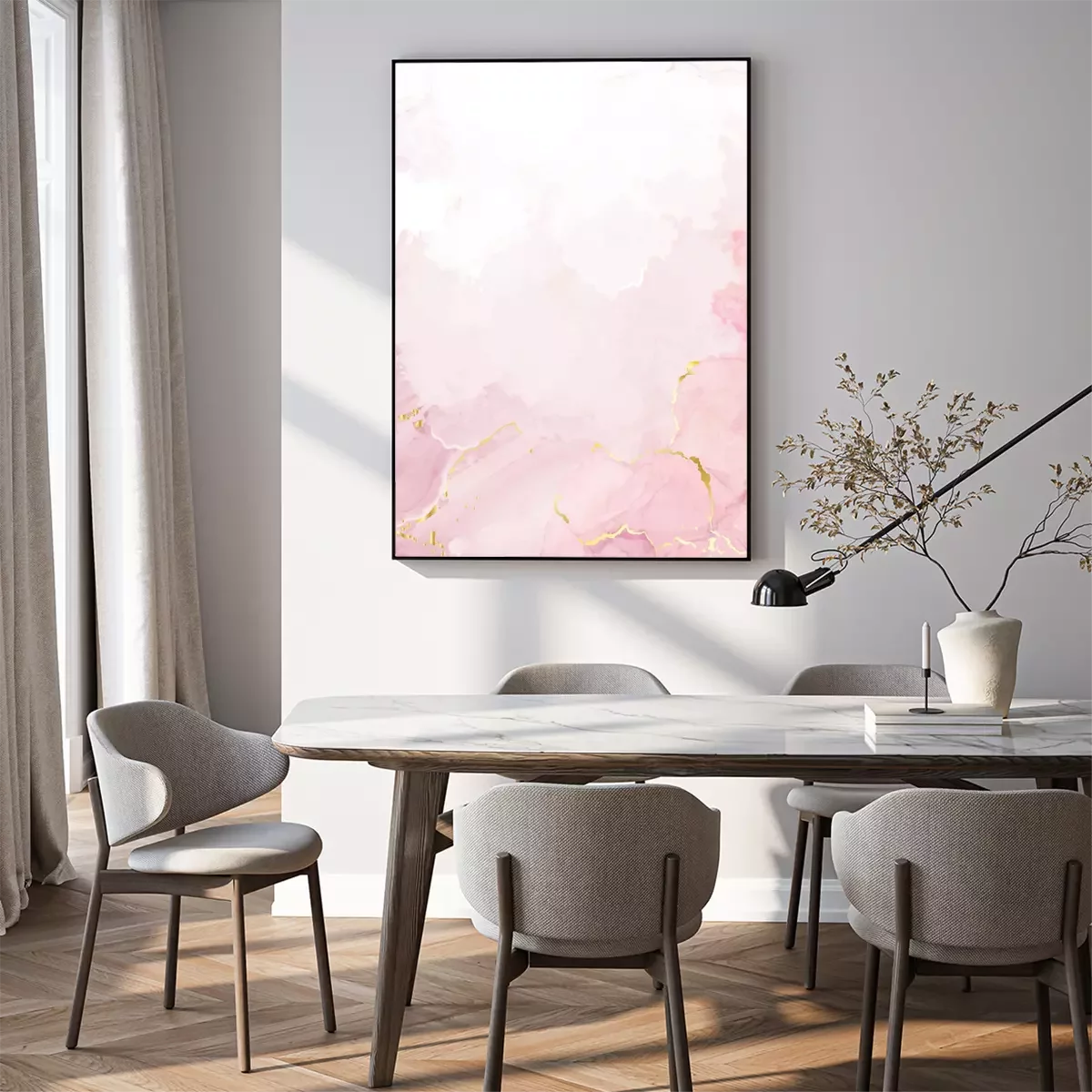 Poster  Blush pink watercolor fluid painting vector design card