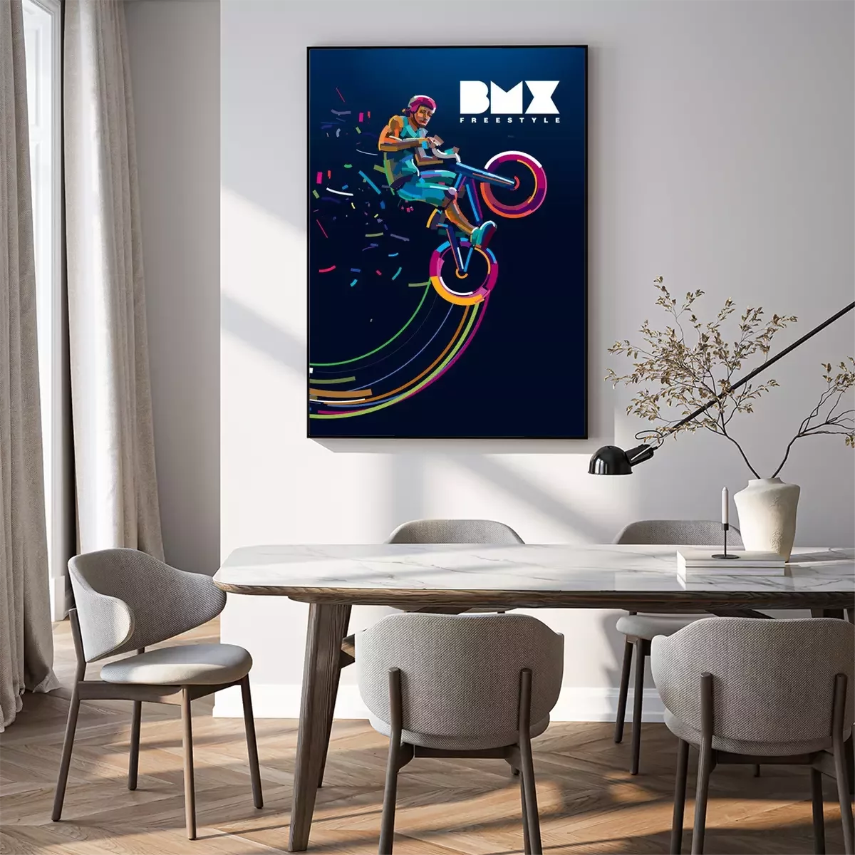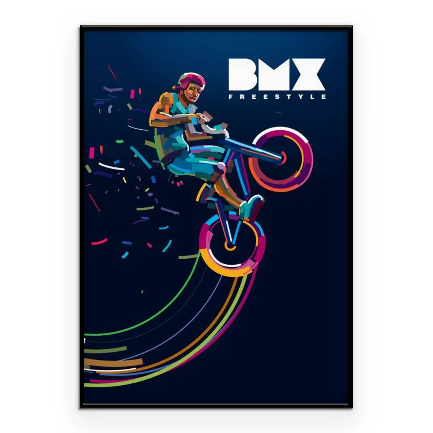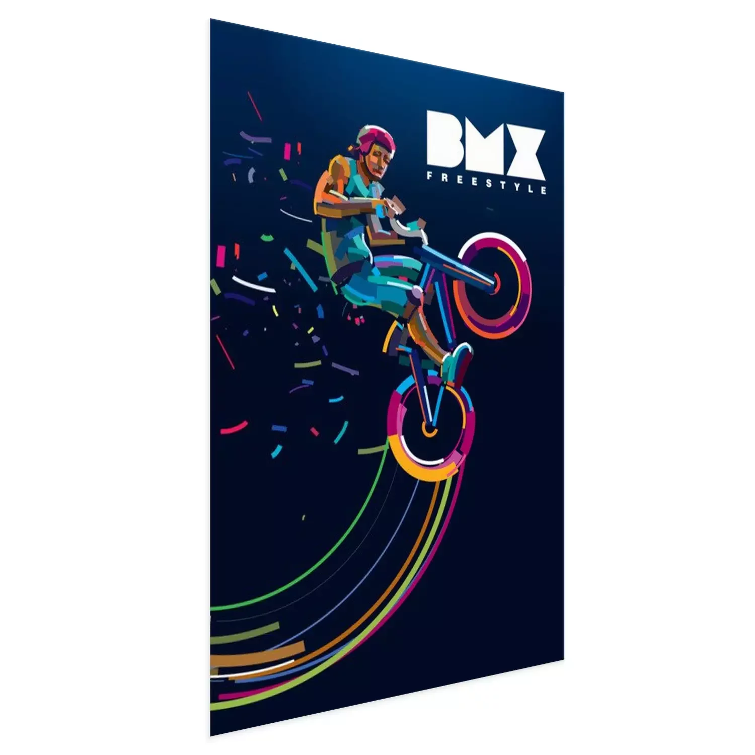 Poster  bmx. Biker dans un saut. Affiche dans une peinture numérique.