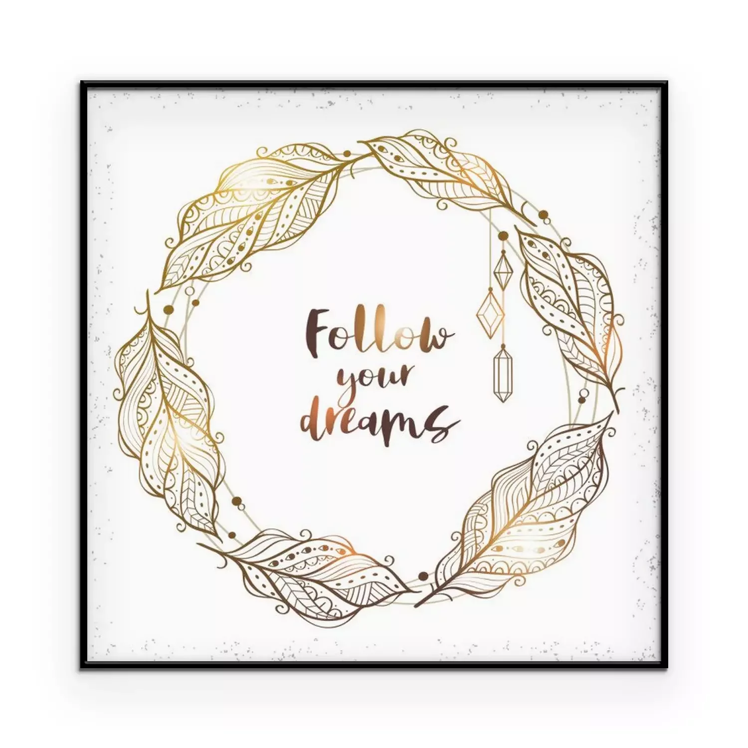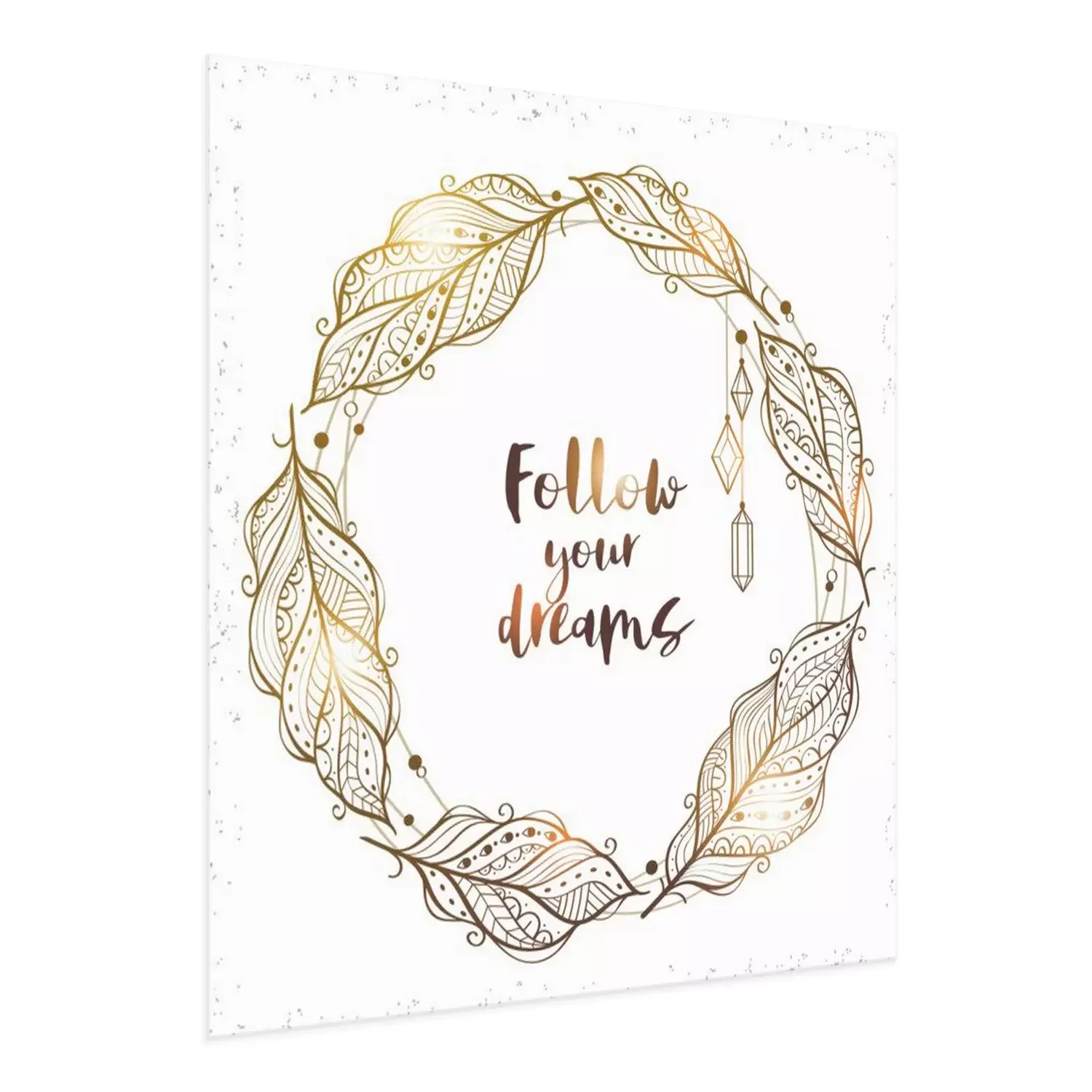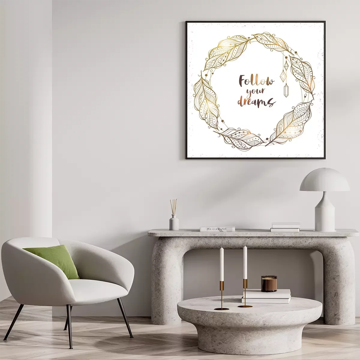 Poster : Boho wreath with feathers, golden ethnic feathers, circle frame with place for text, isolated on white background, vector illustration