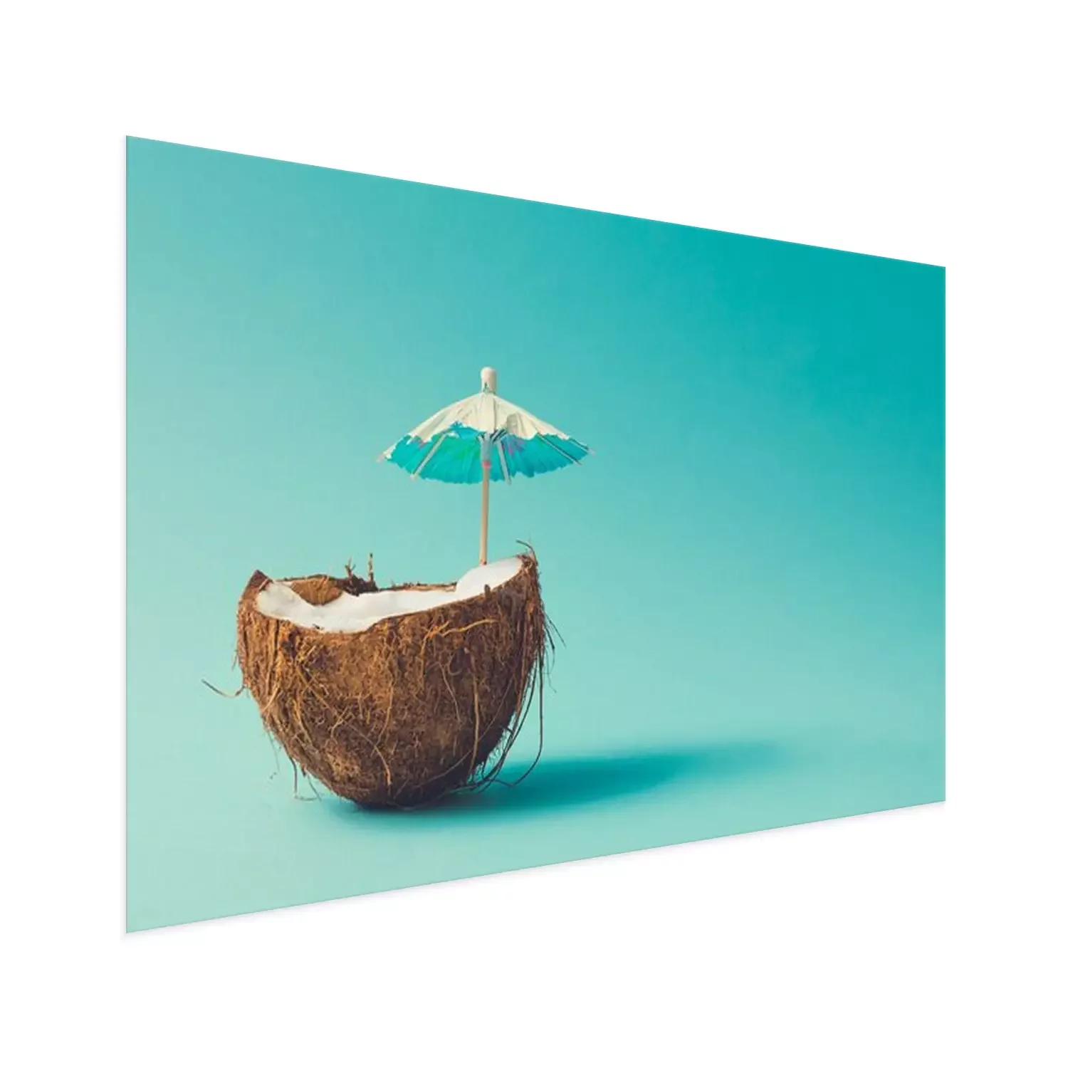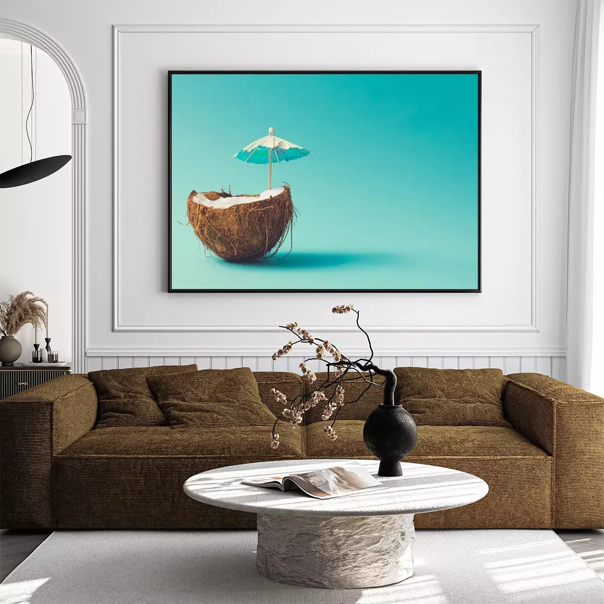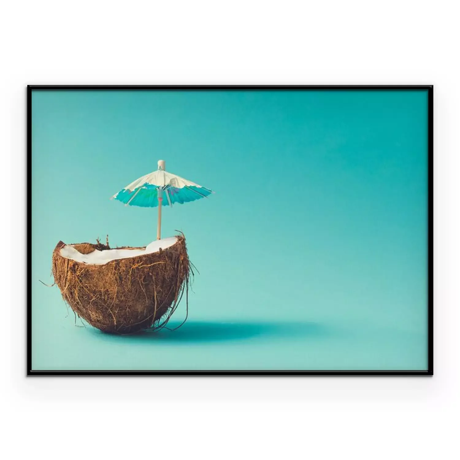 Poster  Boire avec un parapluie dans une demi noix de coco