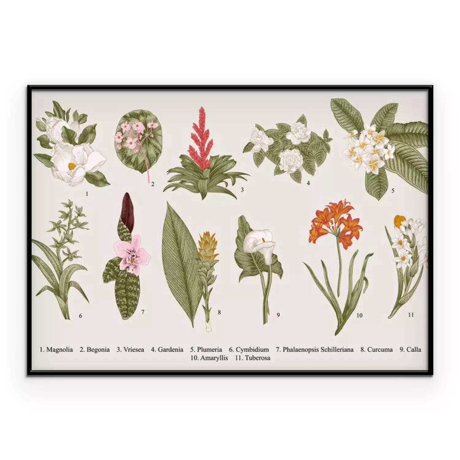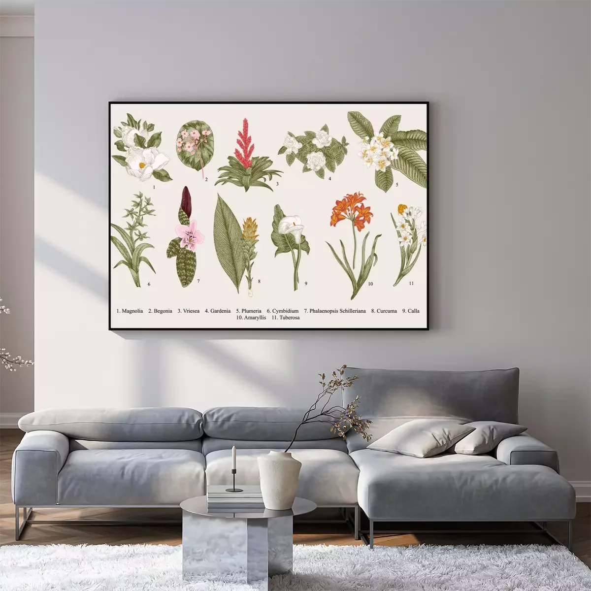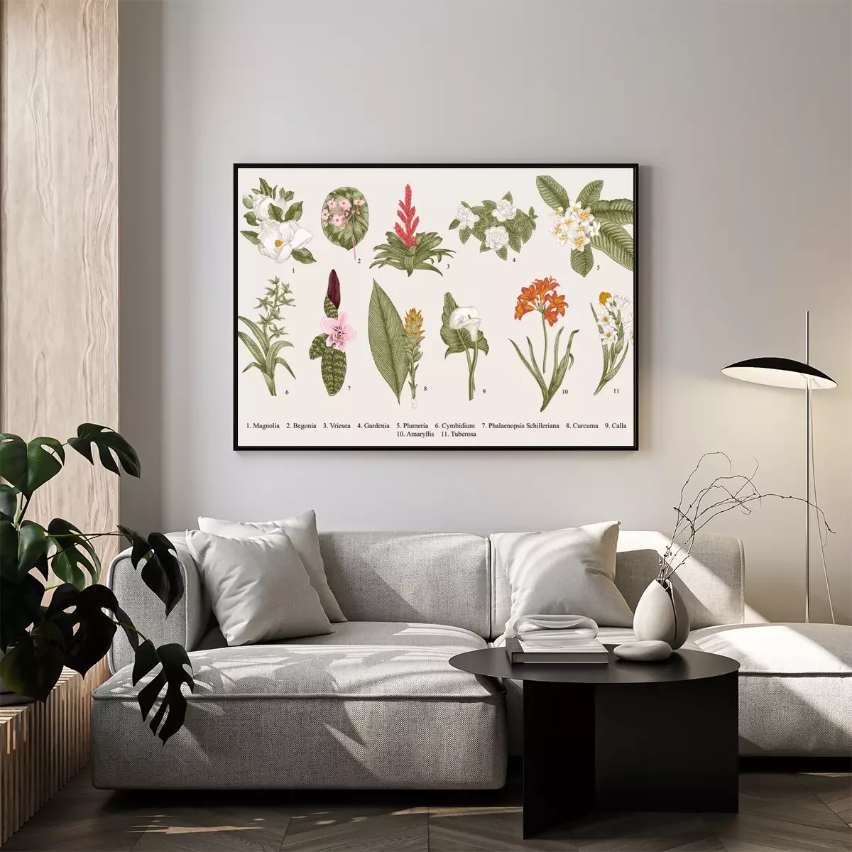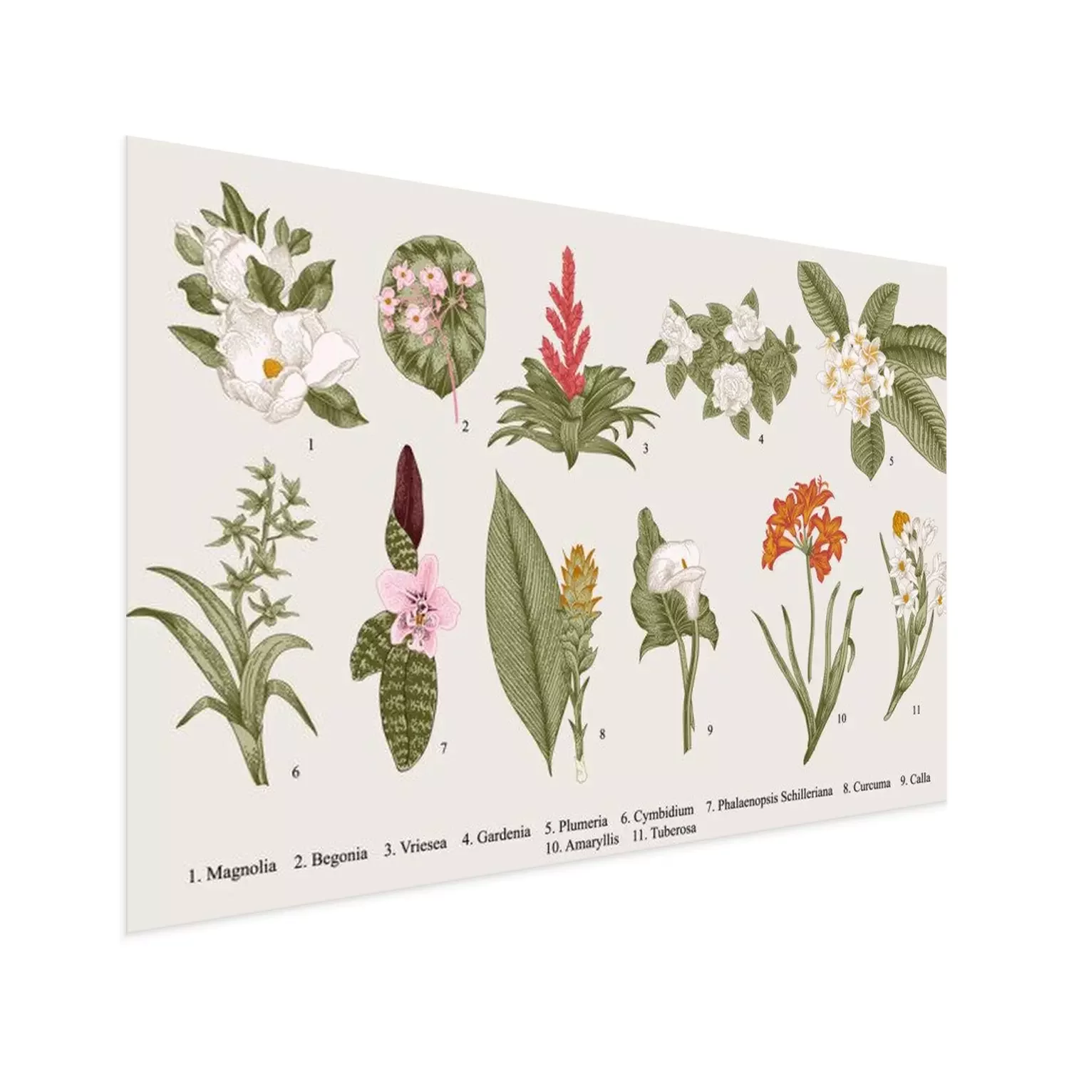 Poster  Botanique de fleurs de bégonia et de gardénia de magnolia