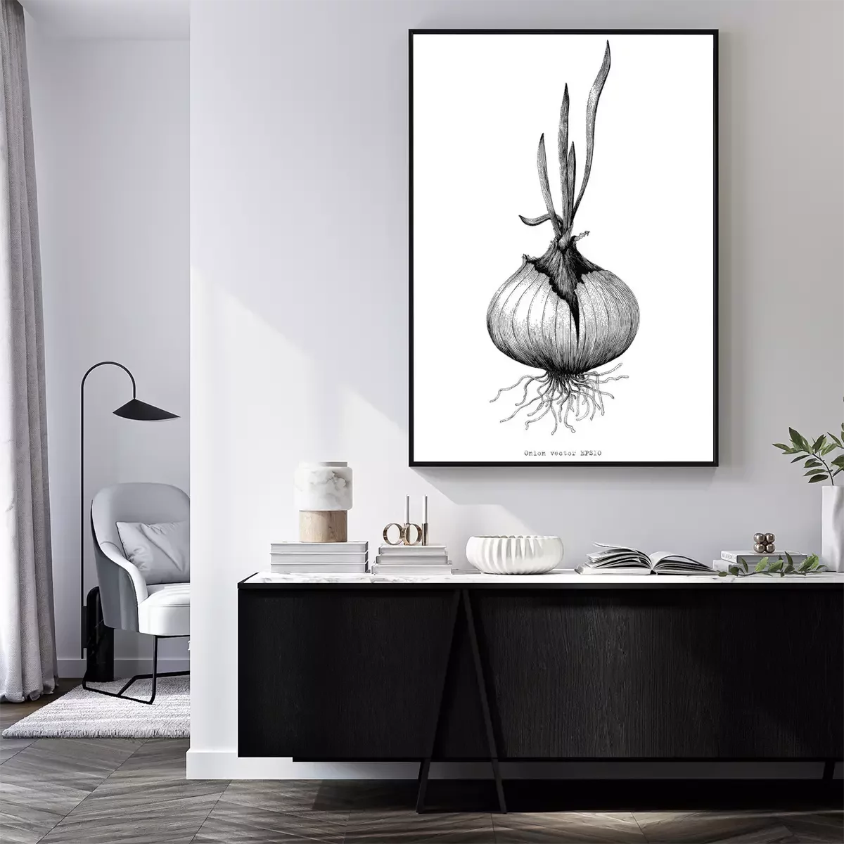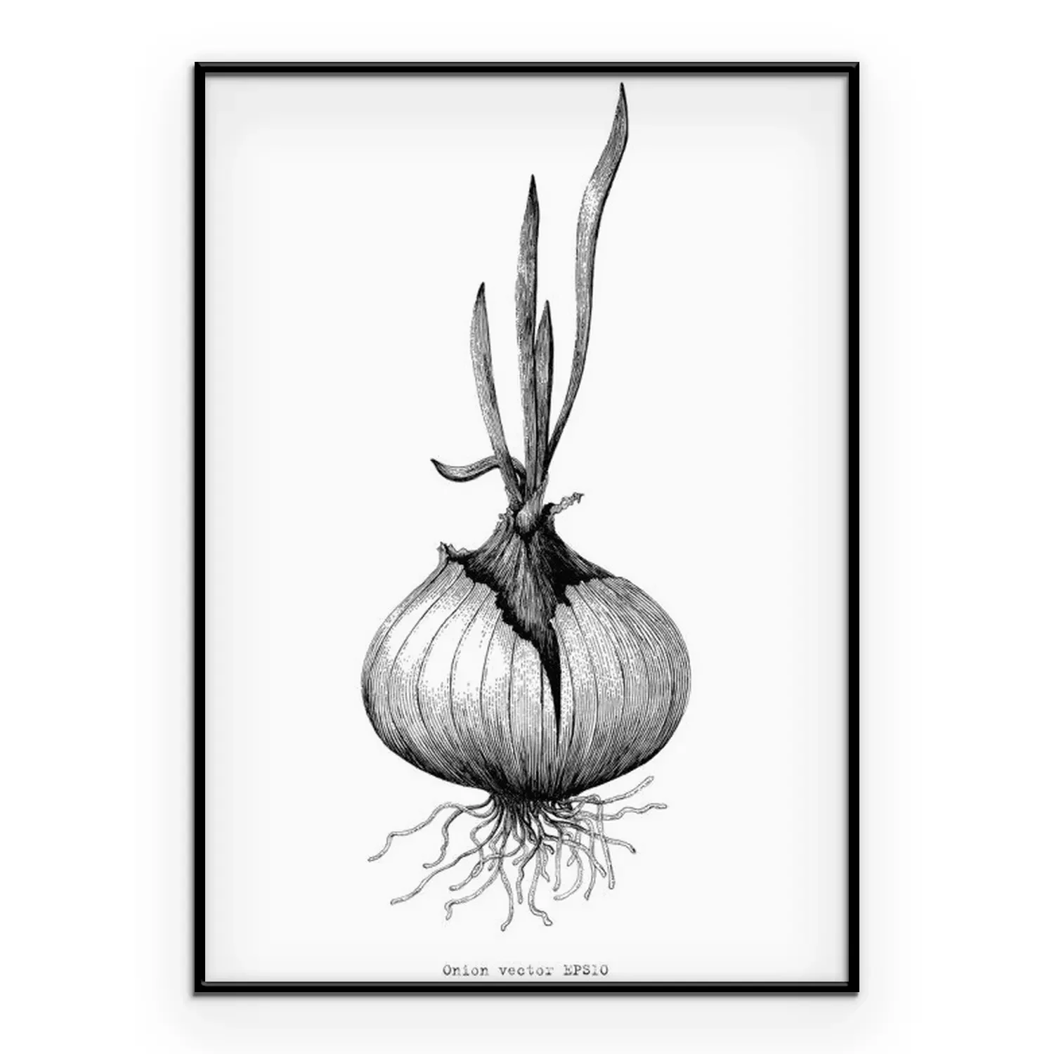 Poster  Botanique, oignon, main, dessin, antiquité, illustration