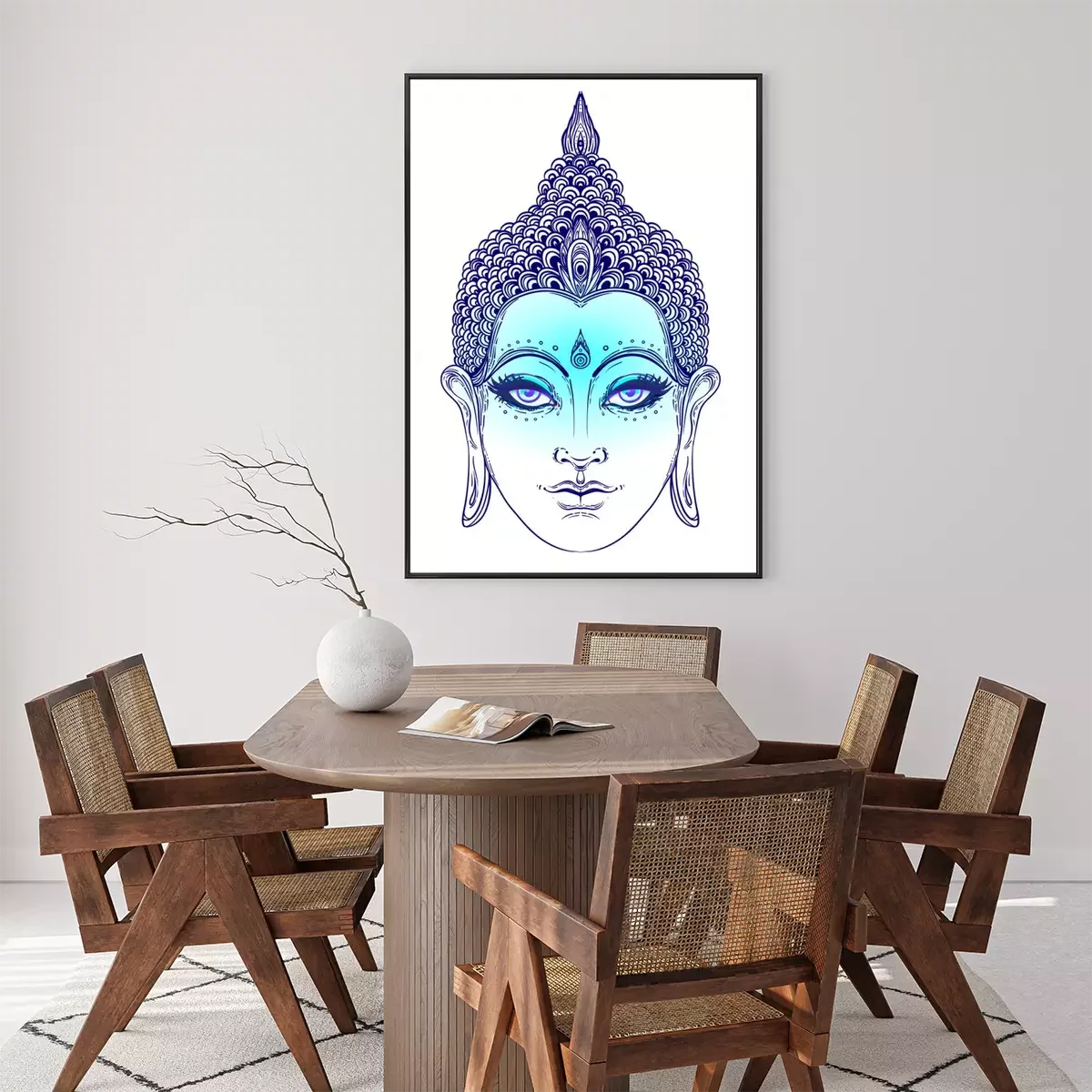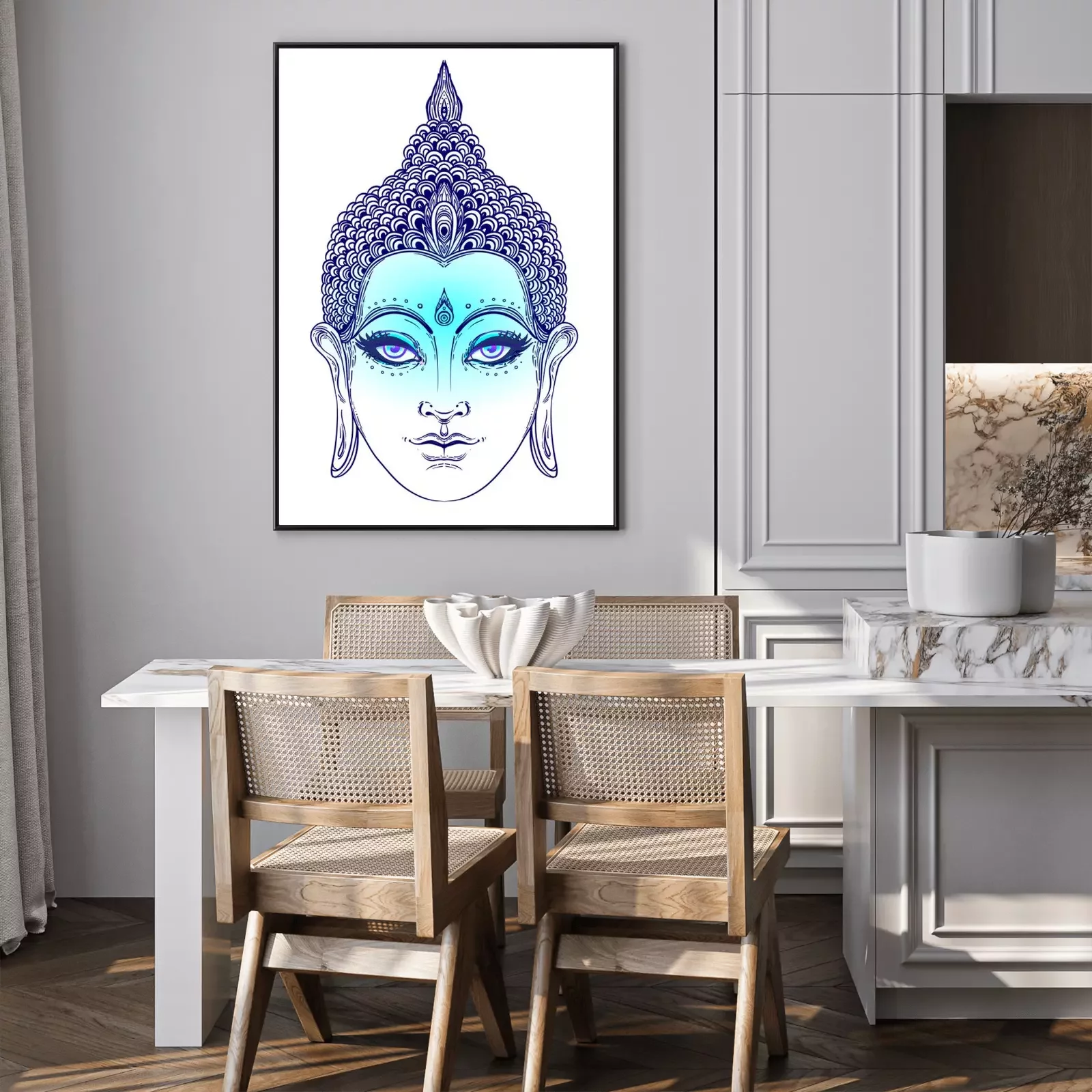 Poster  Bouddha au visage blanc et bleu et aux yeux violets