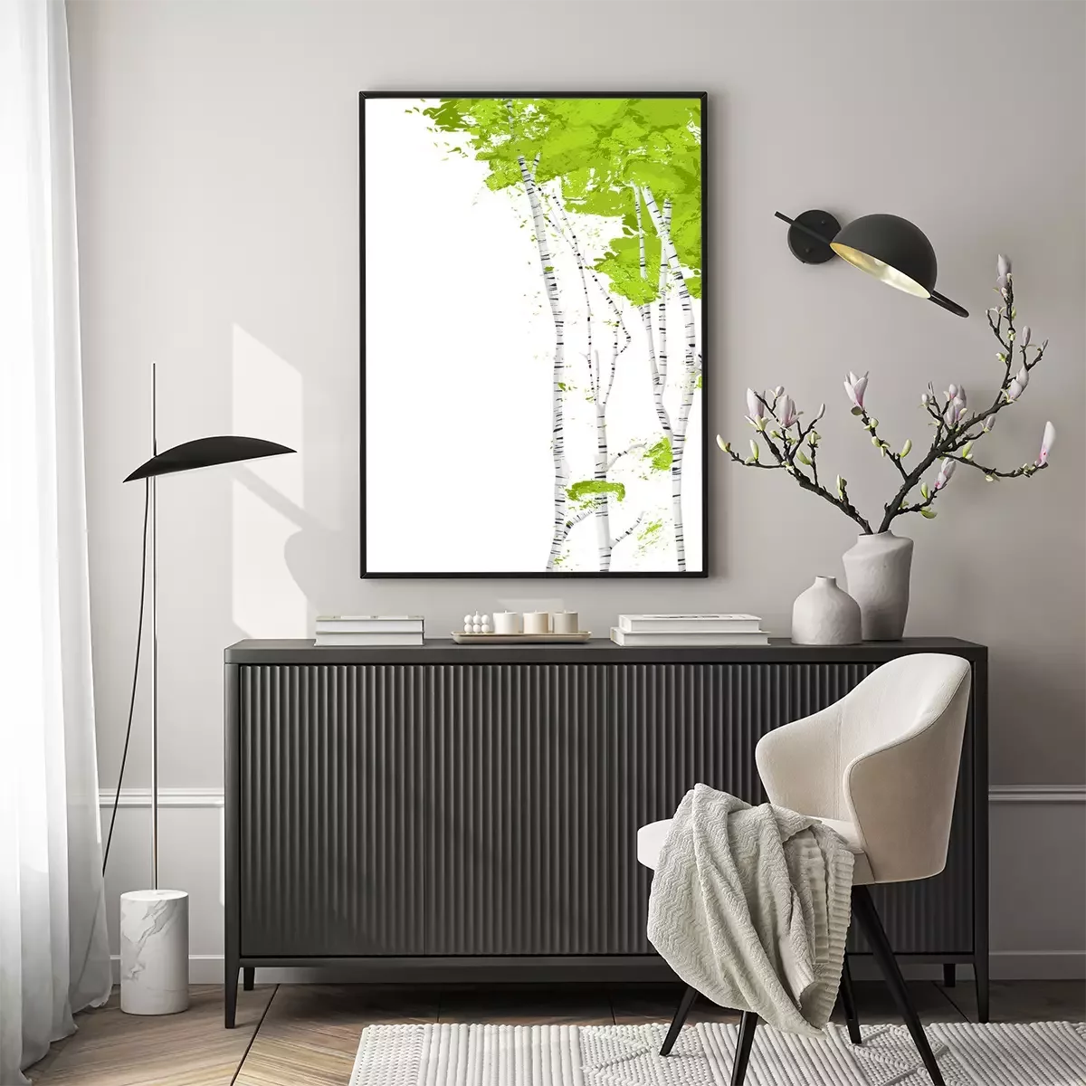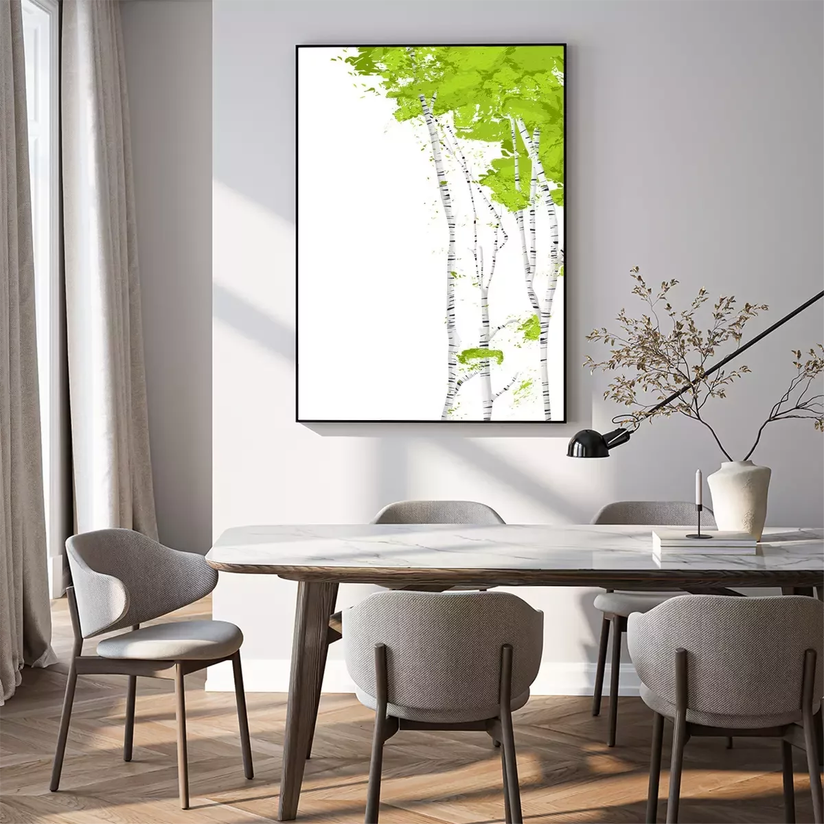 Poster : Bouleaux avec des feuilles d'un vert intense