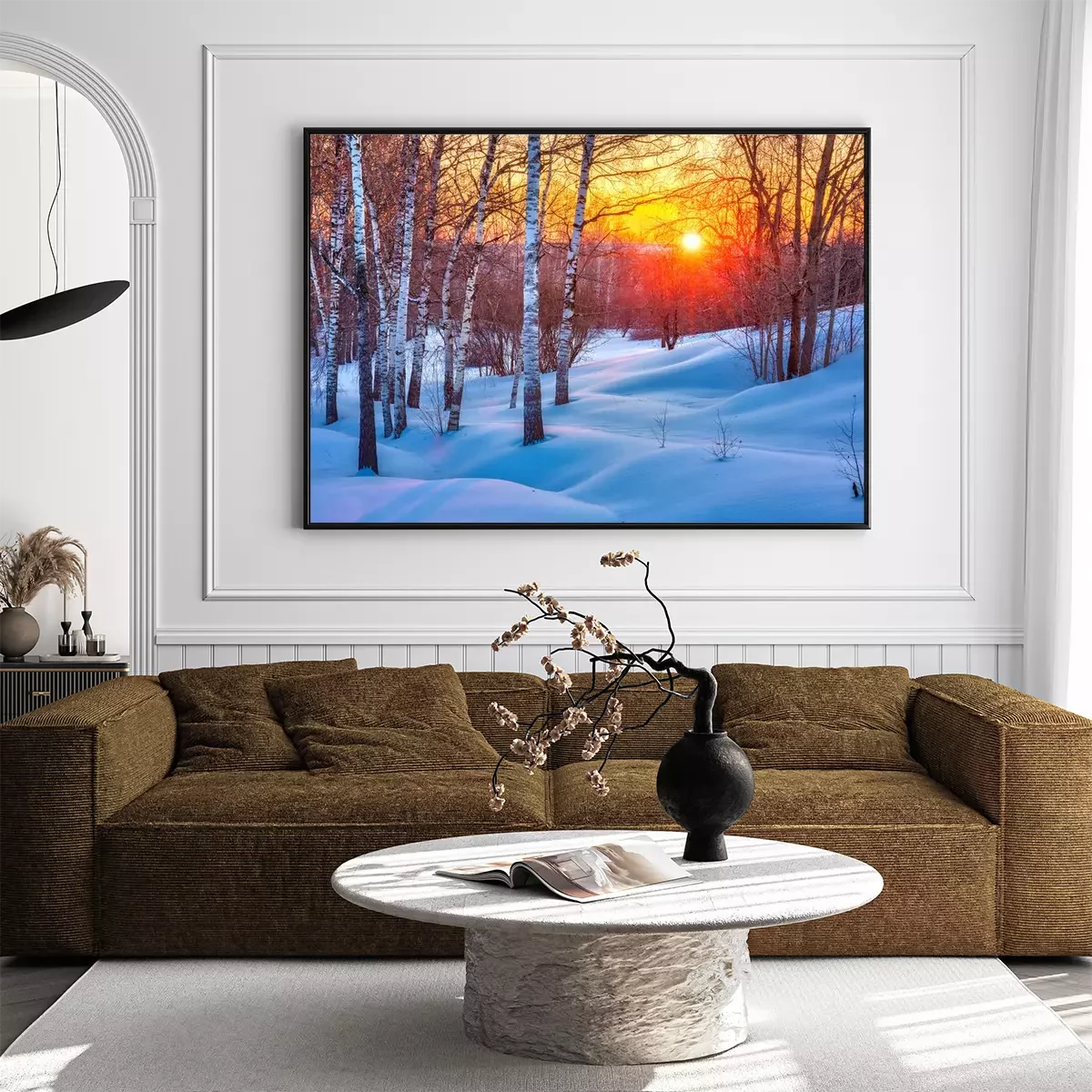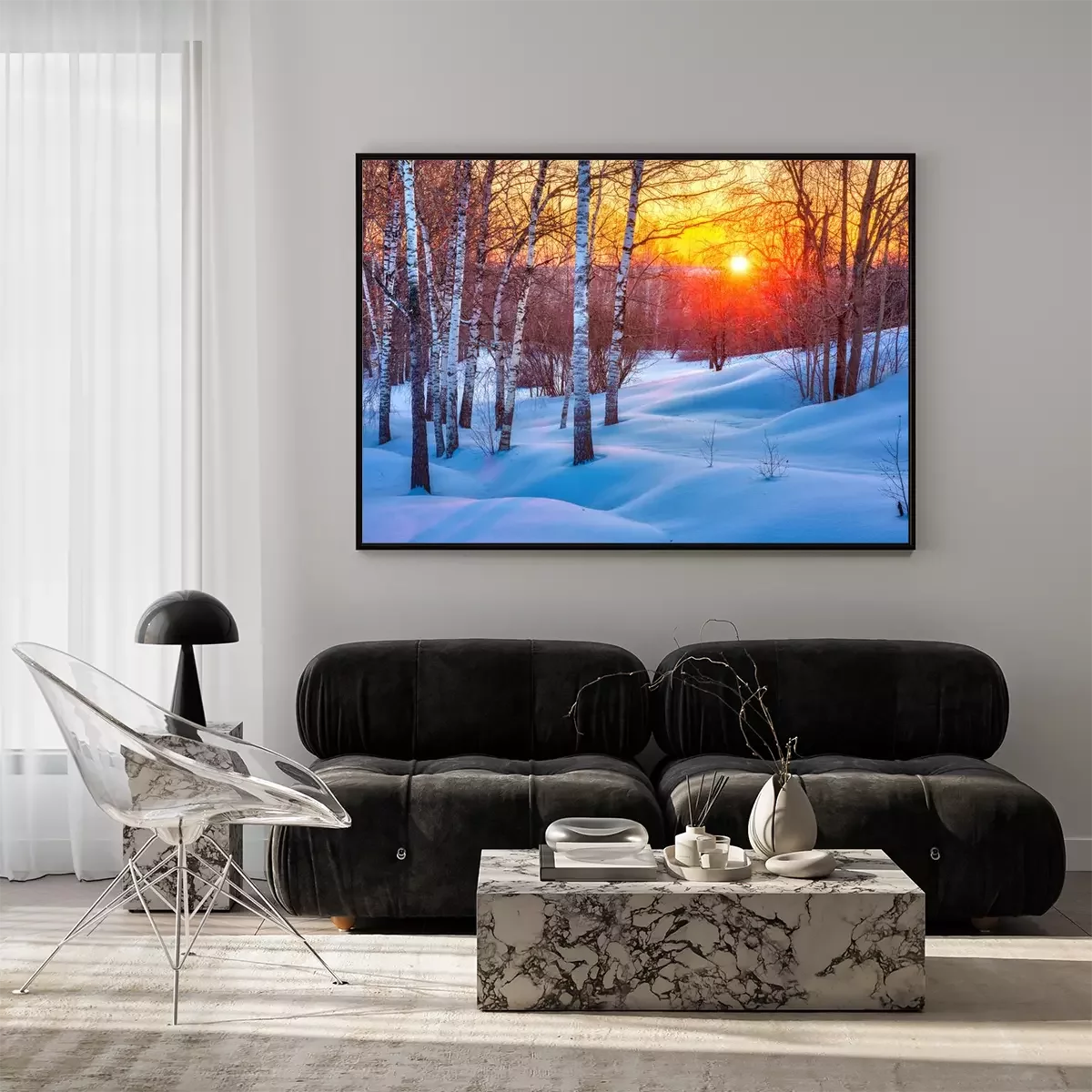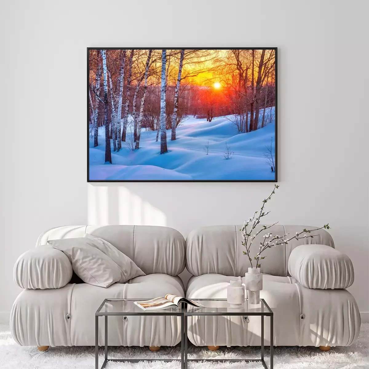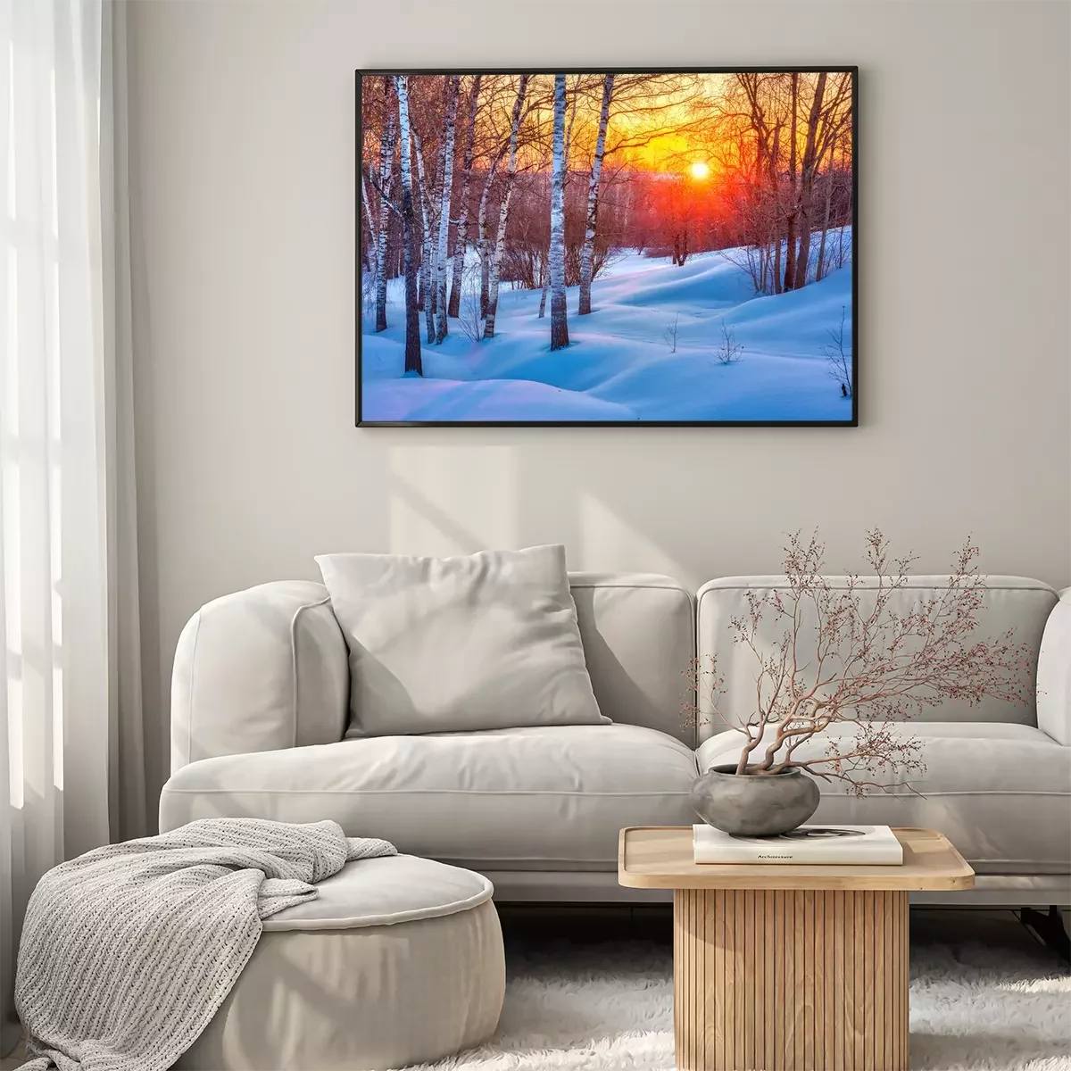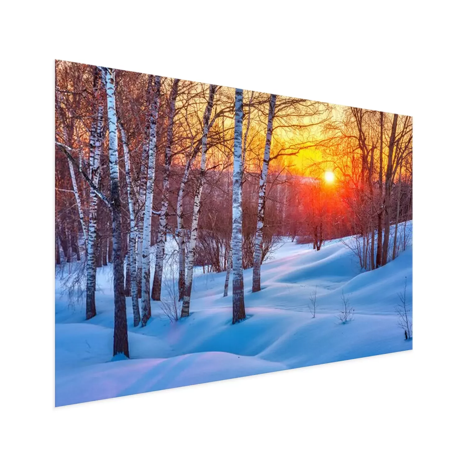 Poster  Bouleaux d'hiver illuminés par le soleil couchant