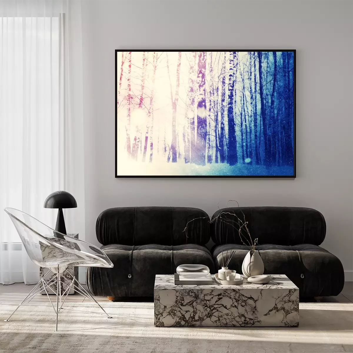 Poster  Bouleaux d'hiver pendant une tempête de neige