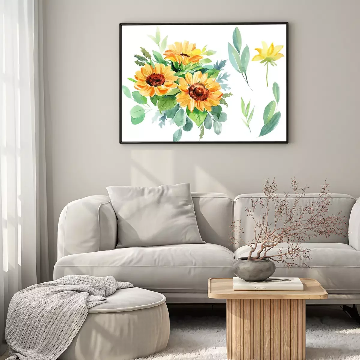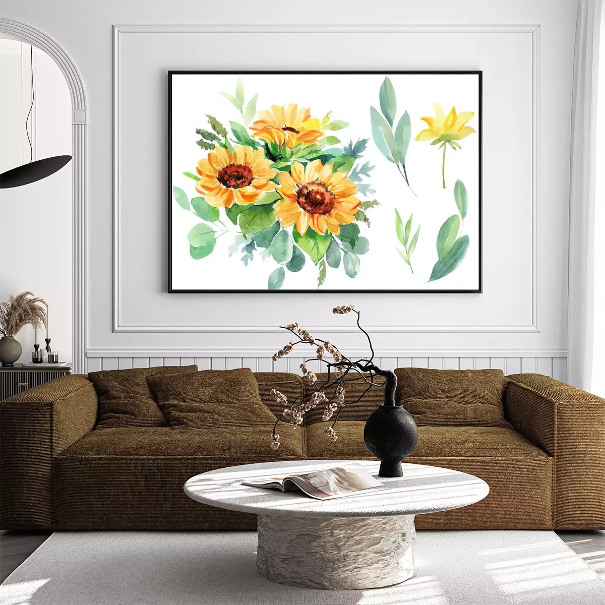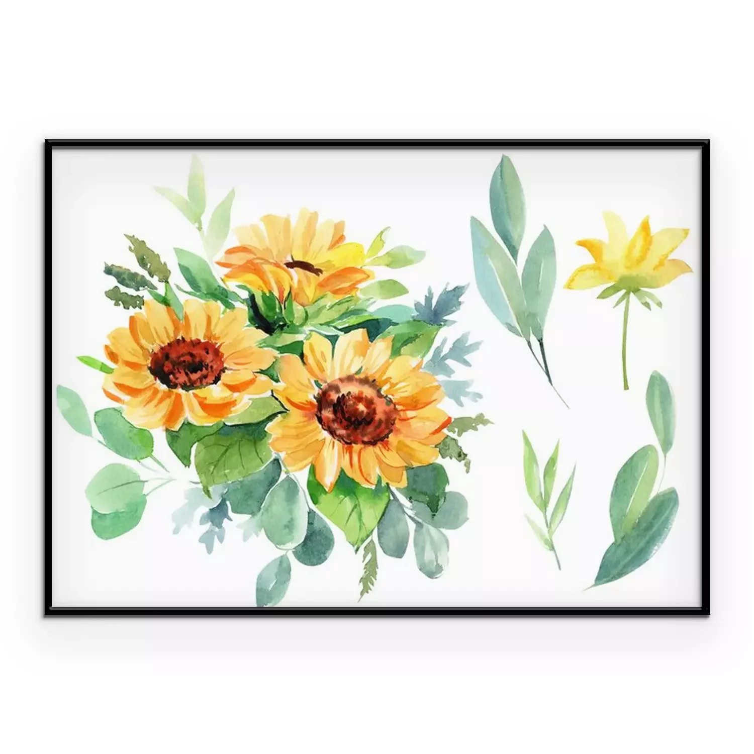 Poster : Bouquet de tournesols aquarelle parmi les feuilles