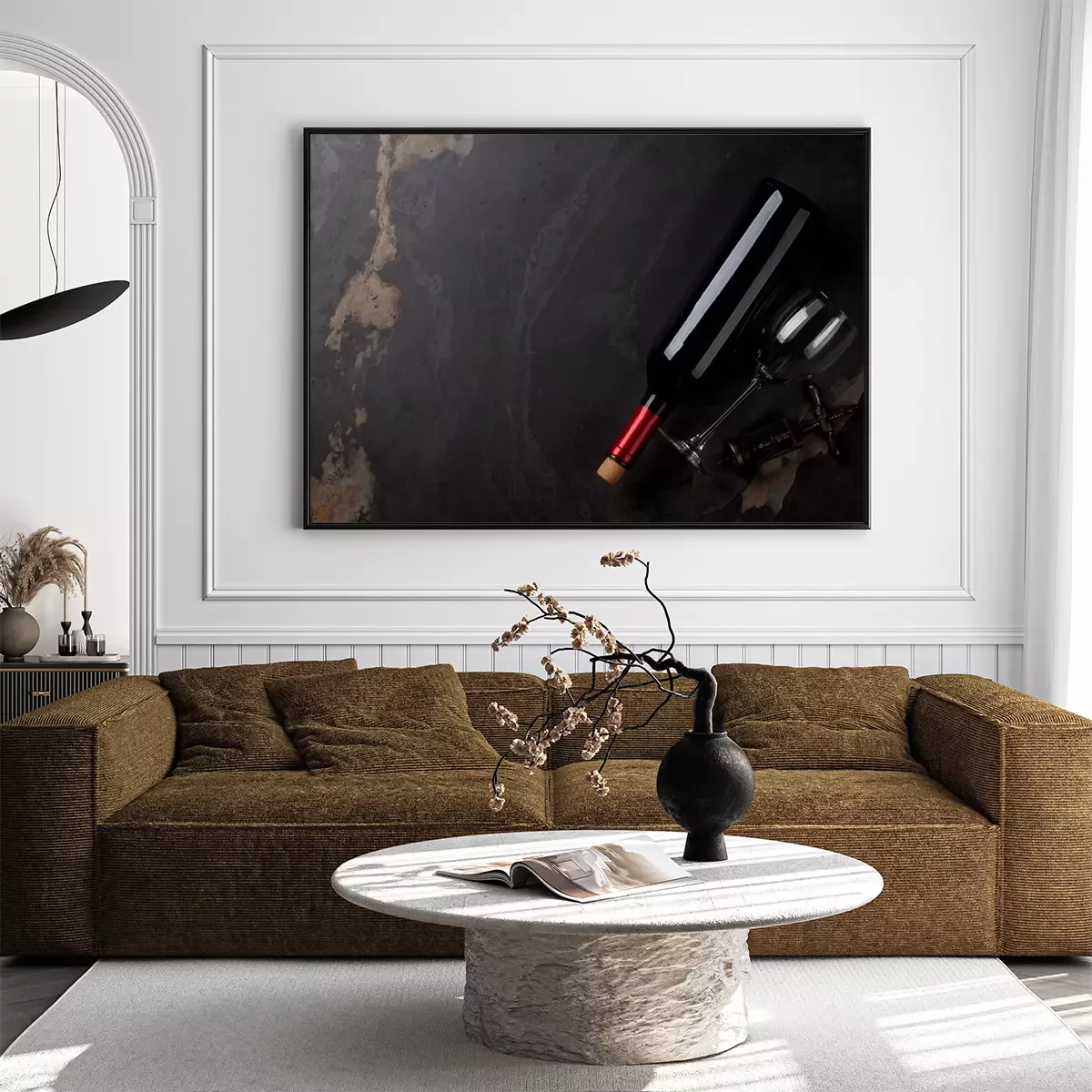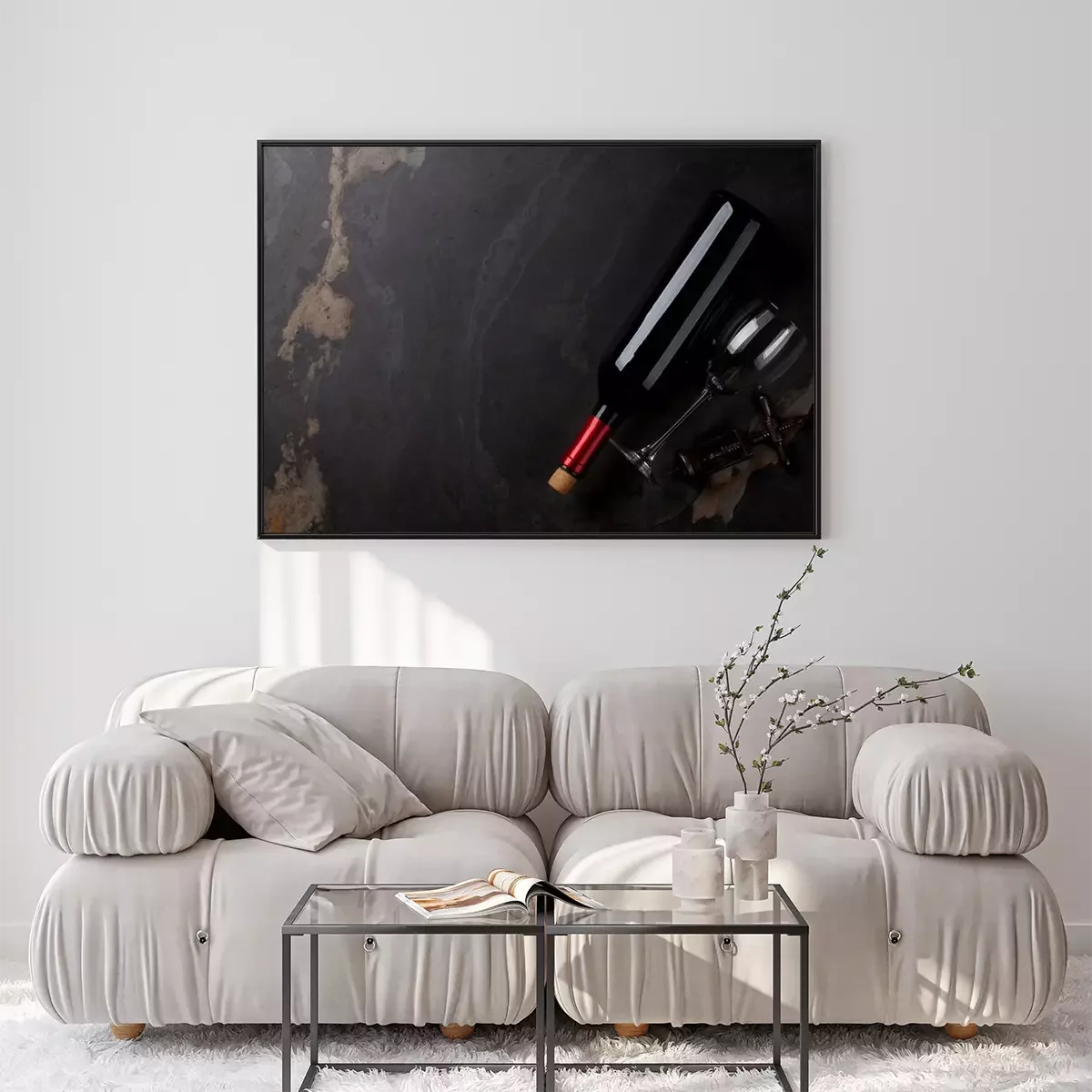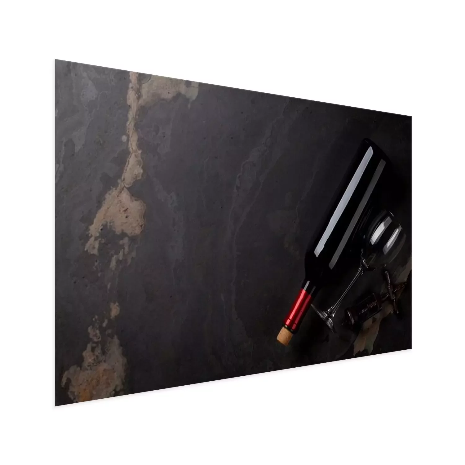 Poster : Bouteille de vin rouge, verre et tire-bouchon