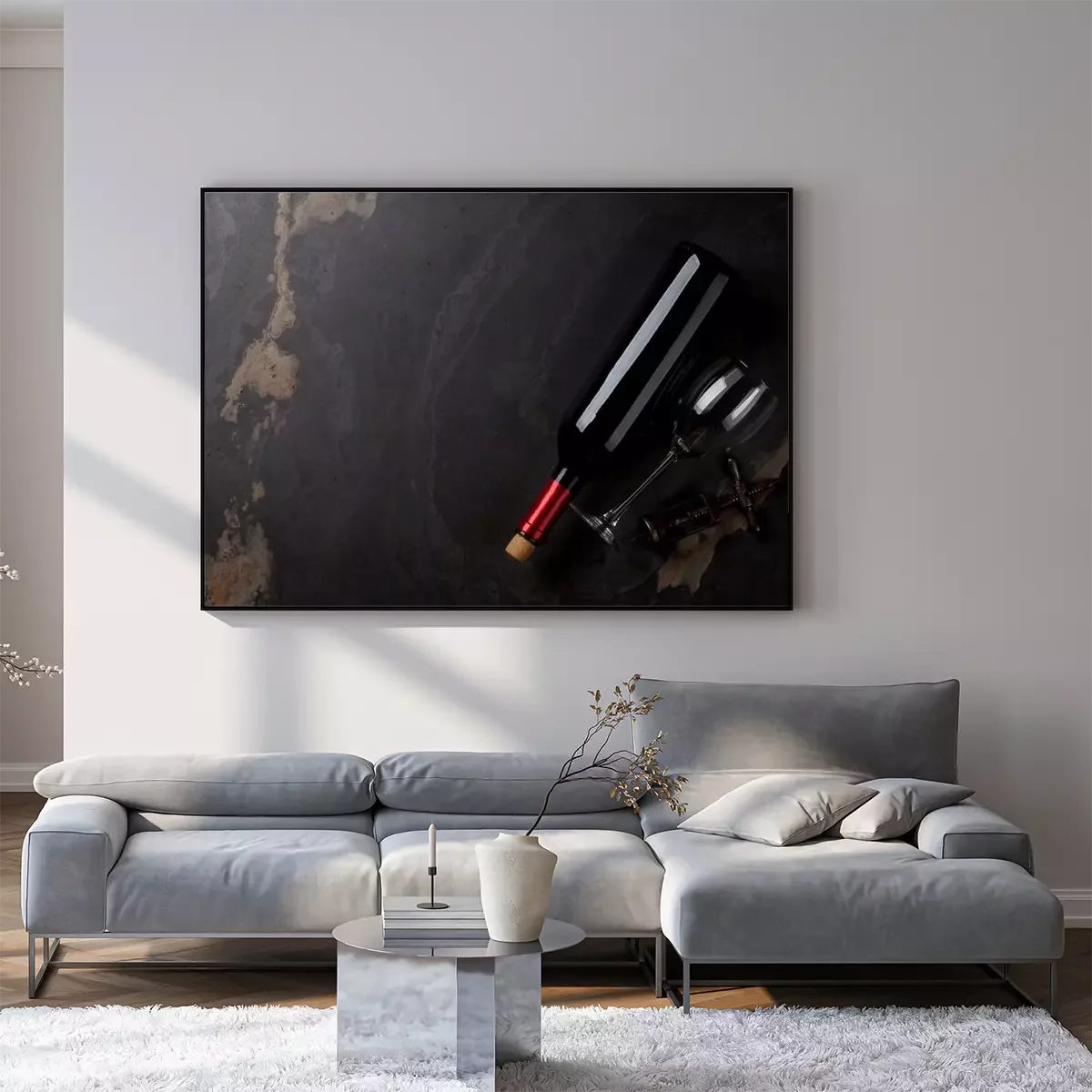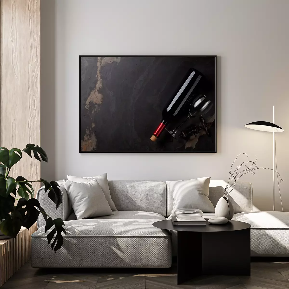 Poster  Bouteille de vin rouge, verre et tire-bouchon