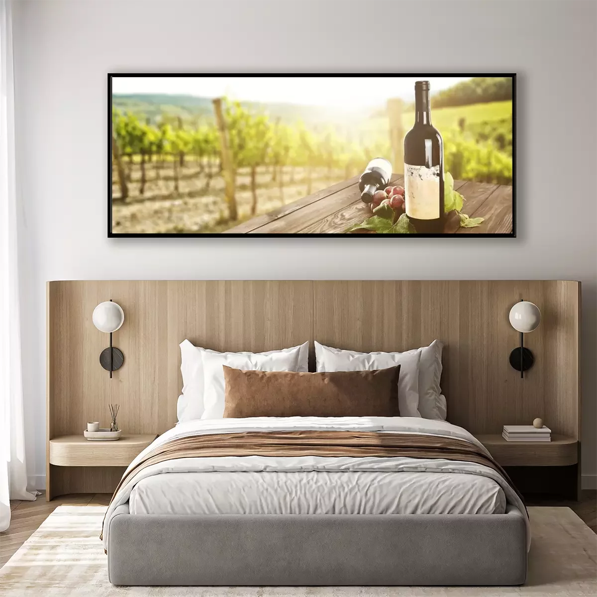 Poster  Bouteilles de vin avec une vigne en arrière-plan