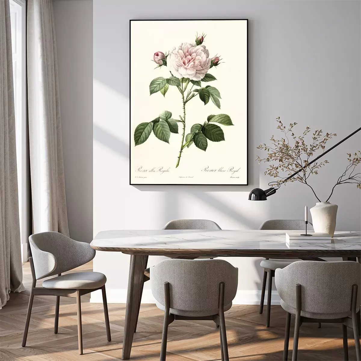 Croquis botanique de rose et bourgeons