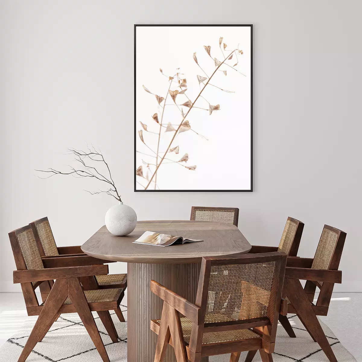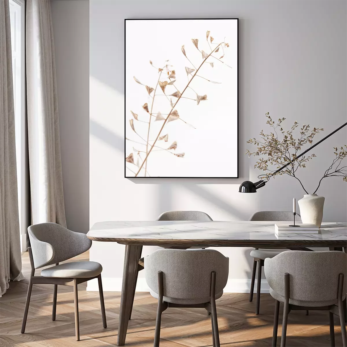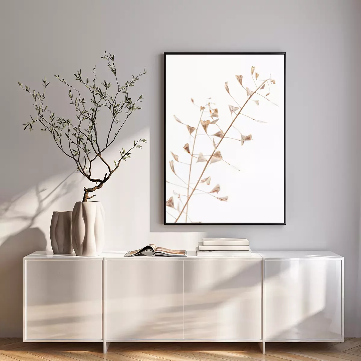 Poster : Branch romantic beige color shepherd's bag dry little flowers vertical