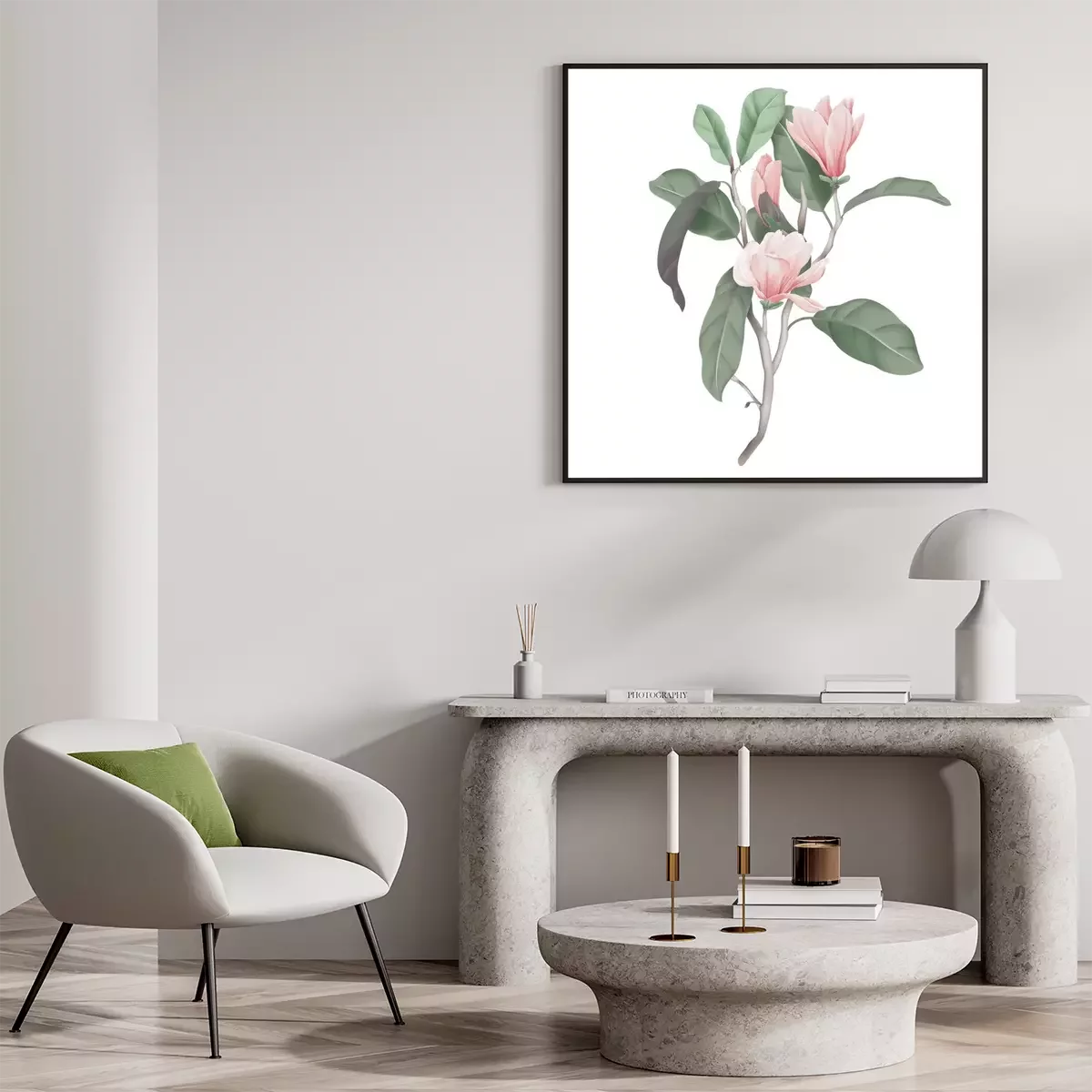 Floral seamless pattern, pink and white Anise magnolia flowers and leaves on light brown, pastel vintage theme