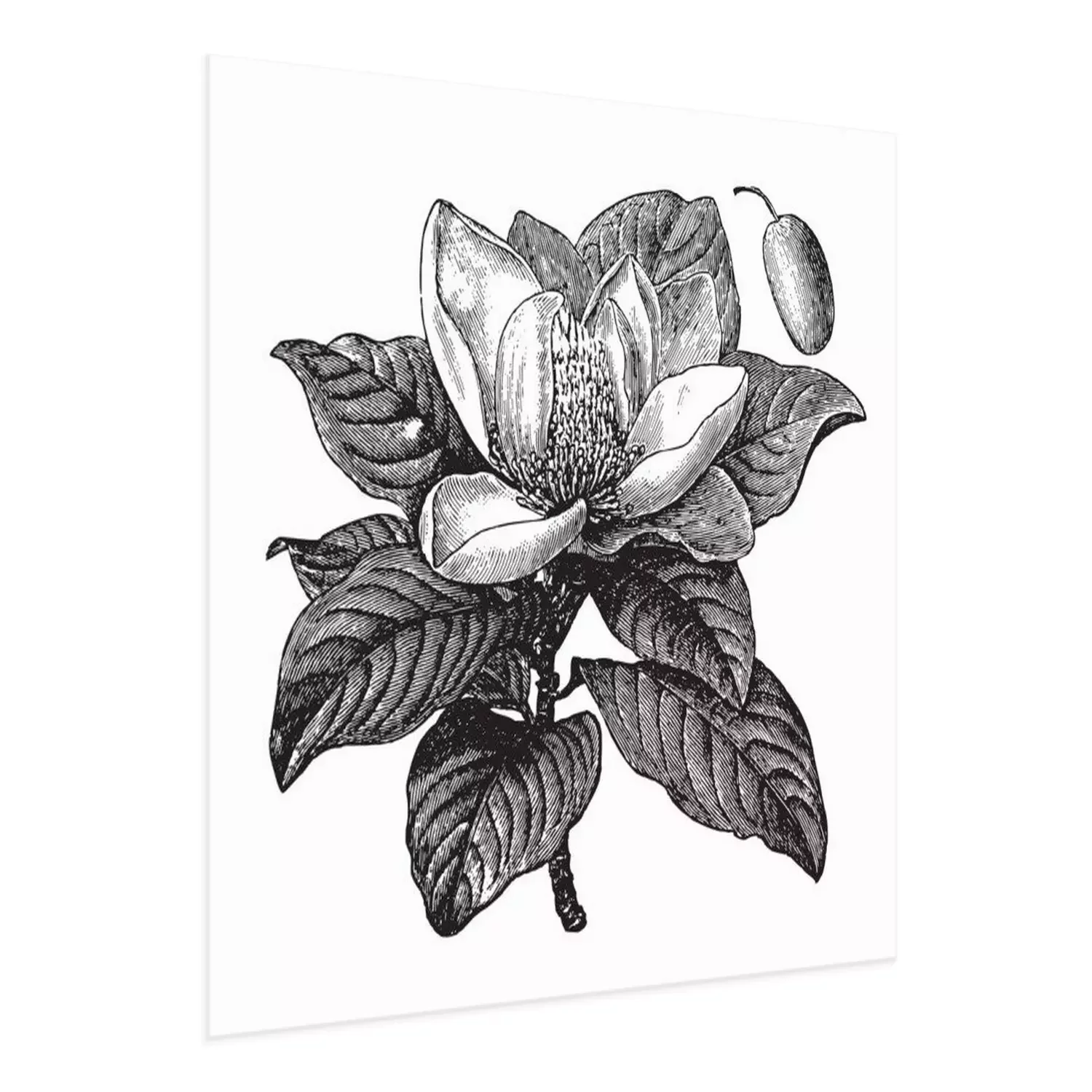 Poster  Branche de magnolia avec croquis botanique de feuilles