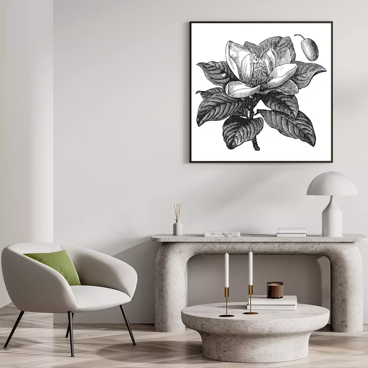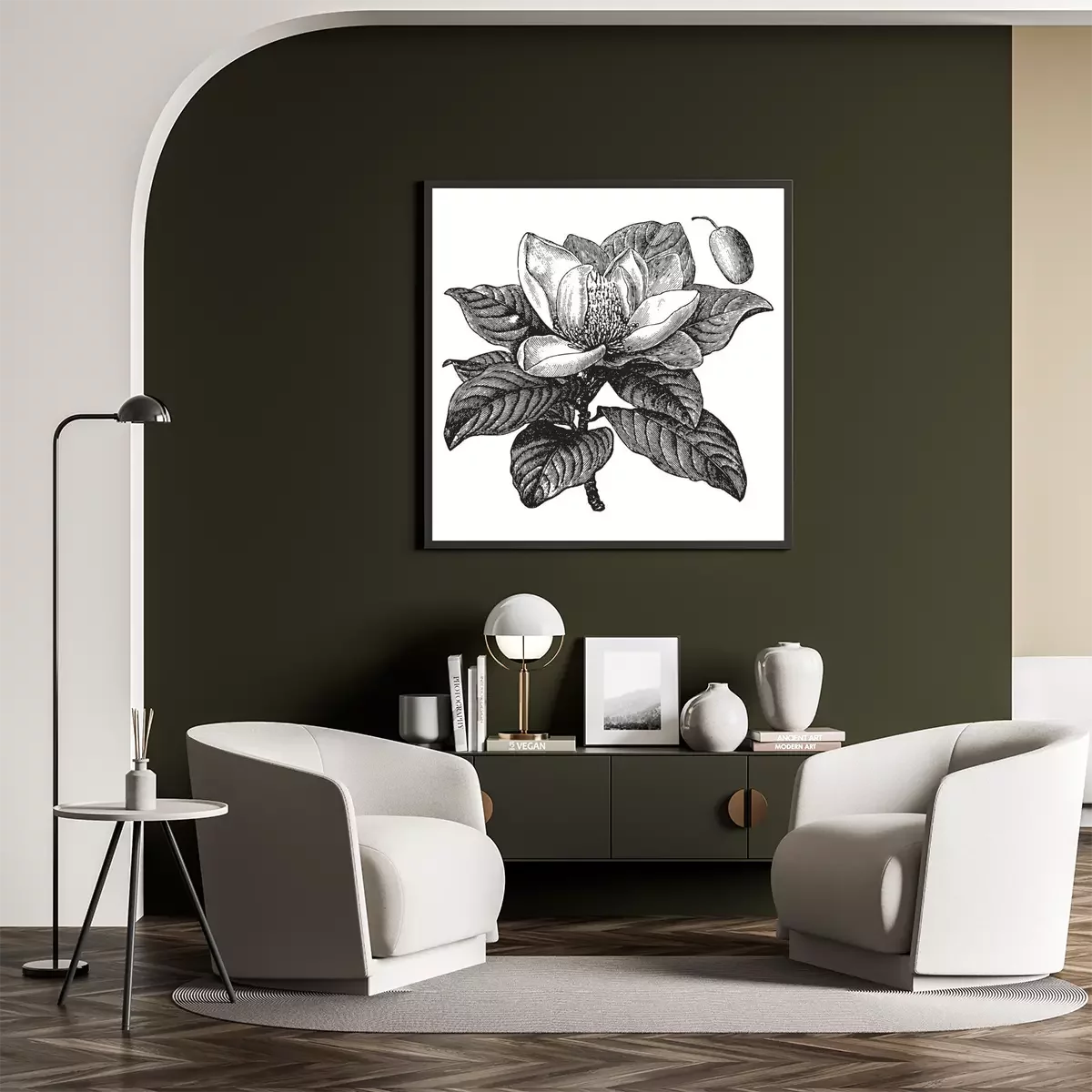 Poster : Branche de magnolia avec croquis botanique de feuilles