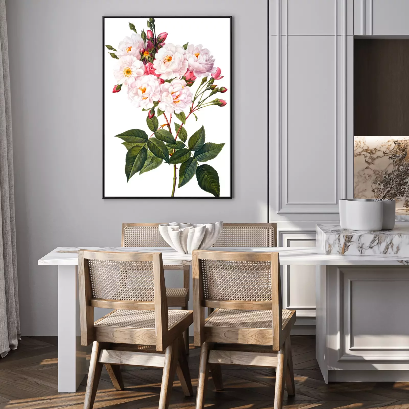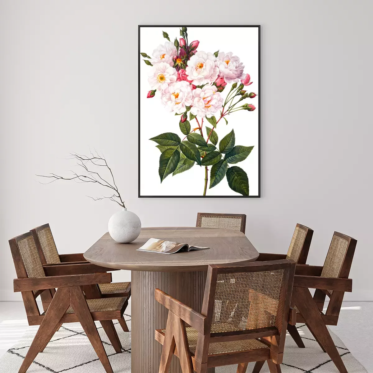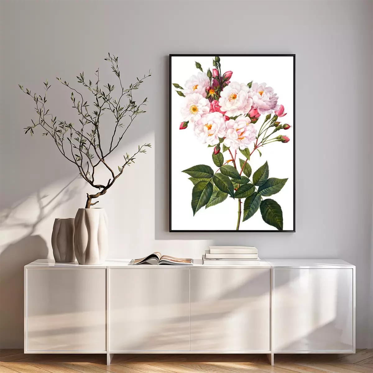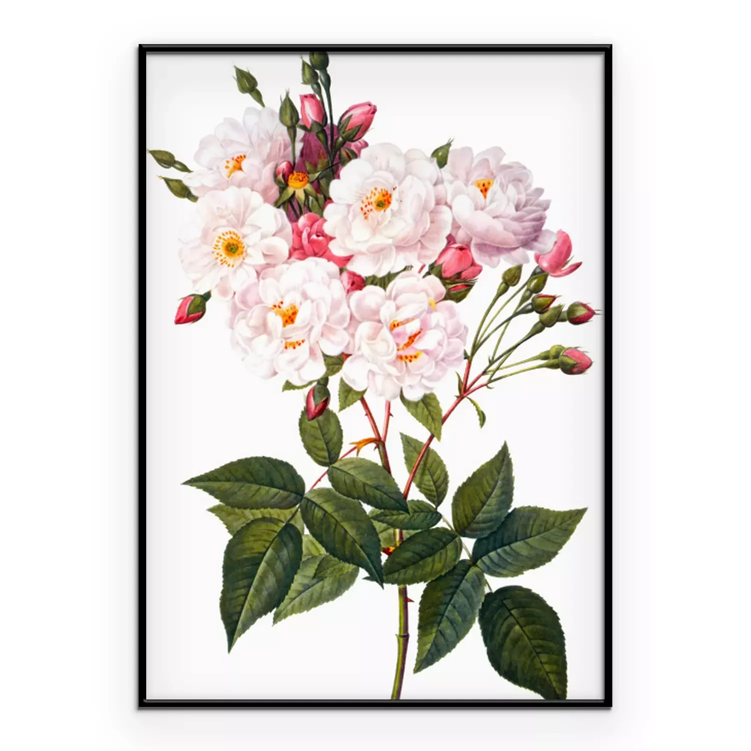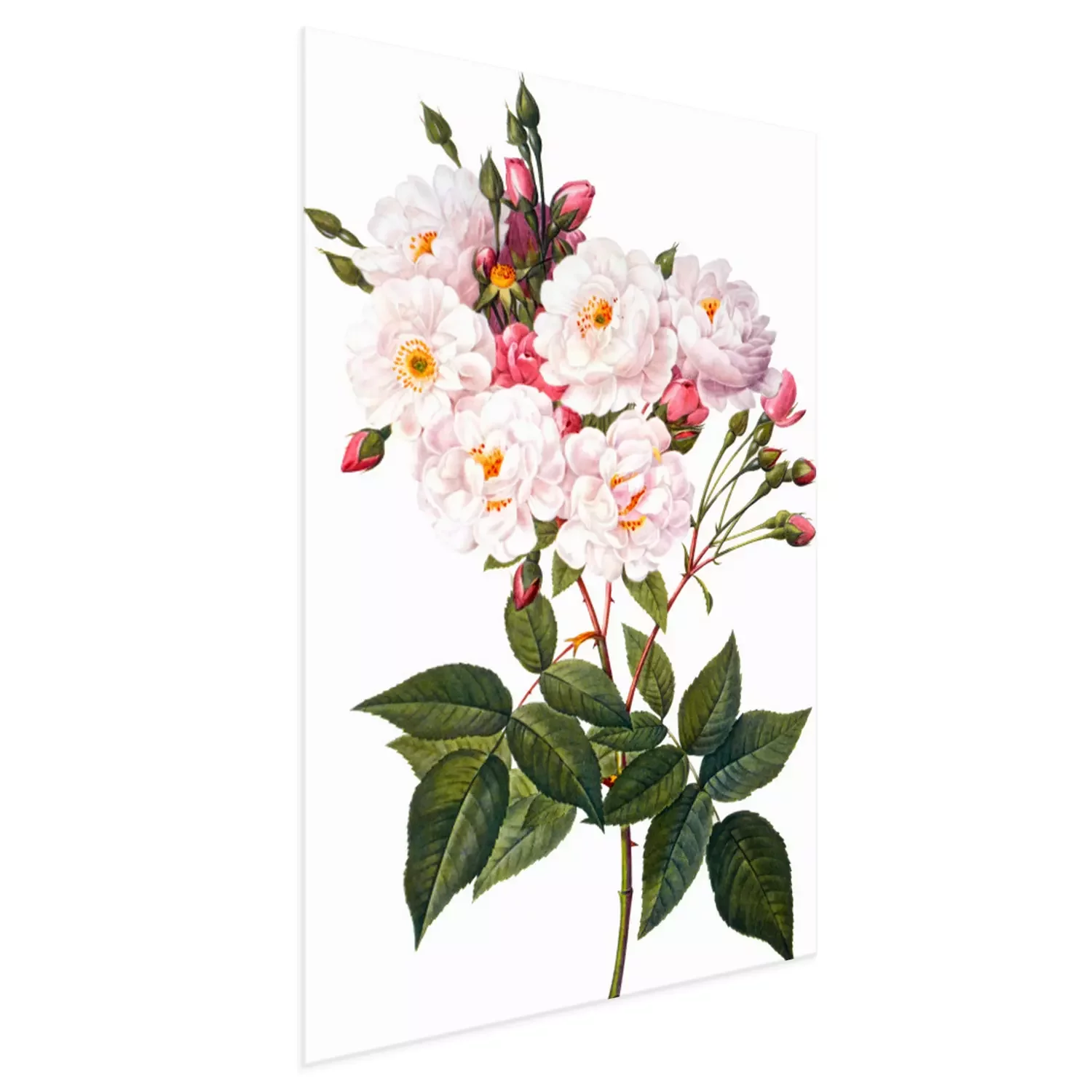 Poster  Branche de roses en fleurs sur fond blanc