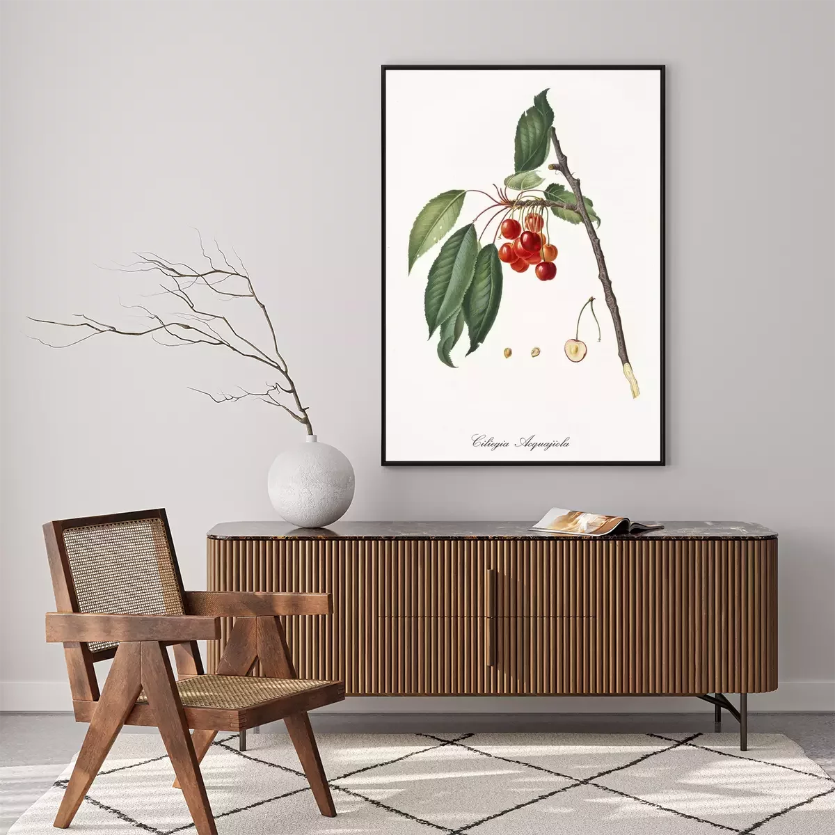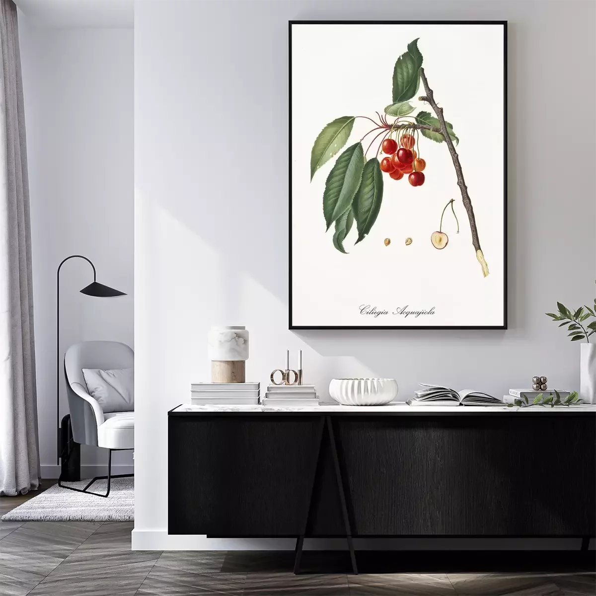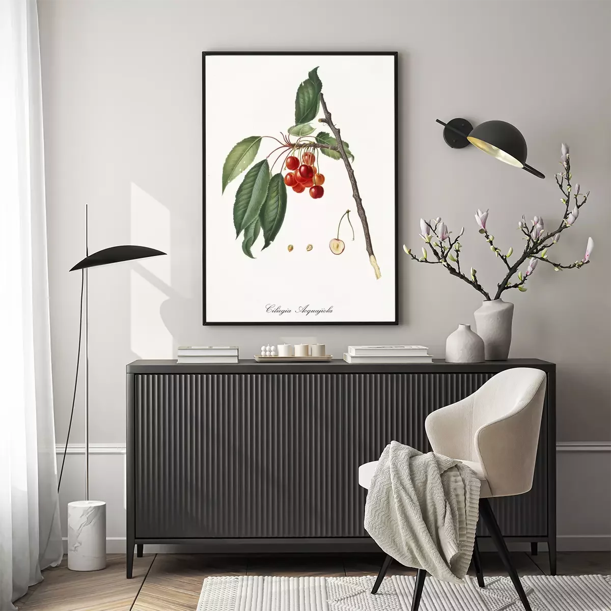 Poster : Brindille de nature illustrée avec des cerises pendantes