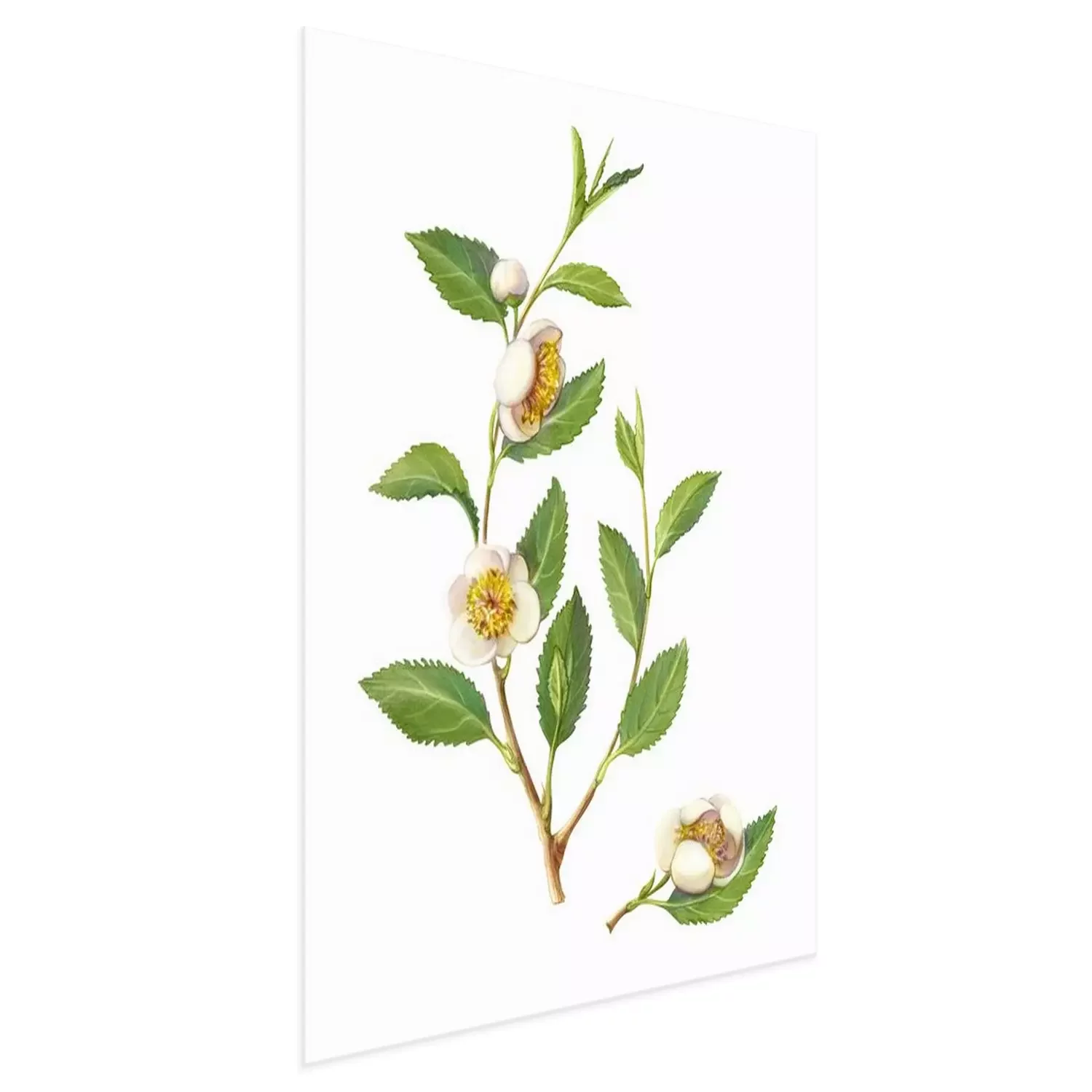 Poster  Brindille de thé vert avec des fleurs