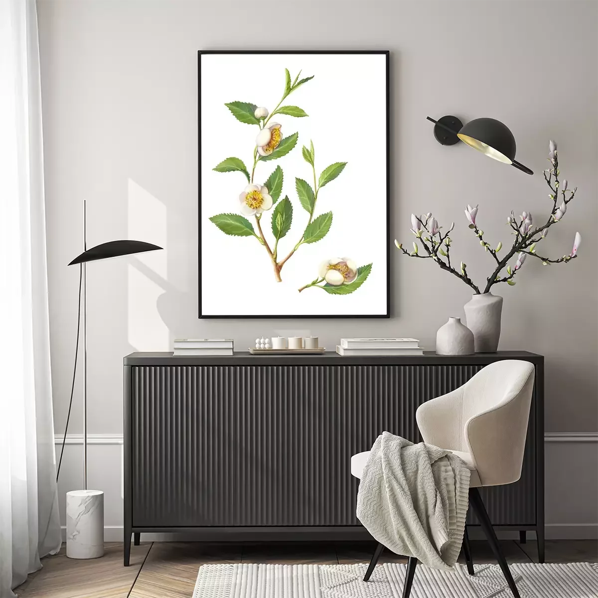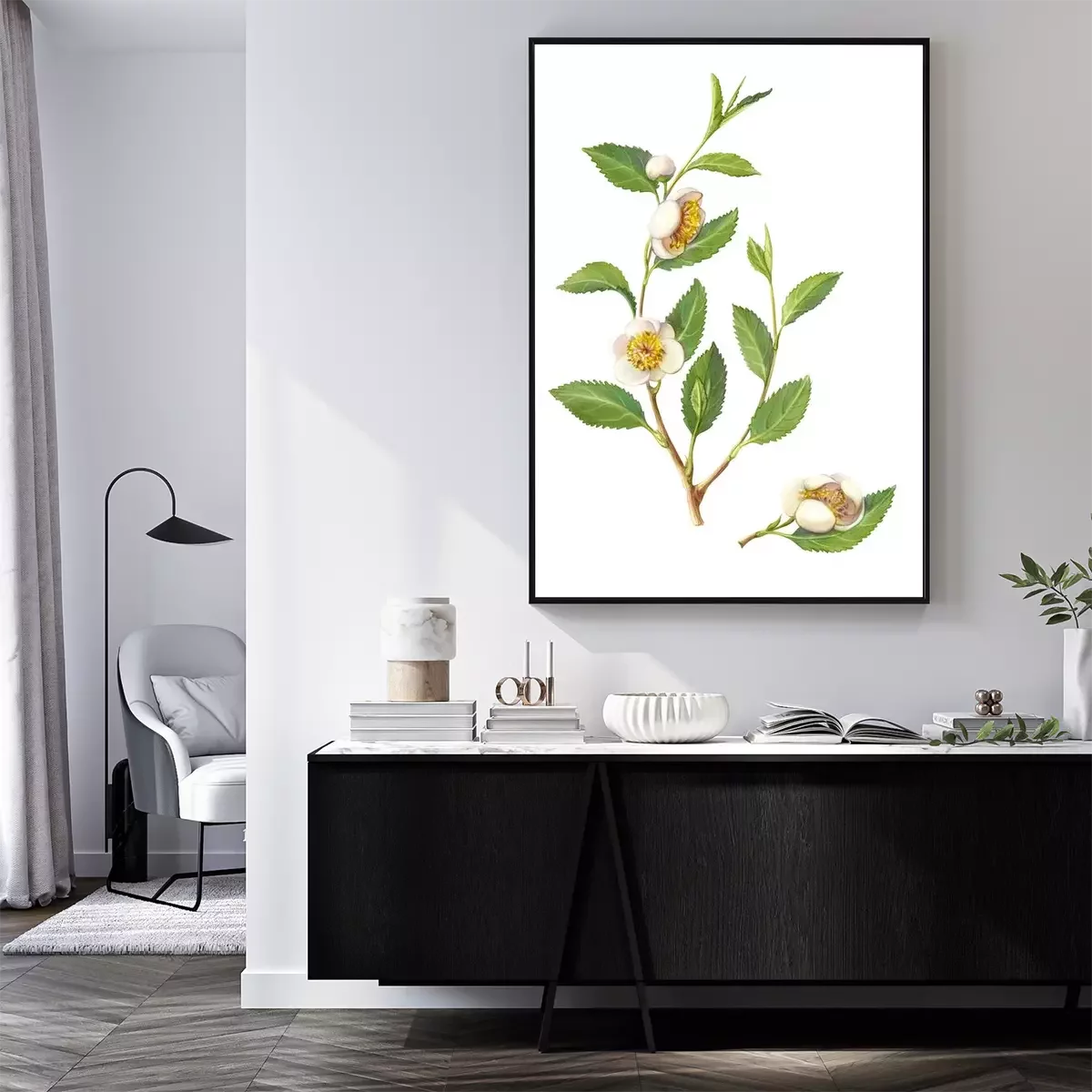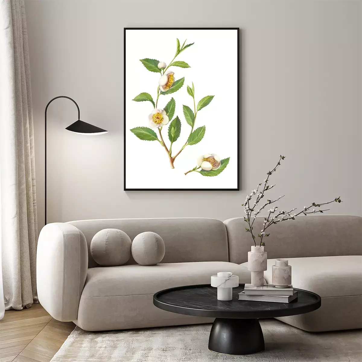Poster : Brindille de thé vert avec des fleurs