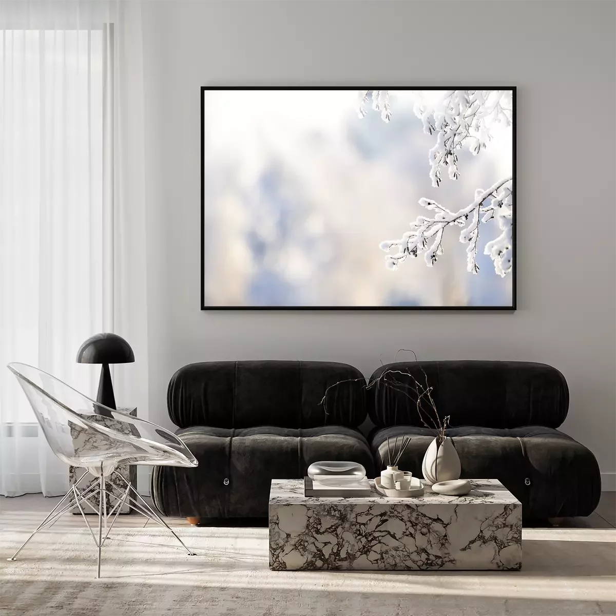 Poster  Brindilles d'aulne d'hiver couvertes de neige