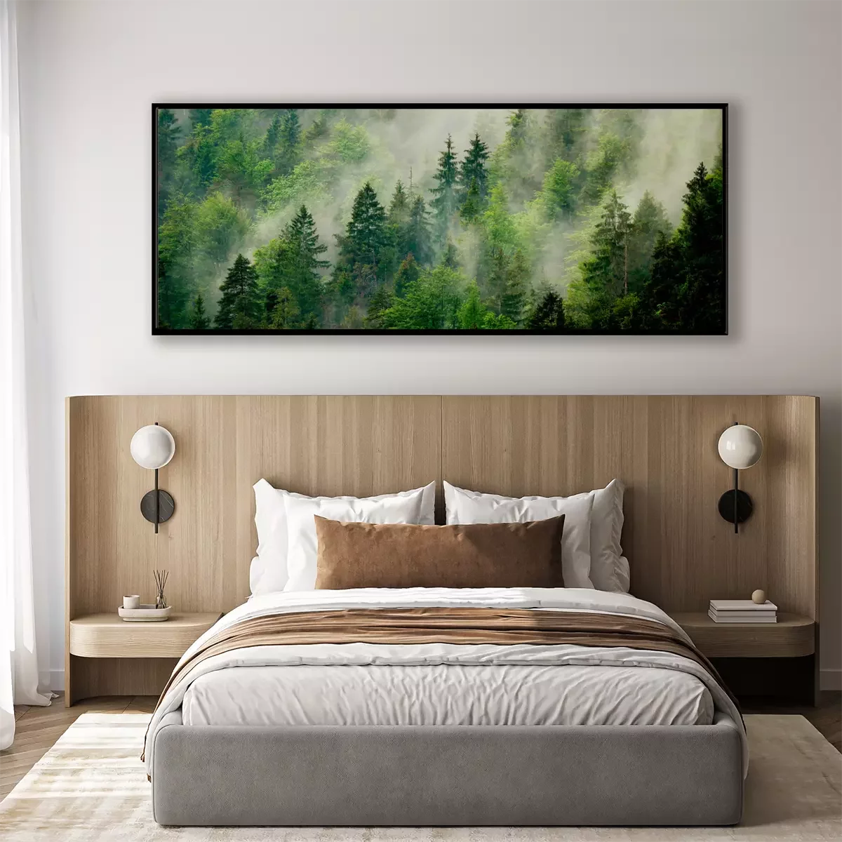 Poster : Brouillard de forêt enveloppant des arbres verts